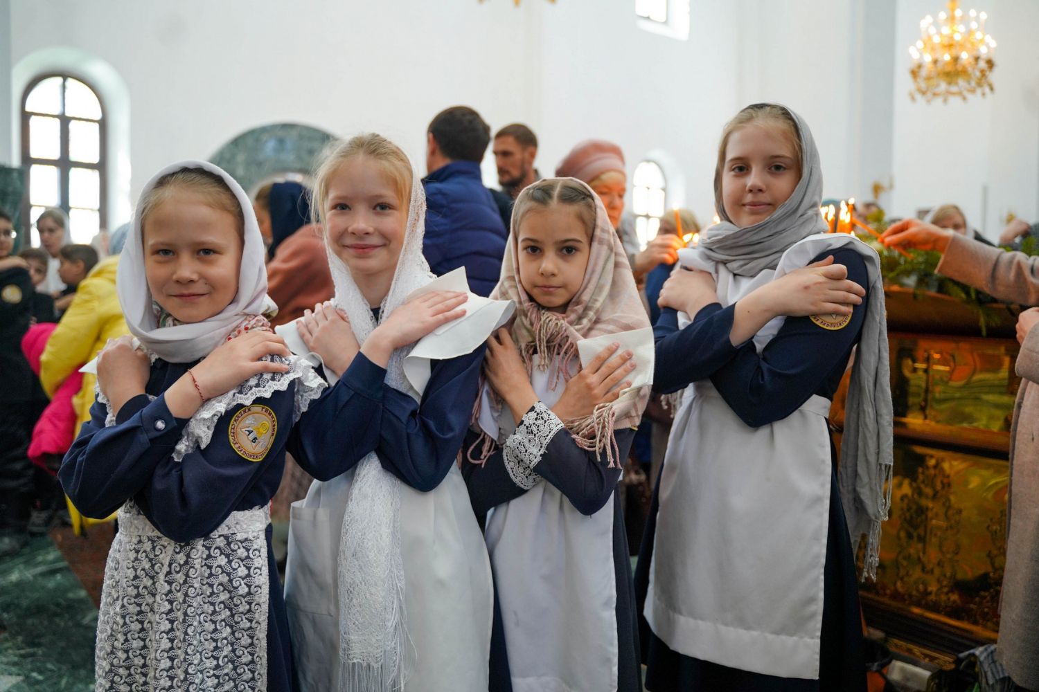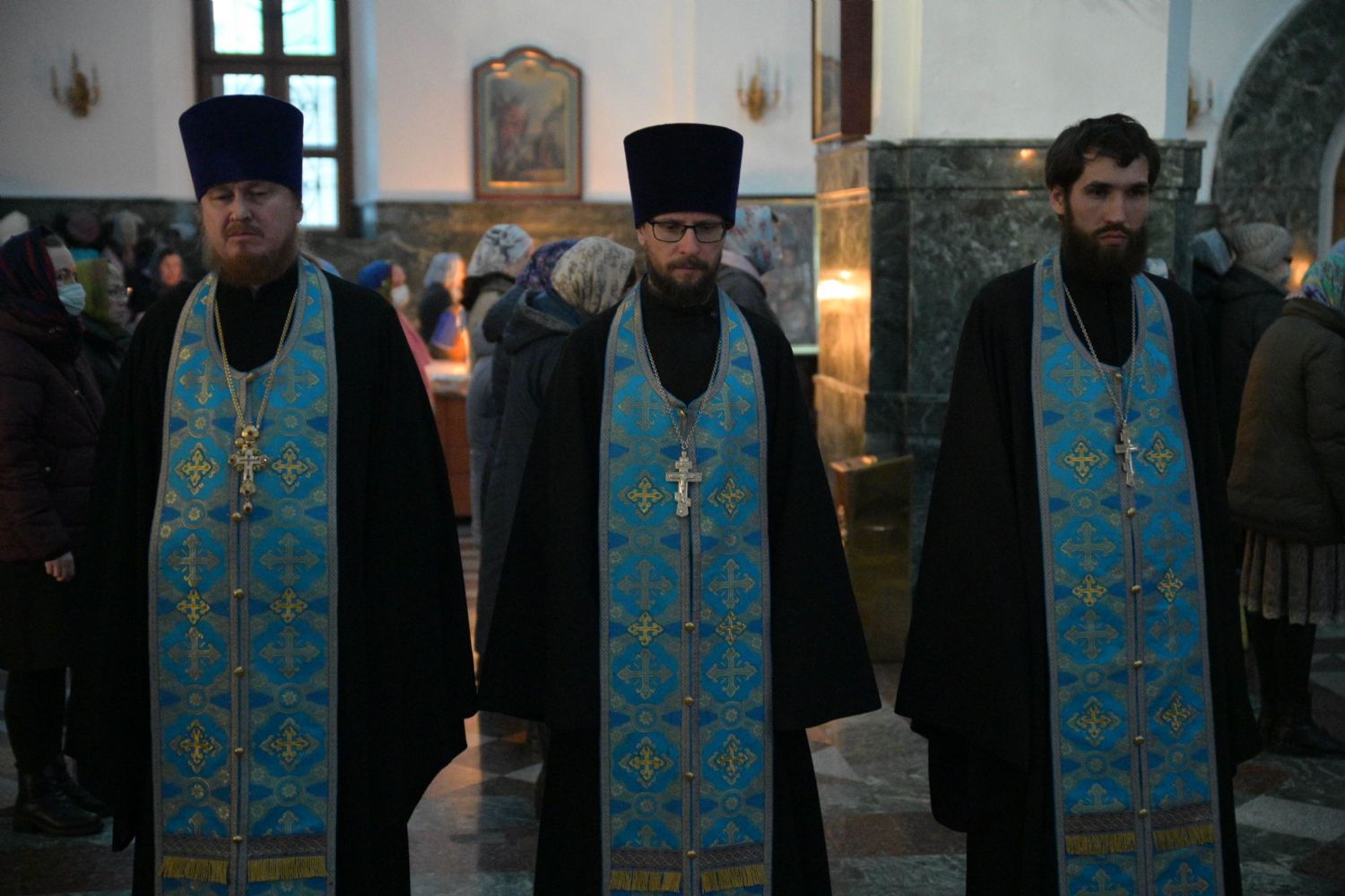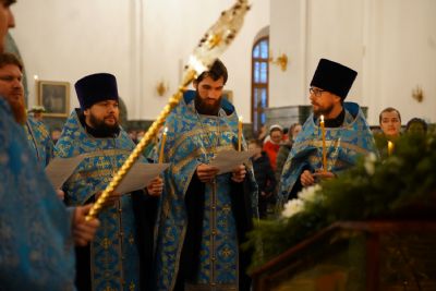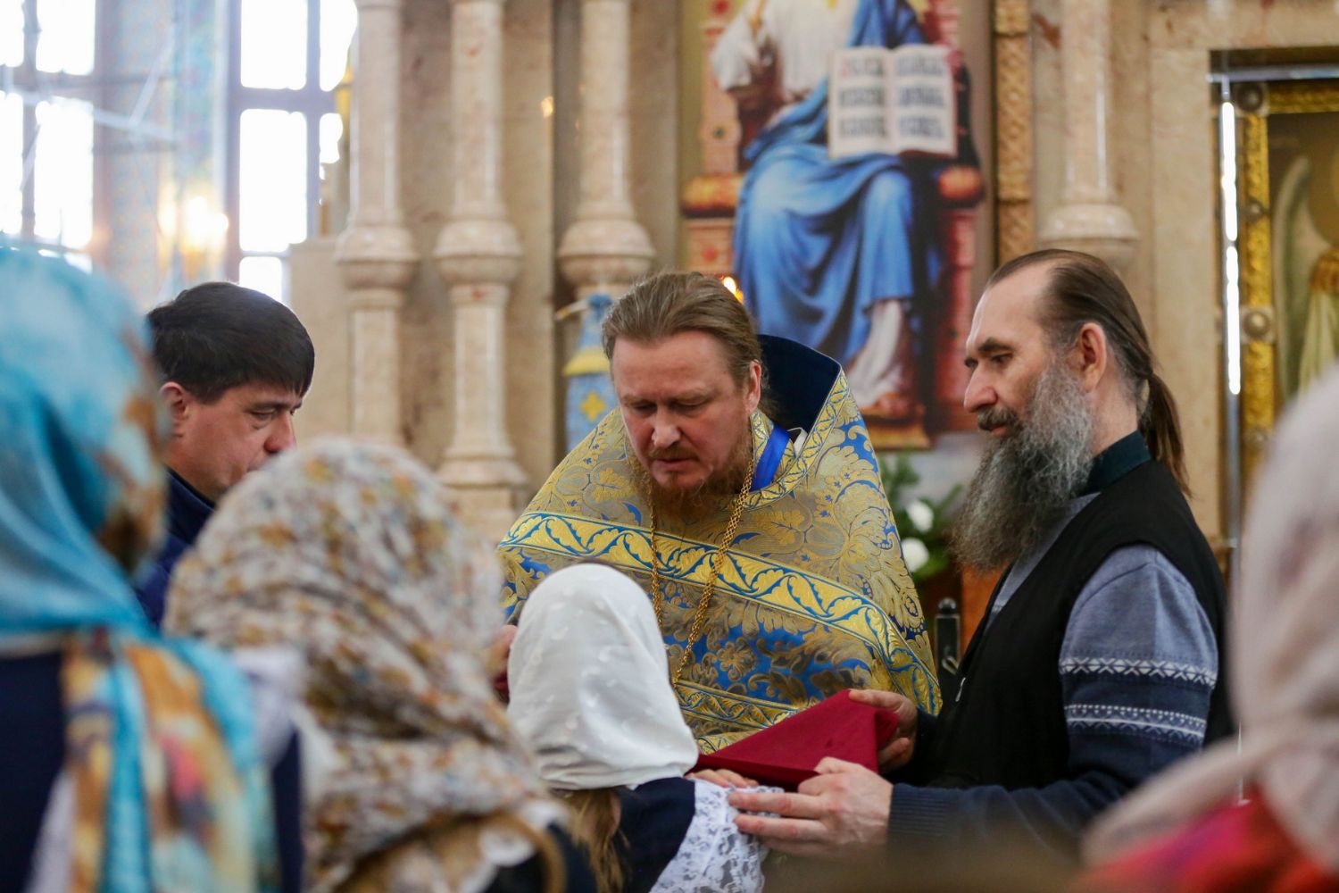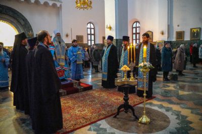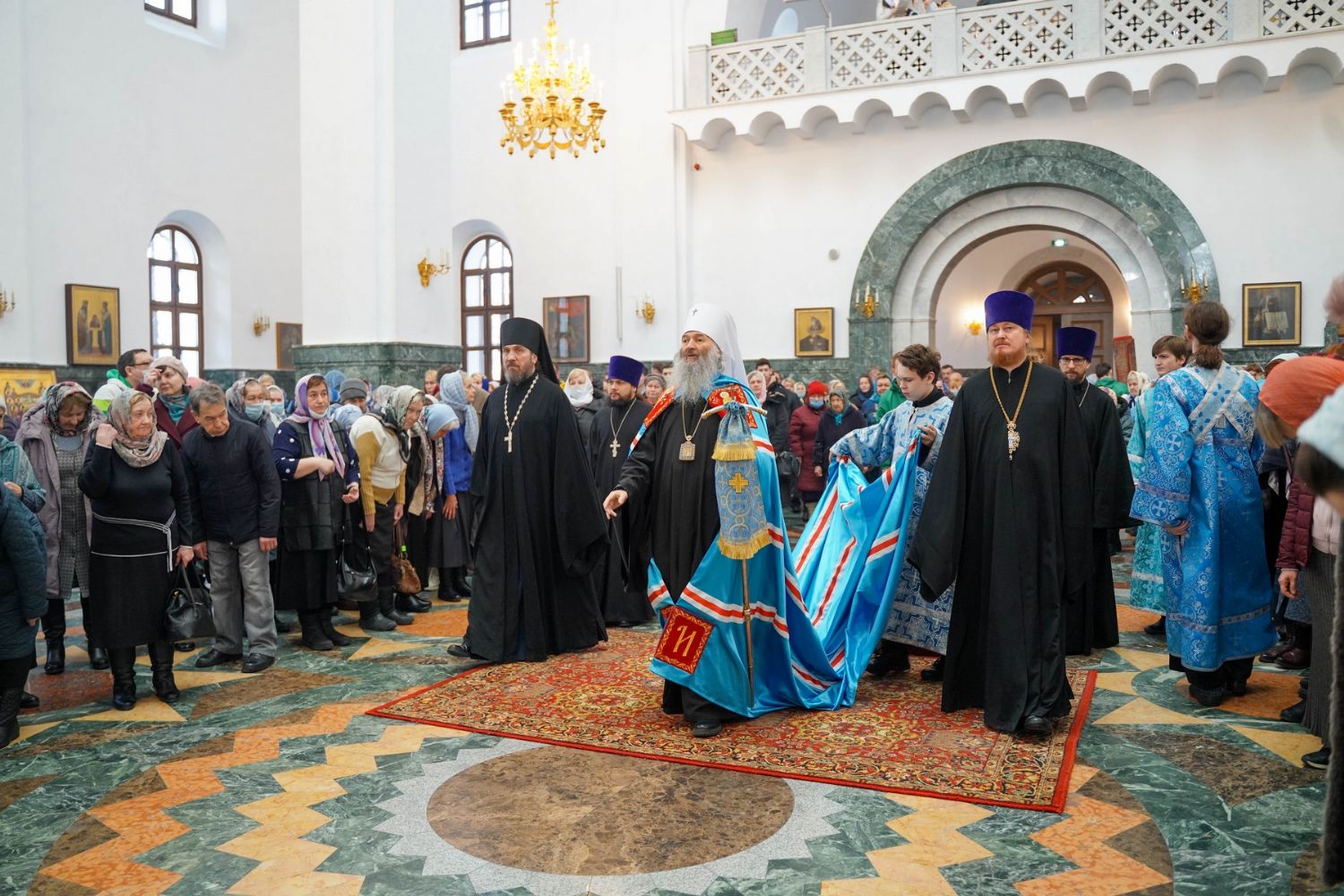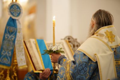 Его Высокопреосвященству сослужили секретарь Йошкар-Олинского епархиального управления иеромонах Серафим (Пасанаев), ключарь собора протоиерей Сергий Поглазов, клирики собора и протодиакон Михаил Козловский. Песнопения исполнял детско-юношеский хор «Благовест» под управлением регента Татьяны Черновой.