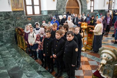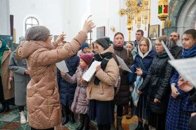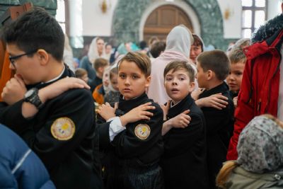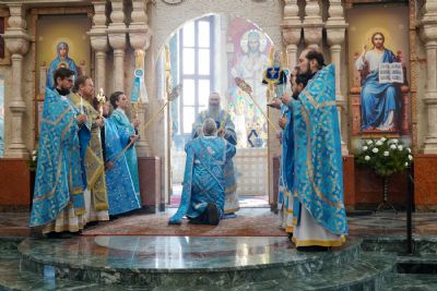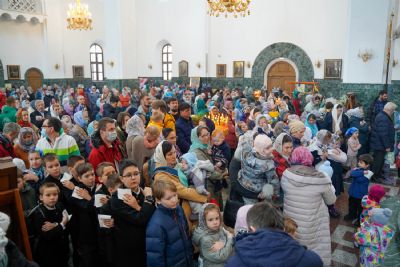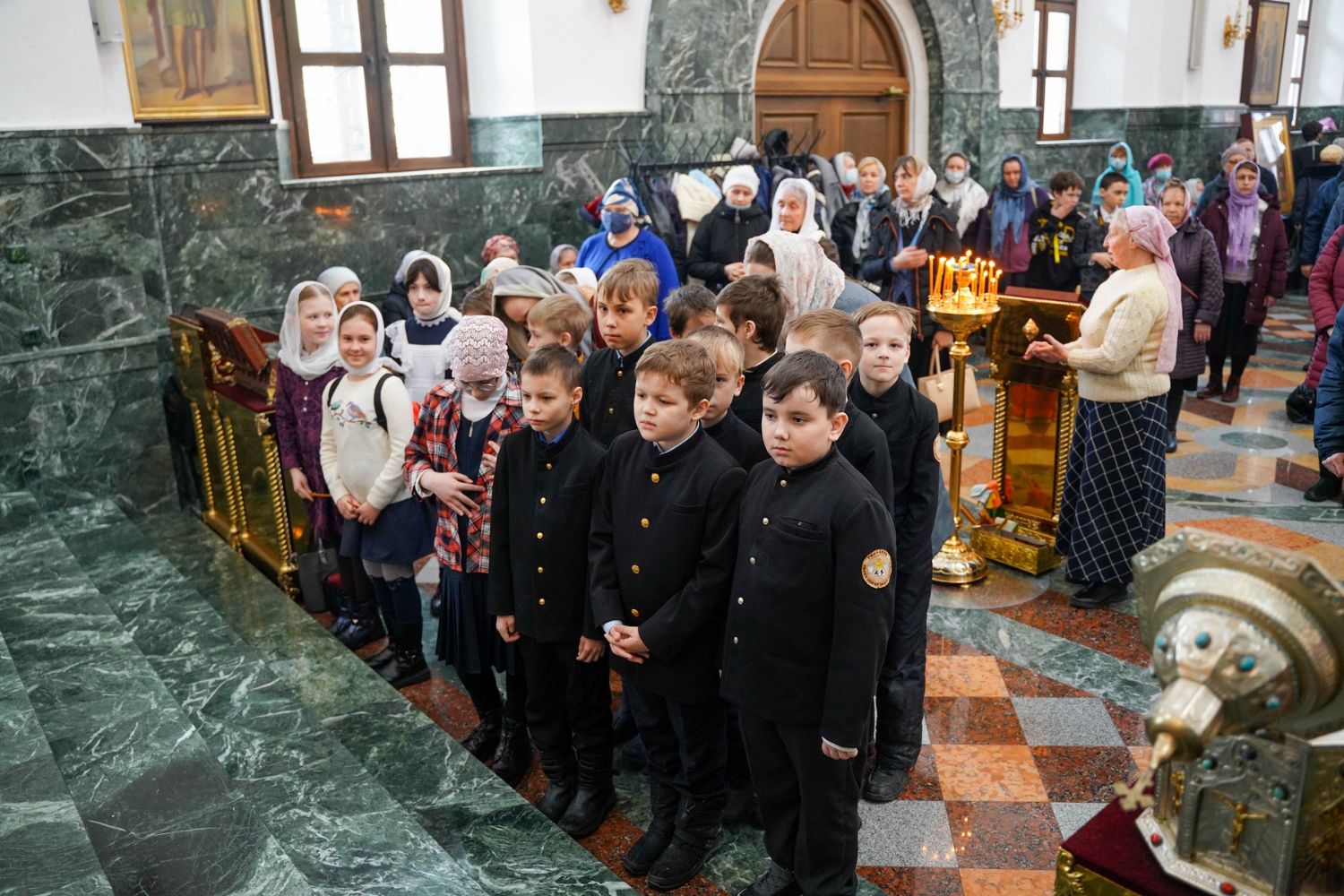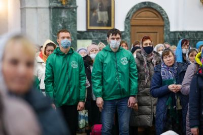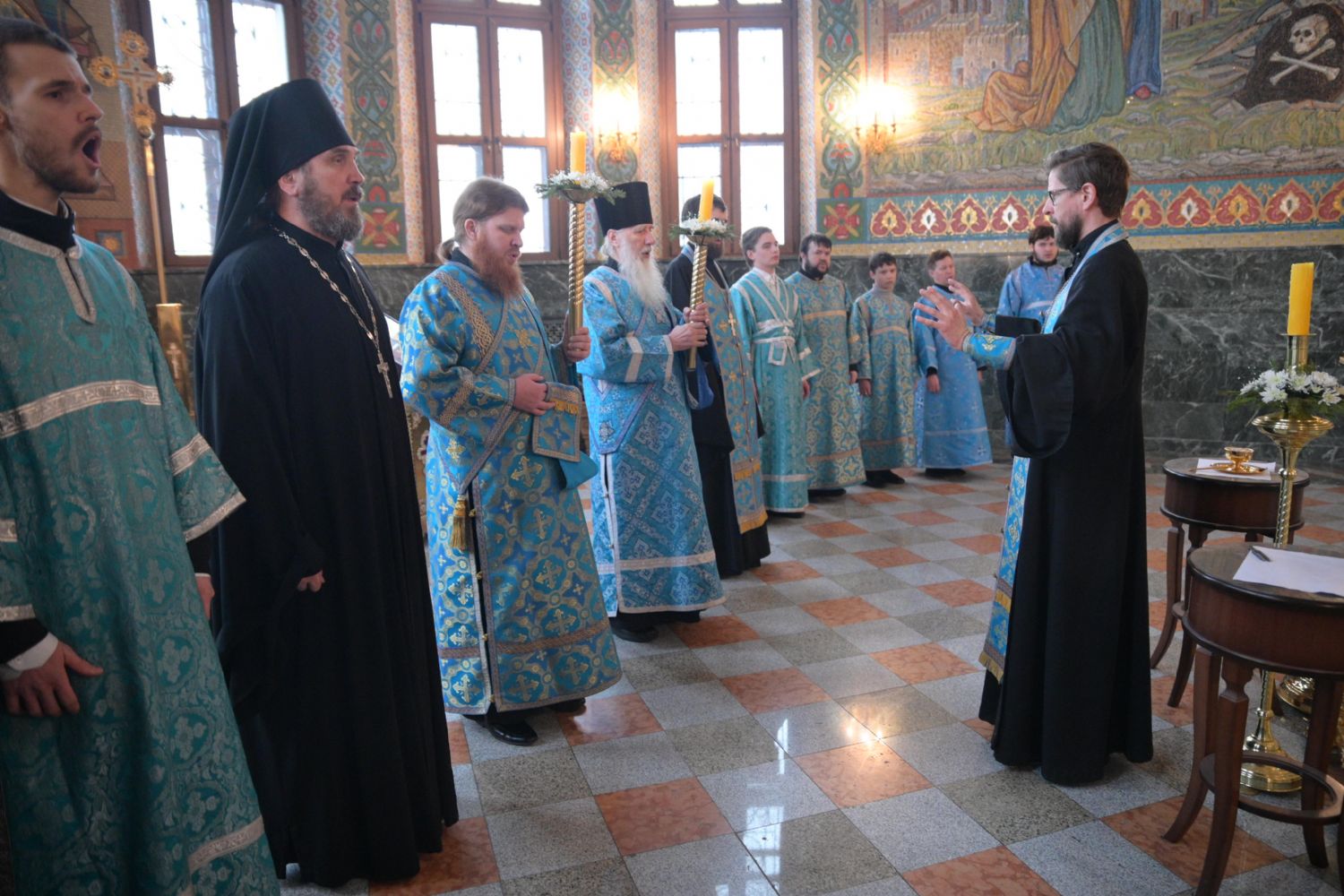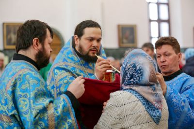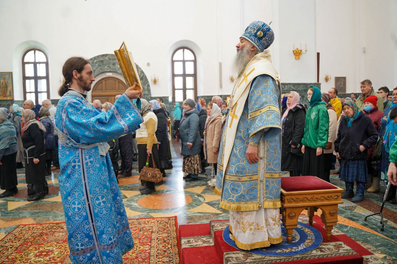 Его Высокопреосвященству сослужили секретарь Йошкар-Олинского епархиального управления иеромонах Серафим (Пасанаев), ключарь собора протоиерей Сергий Поглазов, клирики собора и протодиакон Михаил Козловский. Песнопения исполнял детско-юношеский хор «Благовест» под управлением регента Татьяны Черновой.