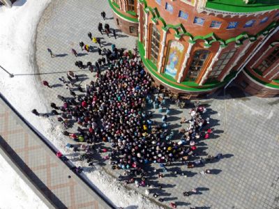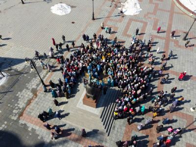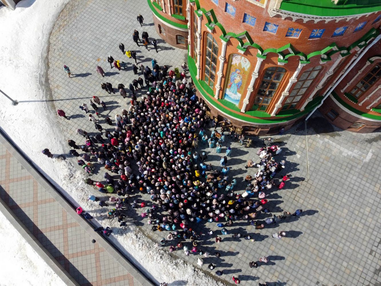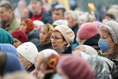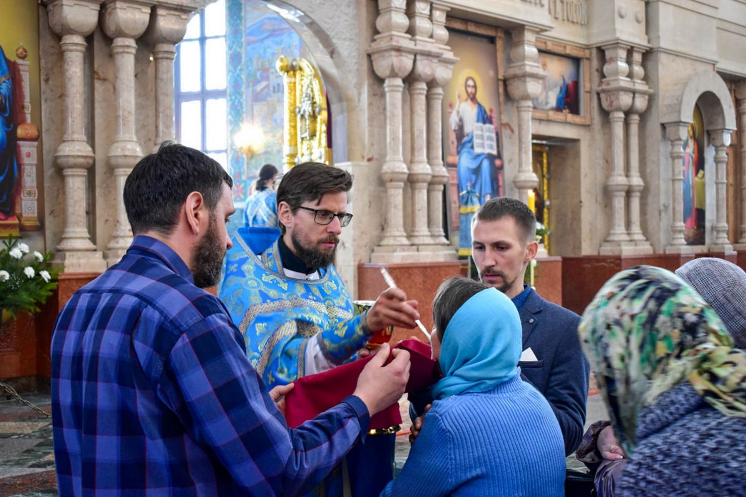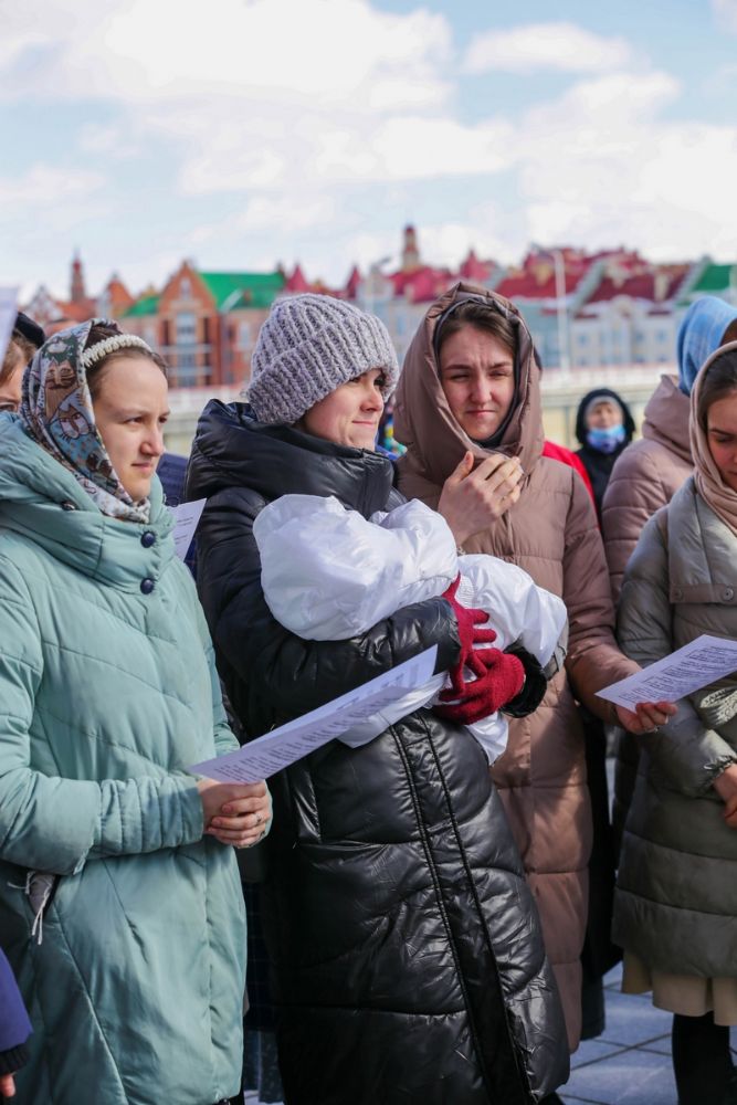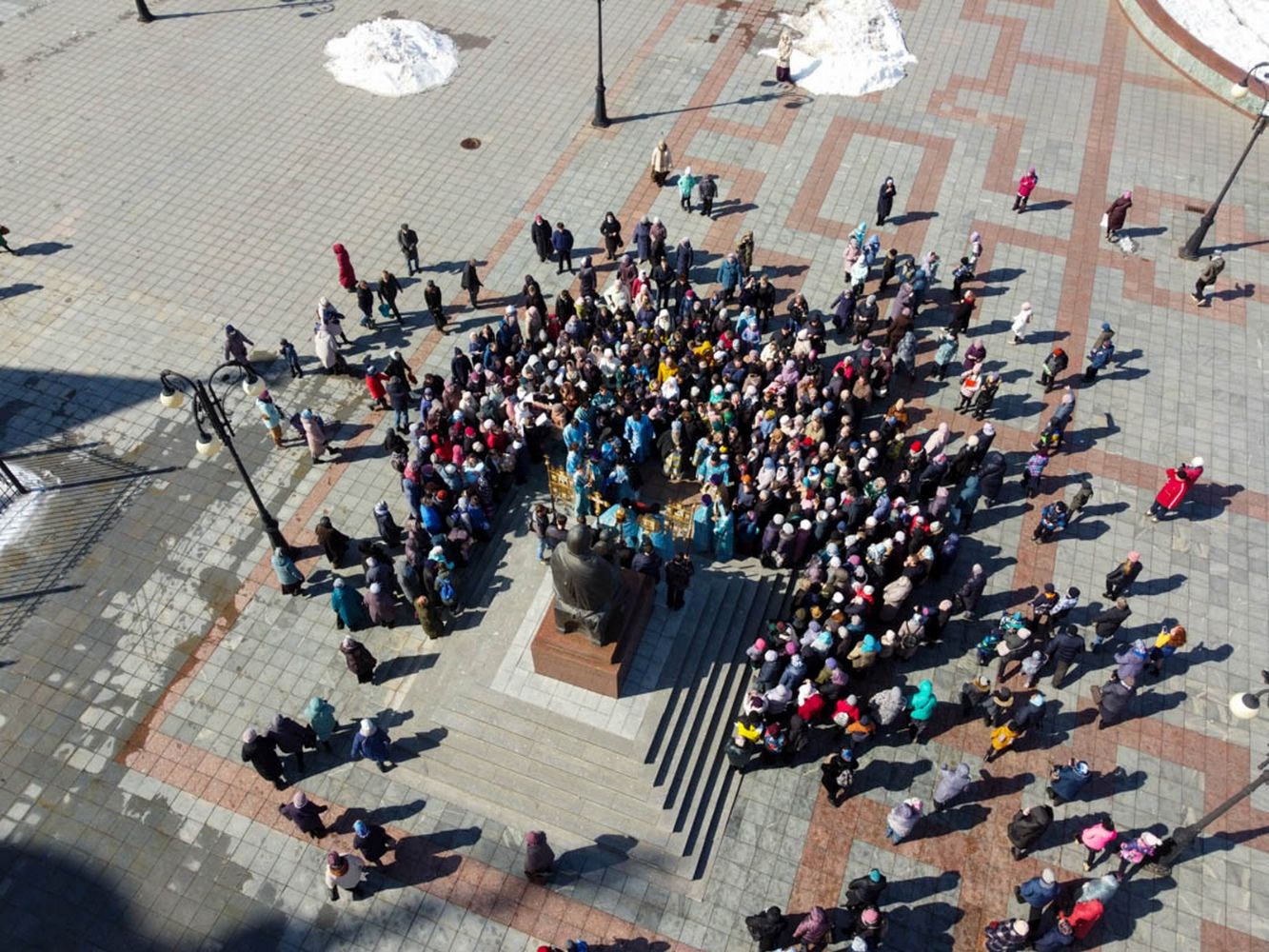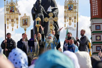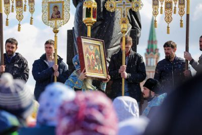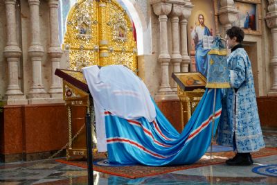 После Литургии в ознаменование престольного праздника состоялся крестный ход вокруг храма с чтением Евангелия и кроплением святой водой. По традиции, сложившейся за последние годы, священство и миряне подошли к скульптурной композиции «Пресвятая Богородица с Младенцем Христом». Здесь верующие вознесли соборную молитву Покровительнице нашего края.