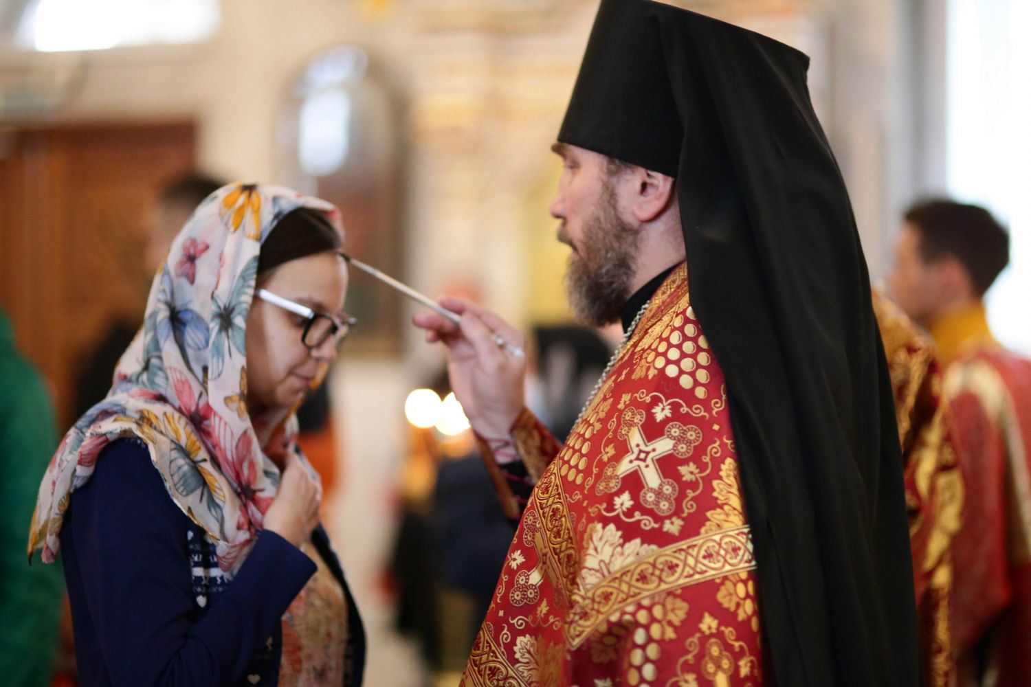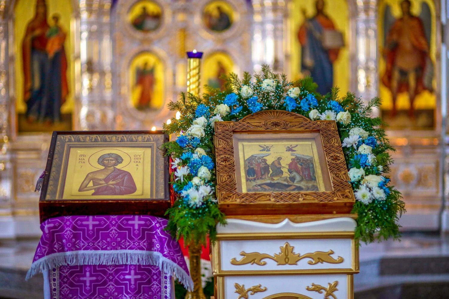 Владыке сослужили секретарь Йошкар-Олинского епархиального управления иеромонах Серафим (Пасанаев), настоятель собора иерей Алексий Кирюшкин, клирики собора и протодиакон Михаил Козловский. Песнопения исполнял хор собора под управлением регента Алисы Вылегжаниной.