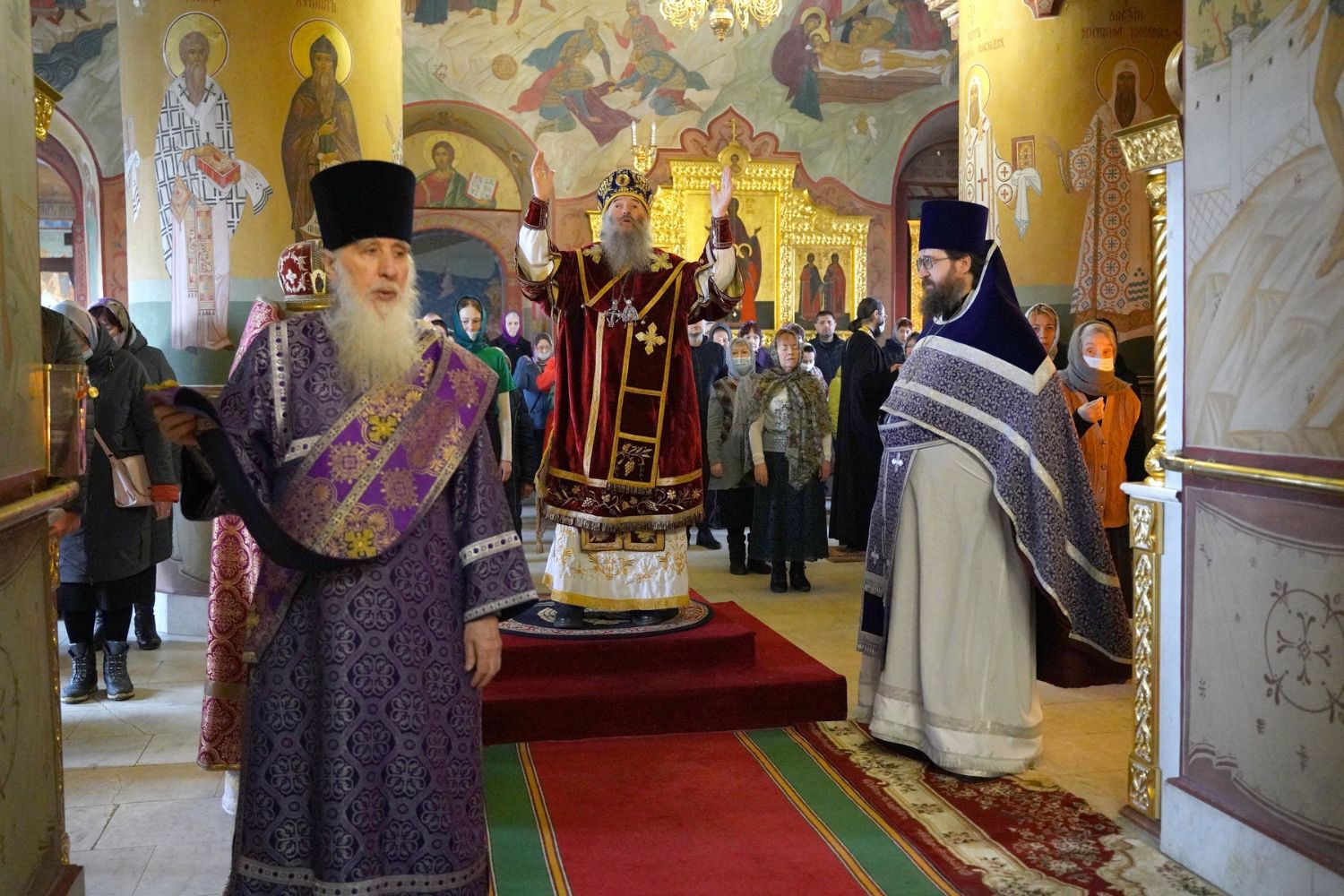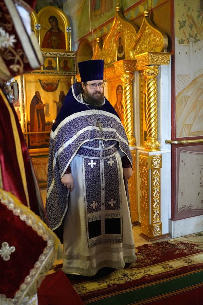 Его Высокопреосвященству сослужили секретарь Йошкар-Олинского епархиального управления иеромонах Серафим (Пасанаев), настоятель собора протоиерей Евгений Кутырев, клирик собора иерей Владимир Глебов и протодиакон Михаил Козловский. Песнопения исполнял хор собора под управлением Ангелины Бабиной.