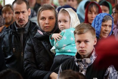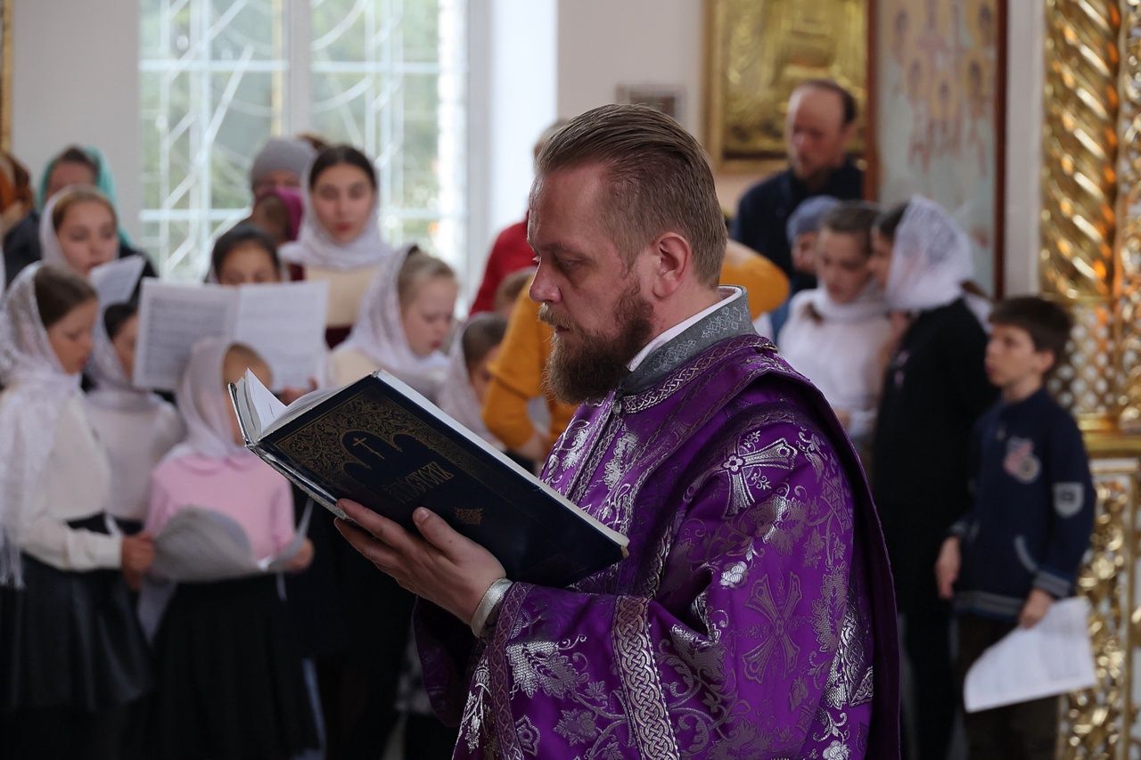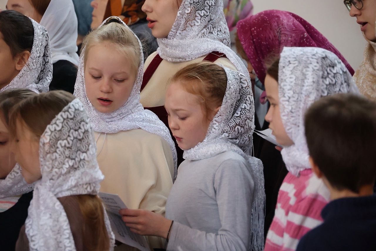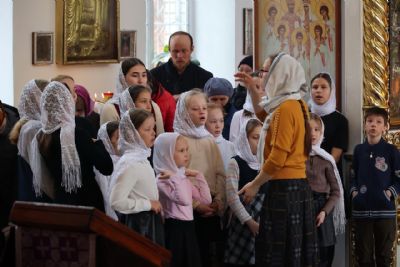 Его Преосвященству сослужили клирики собора. Песнопения исполняли два хора – архиерейский и детско-юношеский.