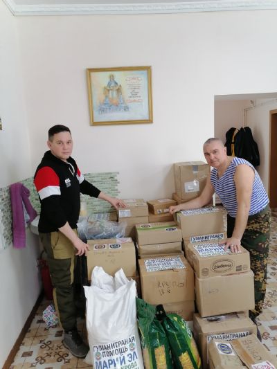За сутки до отправления кадеты КВПК «Клинок», казаки СКВРиЗ и Молодежка ОНФ Республики Марий Эл занимались комплектованием гуманитарного груза. Всю продукцию рассортировали и уложили в коробки. Подписав каждую, запечатали сопроводительными листовками.