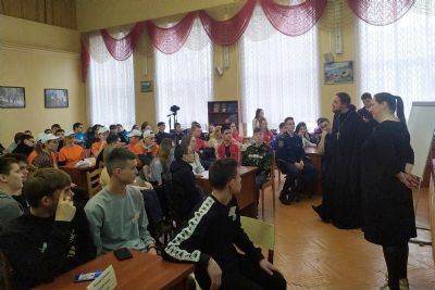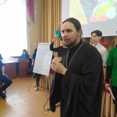 В завершение встречи руководитель молодежного отдела Йошкар-Олинской епархии иерей Никита Иванов поговорил со студентами о патриотизме. Батюшка отметил, что в основе патриотизма должна лежать любовь к ближним, а все наши мысли и действия должны согласовываться с совестью, основанной на христианской нравственности.