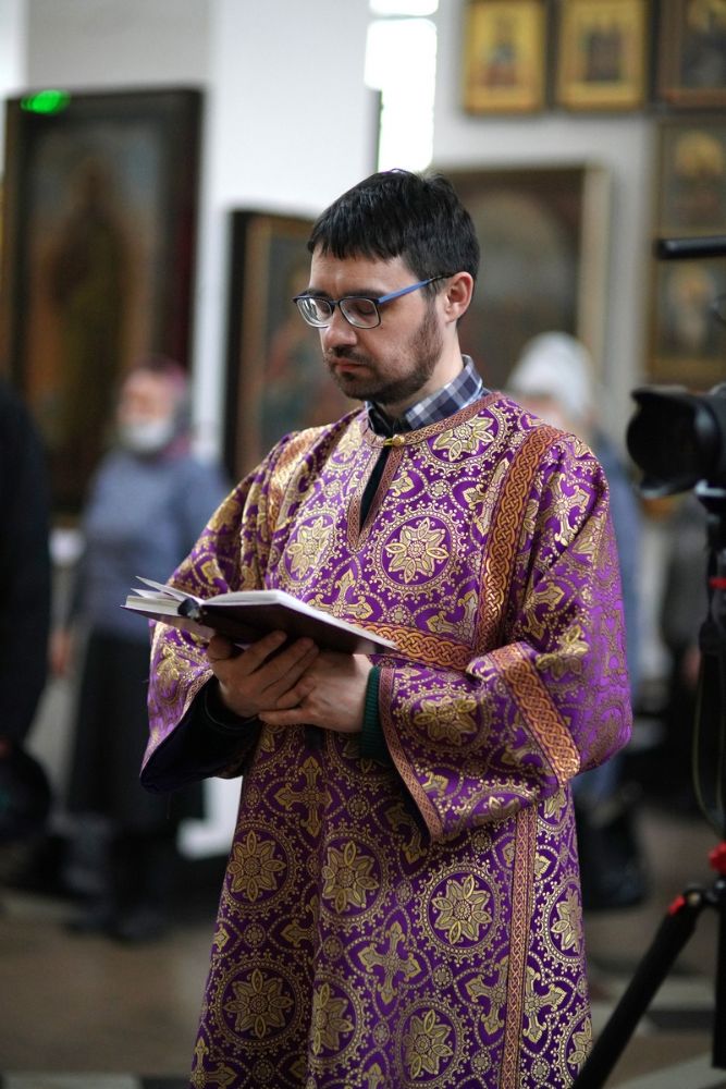 На Великом повечерии в центре храма митрополит Иоанн прочитал канон из трех песен, посвященный событиям Евангельских зачал, читаемых на службах Страстных понедельника и вторника.