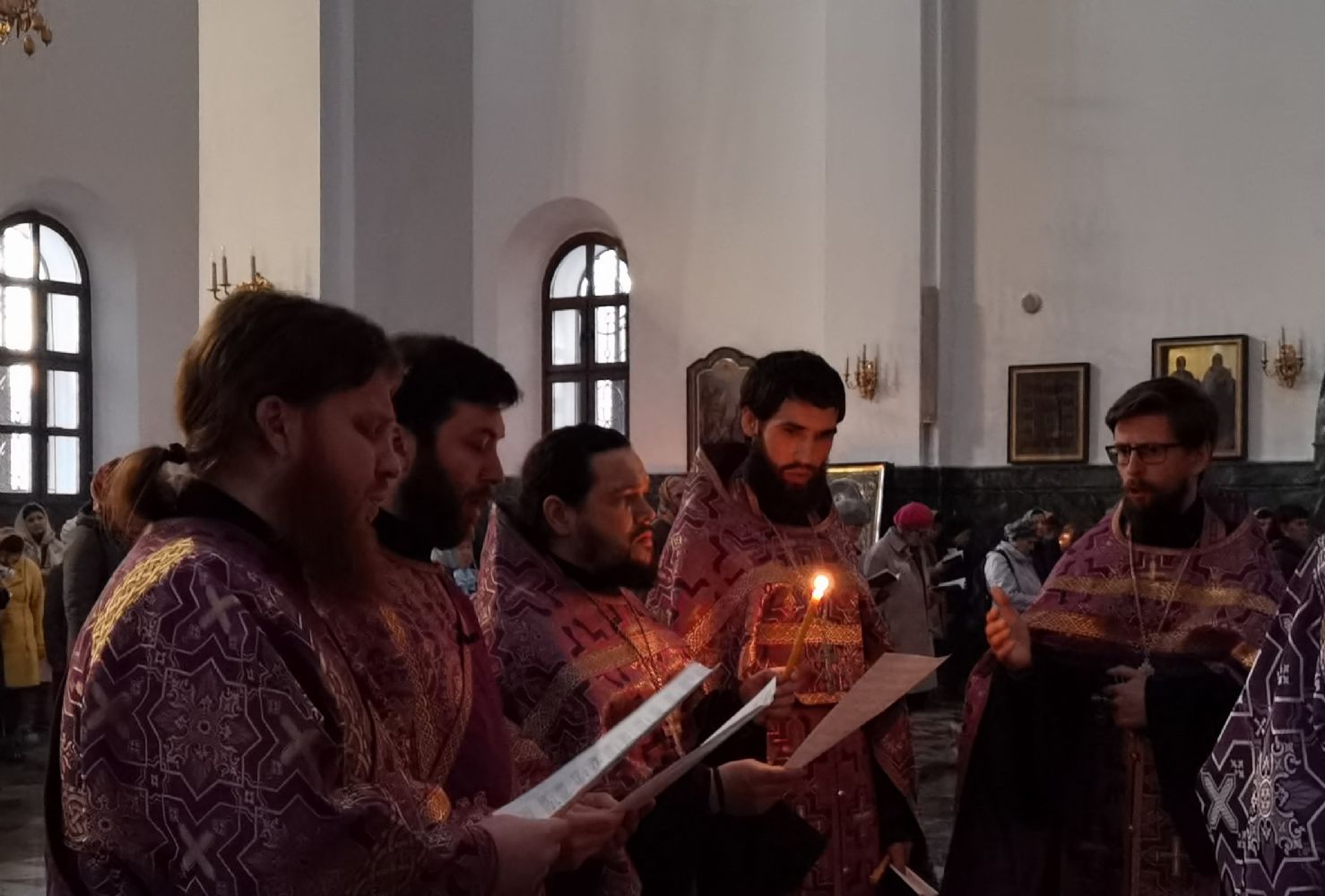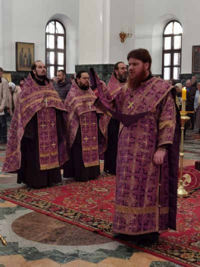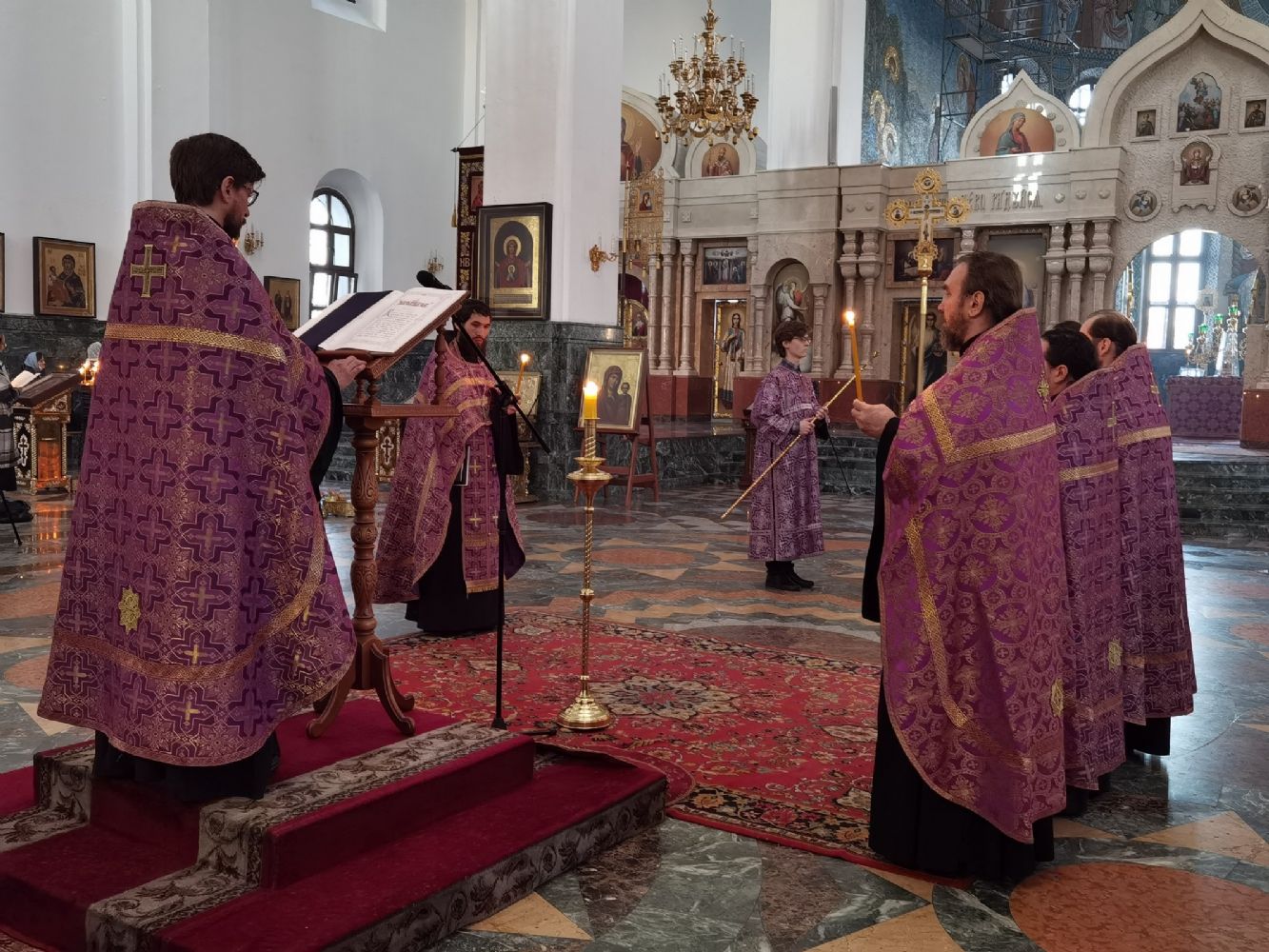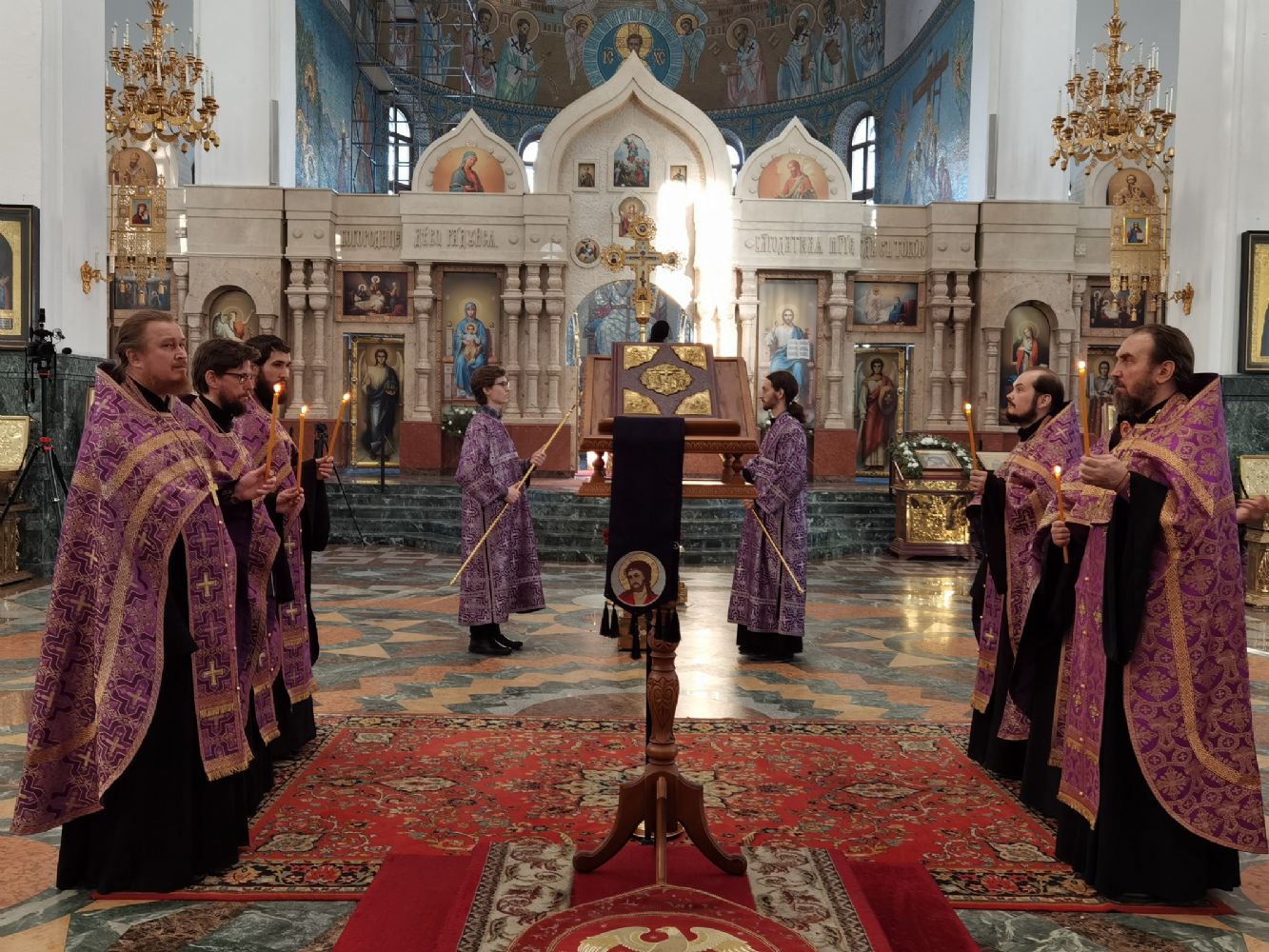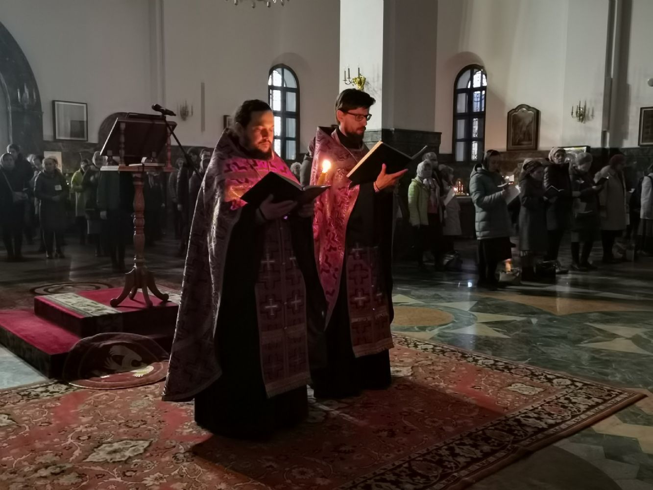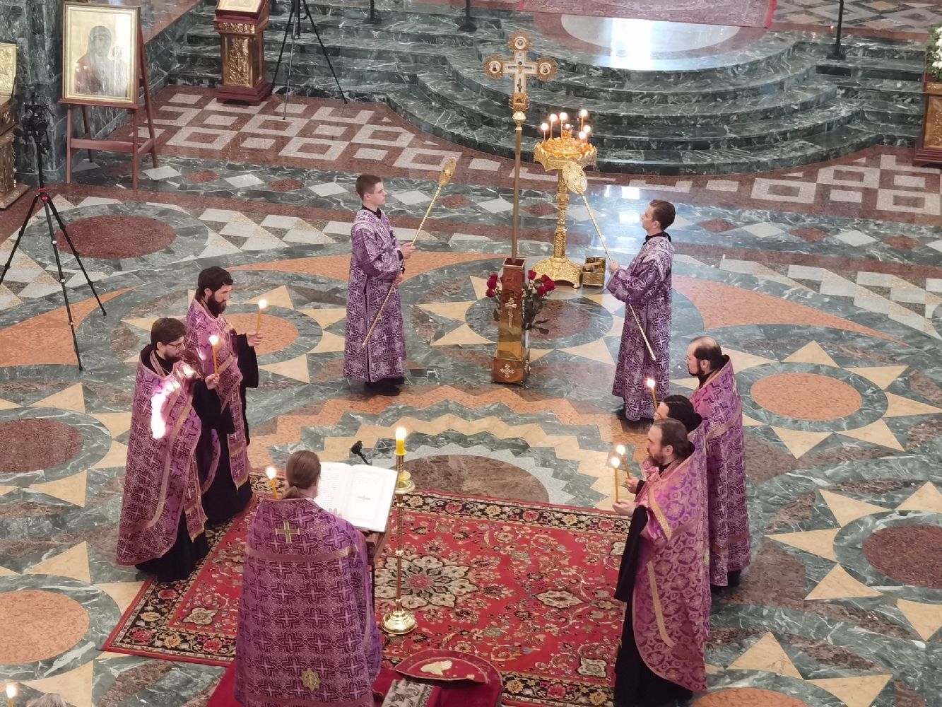 Все богослужение посвящено воспоминанию спасительных страданий и крестной смерти Господа нашего Иисуса Христа. Евангельские отрывки вместе с Владыкой поочередно читали сослужившие ему священники – секретарь Йошкар-Олинского епархиального управления иеромонах Серафим (Пасанаев), ключарь собора протоиерей Сергий Поглазов, клирики собора Никифор Захаров, Евгений Самойлов, Александр Староверов и Иоанн Милютин.