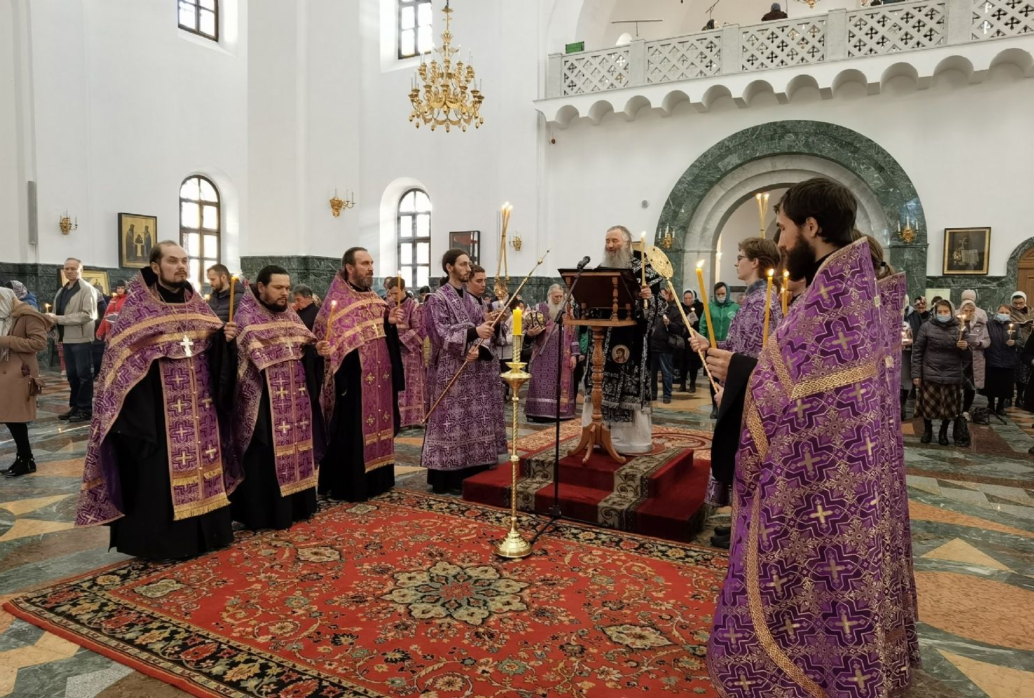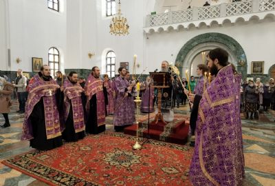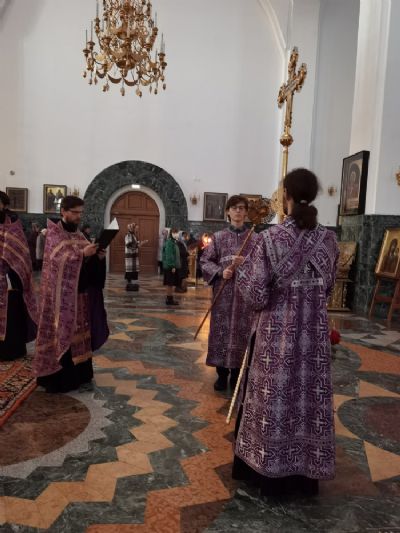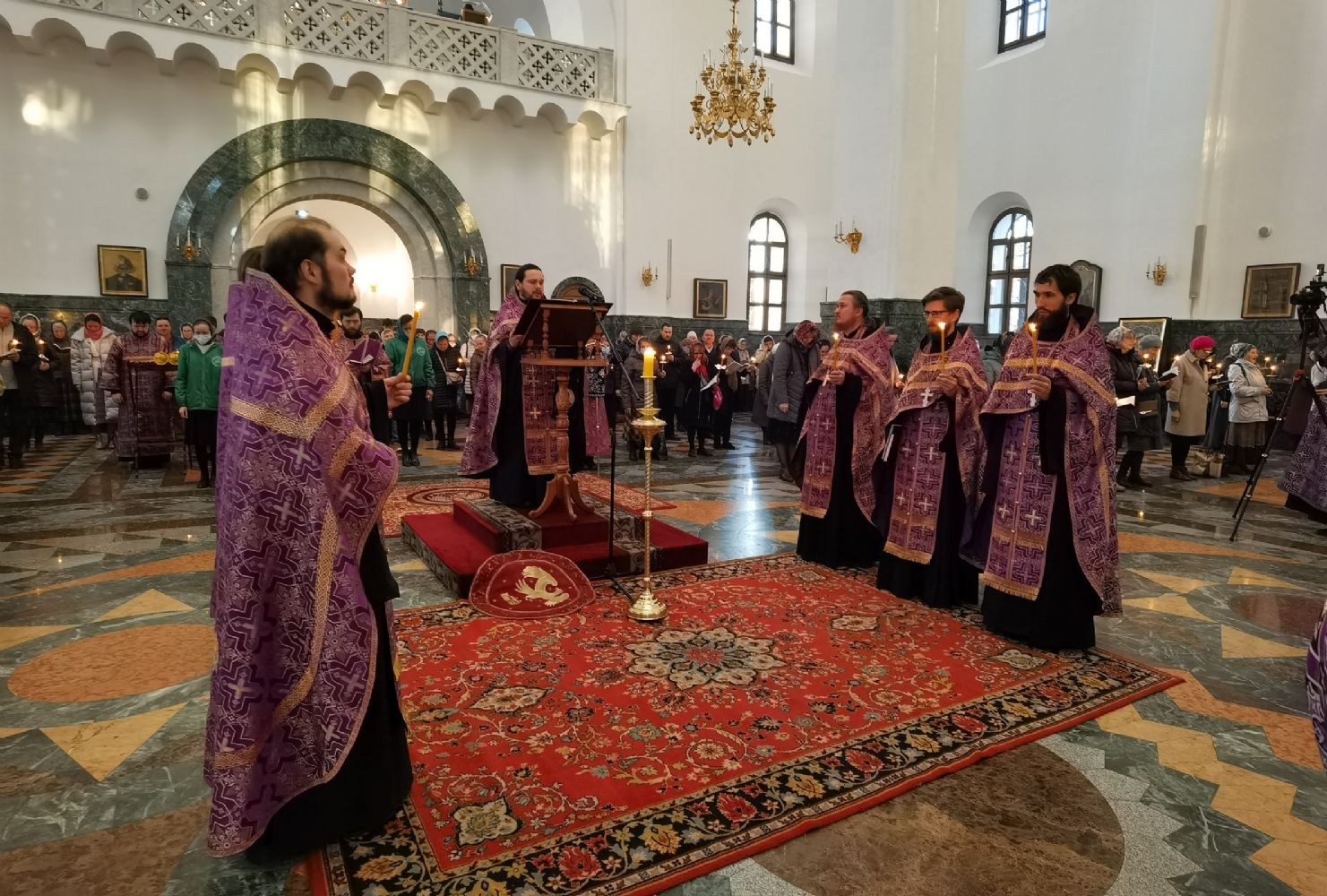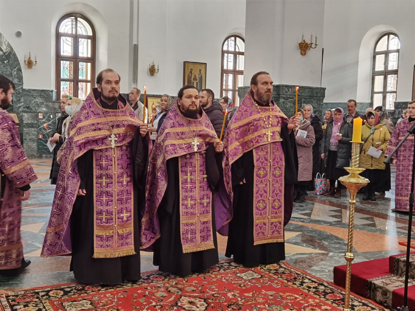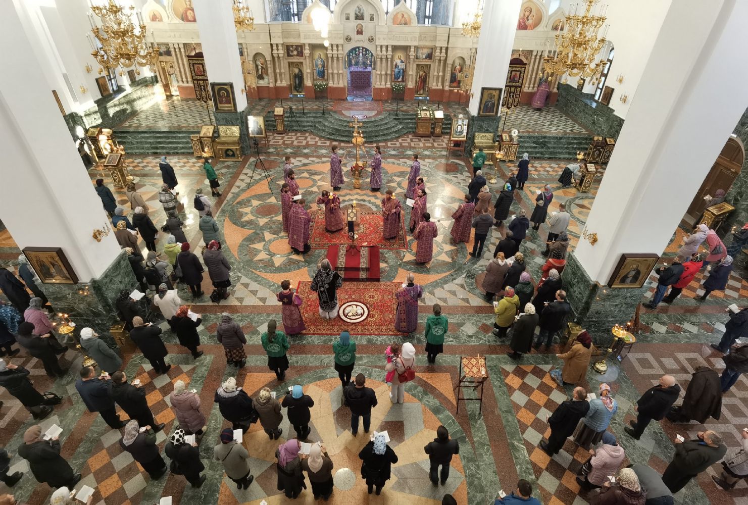 Все богослужение посвящено воспоминанию спасительных страданий и крестной смерти Господа нашего Иисуса Христа. Евангельские отрывки вместе с Владыкой поочередно читали сослужившие ему священники – секретарь Йошкар-Олинского епархиального управления иеромонах Серафим (Пасанаев), ключарь собора протоиерей Сергий Поглазов, клирики собора Никифор Захаров, Евгений Самойлов, Александр Староверов и Иоанн Милютин.