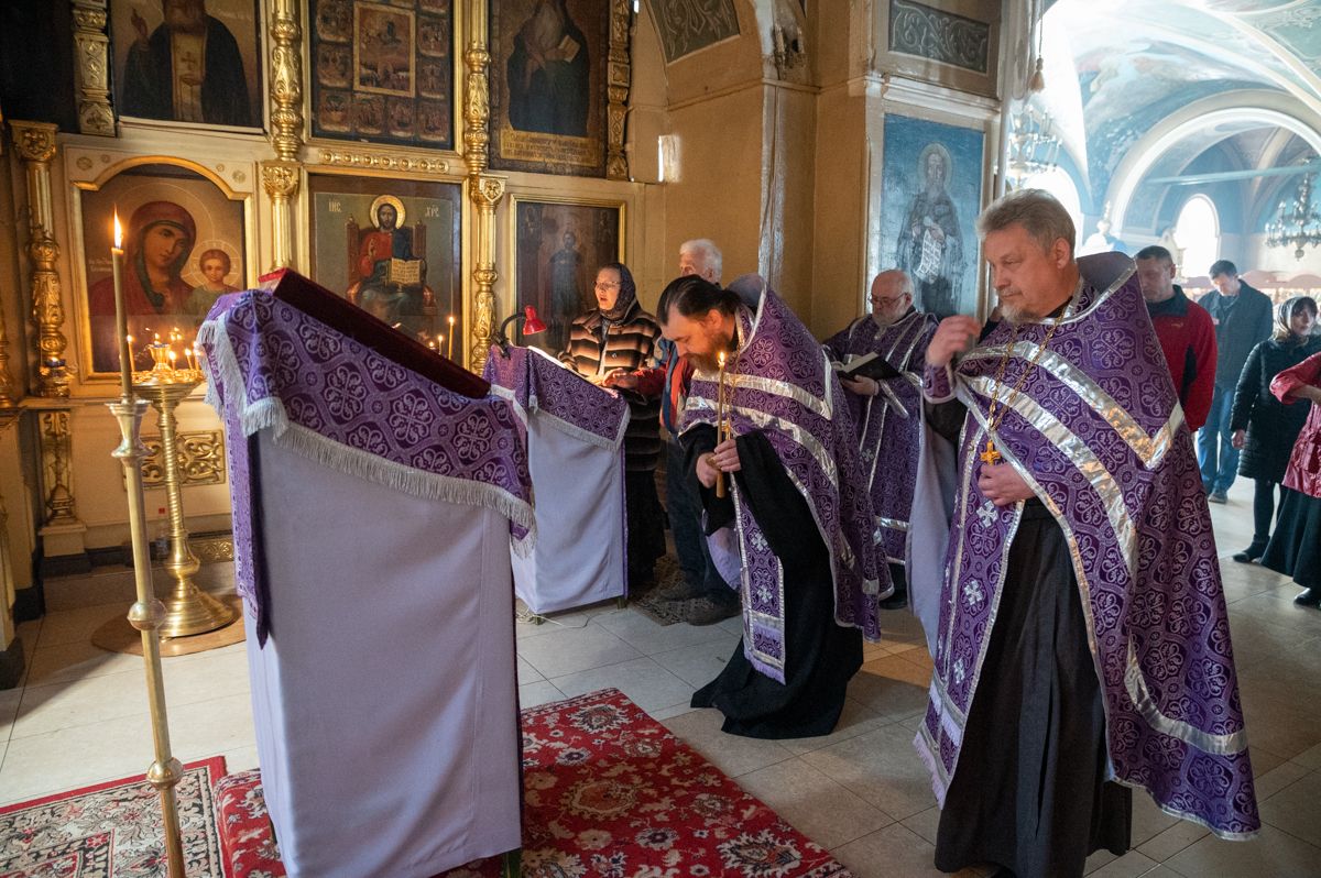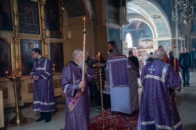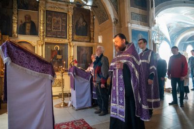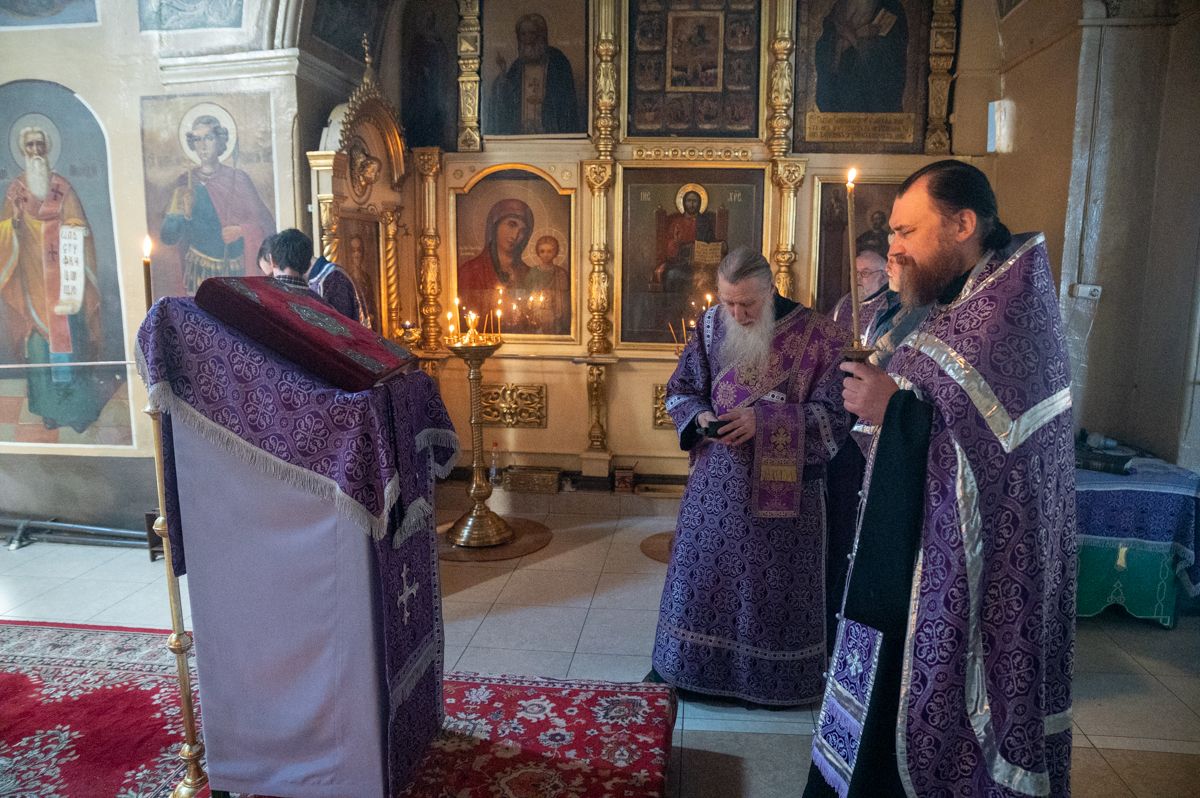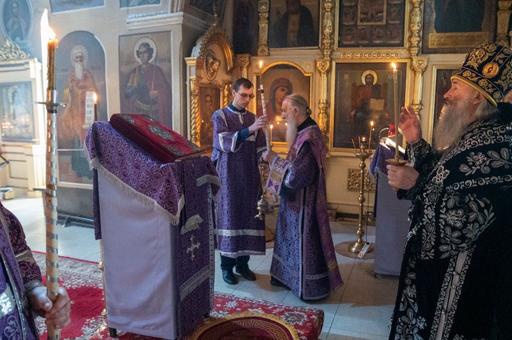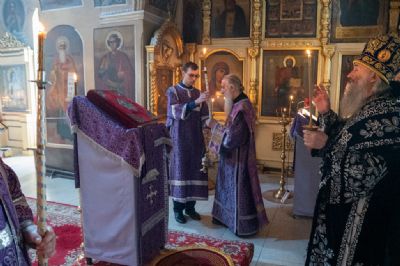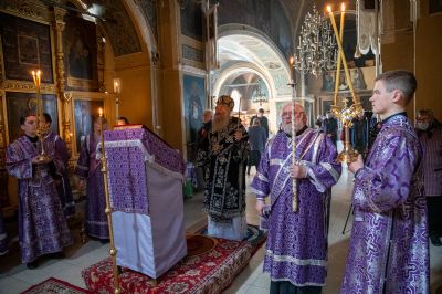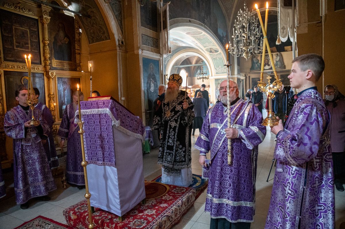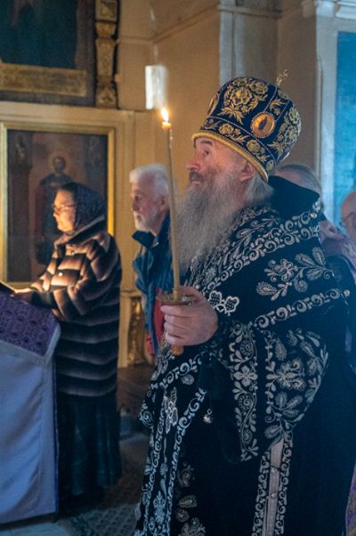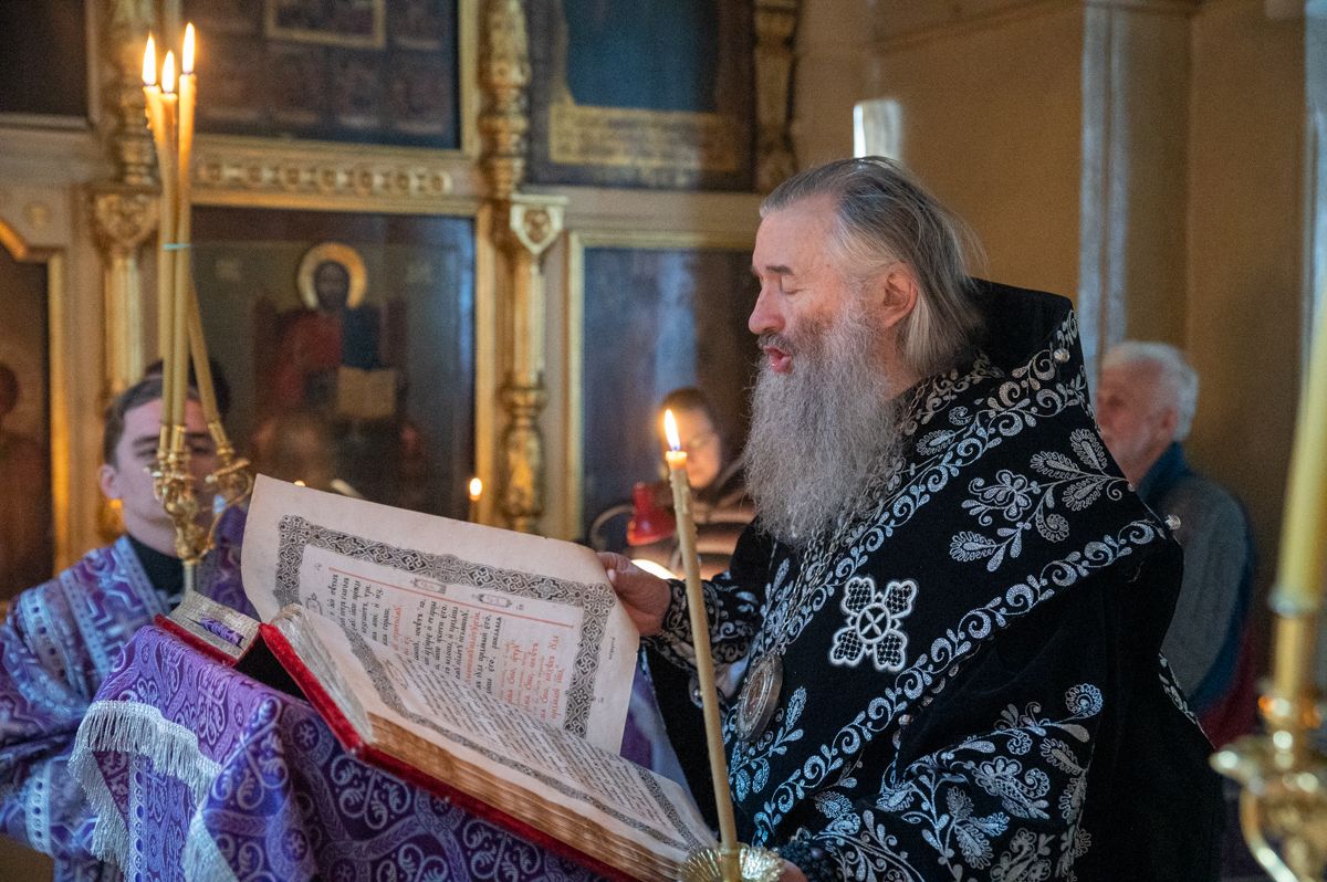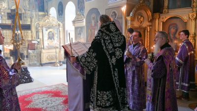 Владыке сослужили ключарь храма протоиерей Михаил Ильин, клирики храма и протодиакон Михаил Козловский. Песнопения исполнял хор храма.