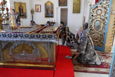 Владыке сослужили клирики собора, песнопения исполнял архиерейский хор.