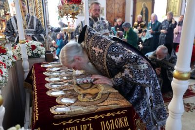22 апреля епископ Волжский и Сернурский Феофан совершил в Никольском кафедральном соборе богослужение Страстной Пятницы. Оно состояло из Царских часов, изобразительных, вечерни с выносом Плащаницы и малого повечерия.