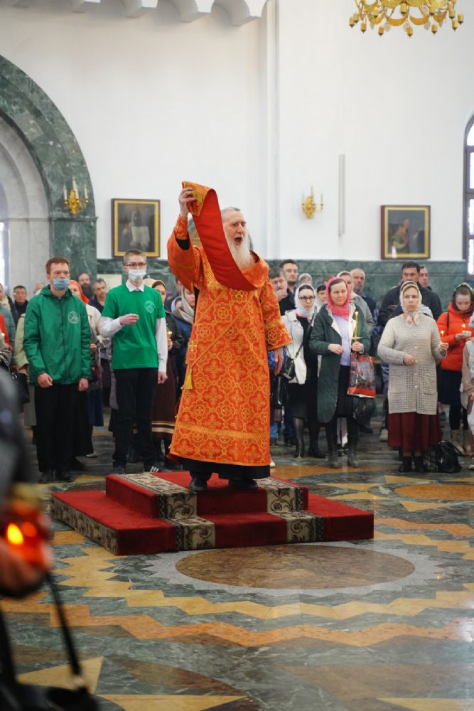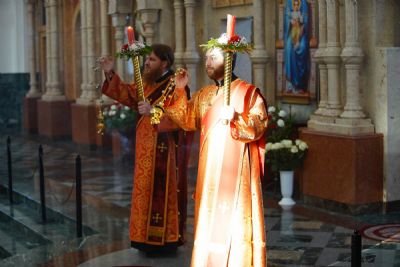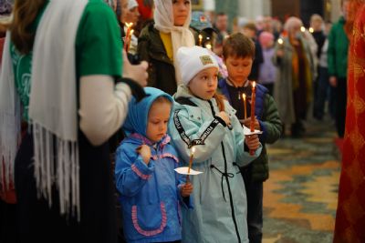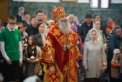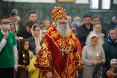 24 апреля, в праздник Светлого Христова Воскресения, митрополит Йошкар-Олинский и Марийский Иоанн совершил Пасхальную великую вечерню в Благовещенском кафедральном соборе.