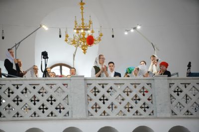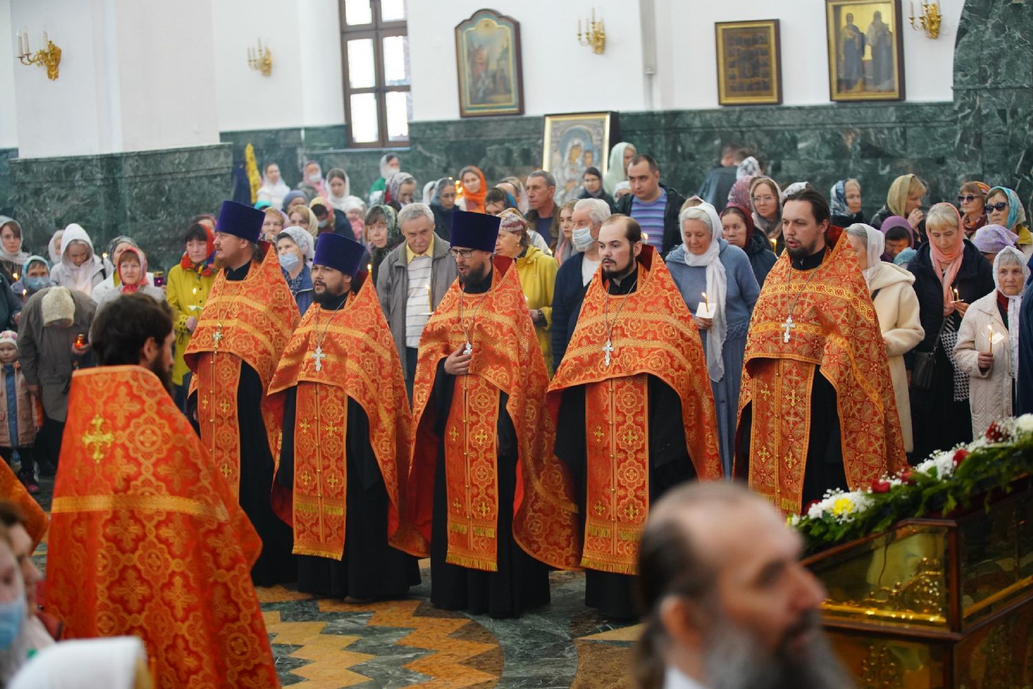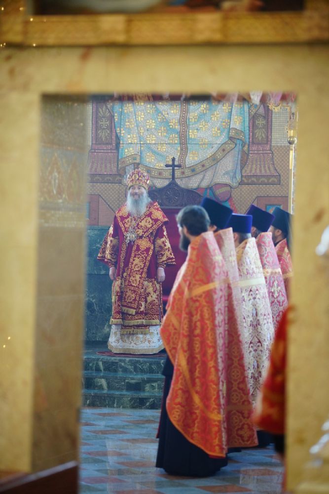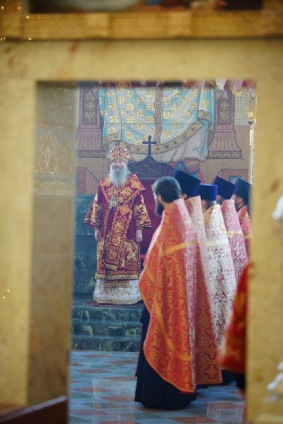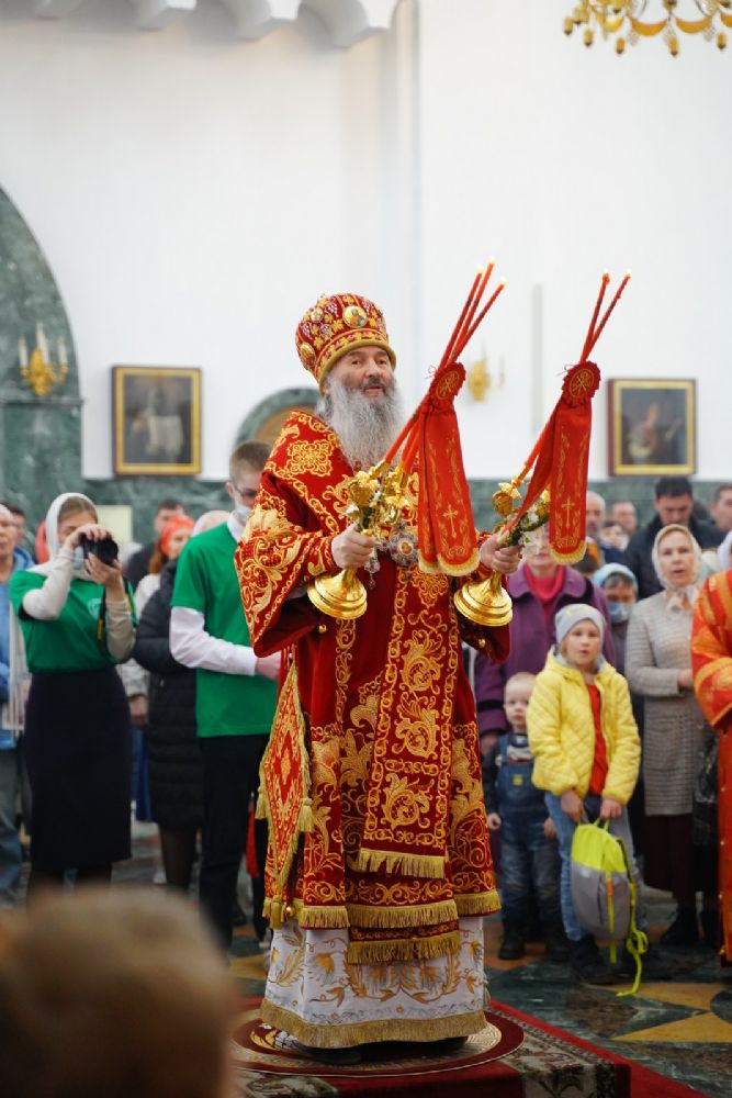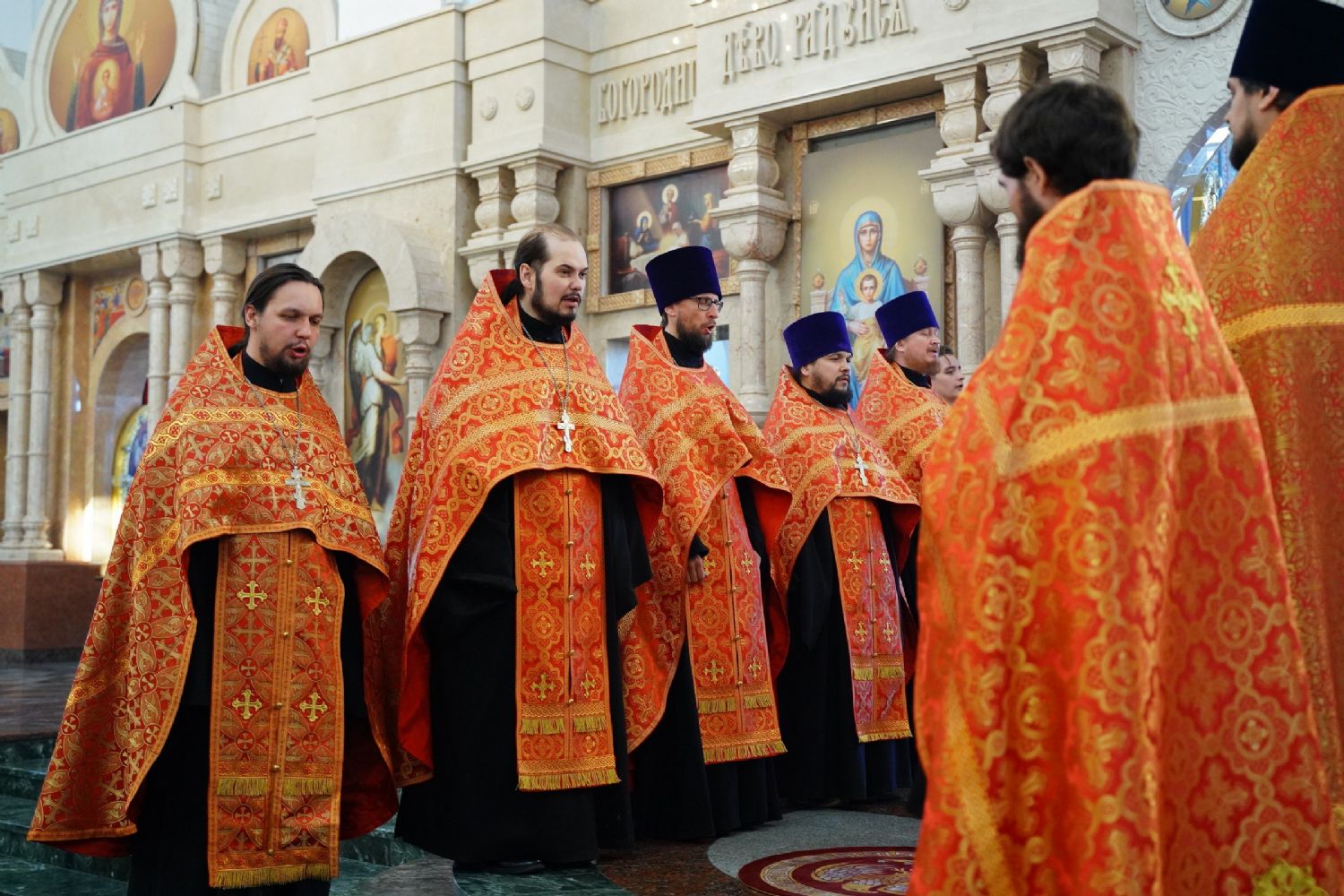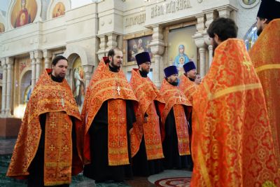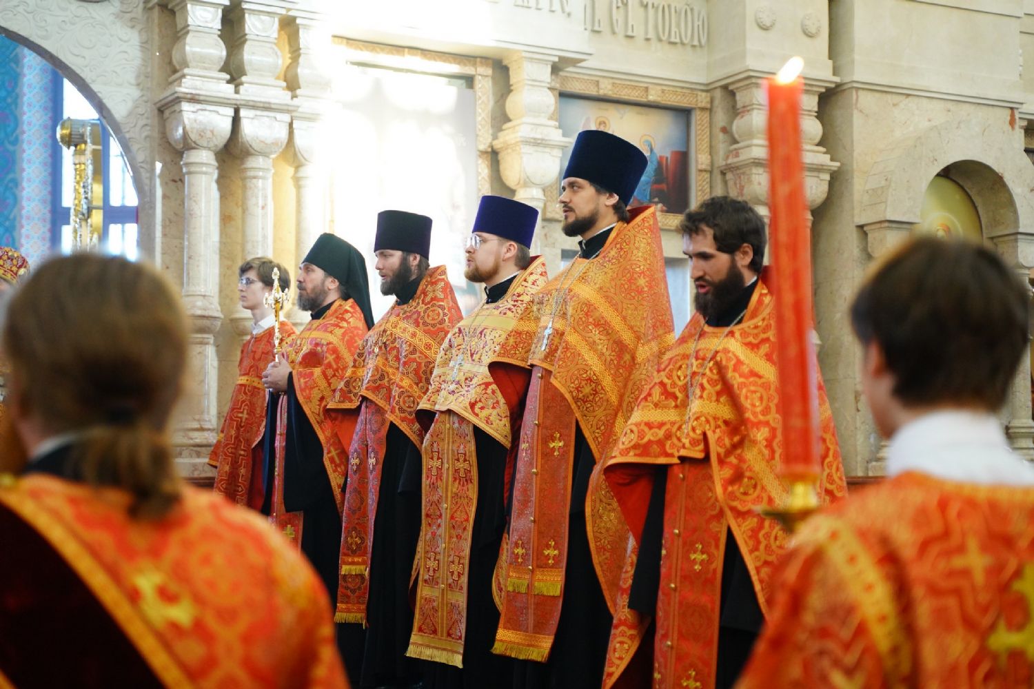 На вечерне владыке сослужили секретарь Йошкар-Олинского епархиального управления иеромонах Серафим (Пасанаев), ключарь кафедрального собора протоиерей Сергий Поглазов, настоятель Воскресенского собора иерей Алексий Кирюшкин, настоятель Сретенского храма с. Азаново иерей Артемий Промович, клирик Успенского храма иерей Никита Иванов, клирик Воскресенского собора иерей Игорь Коваль, клирики Благовещенского собора и протодиакон Михаил Козловский. Песнопения исполнял детско-юношеский хор «Благовест» под управлением Татьяны Черновой.