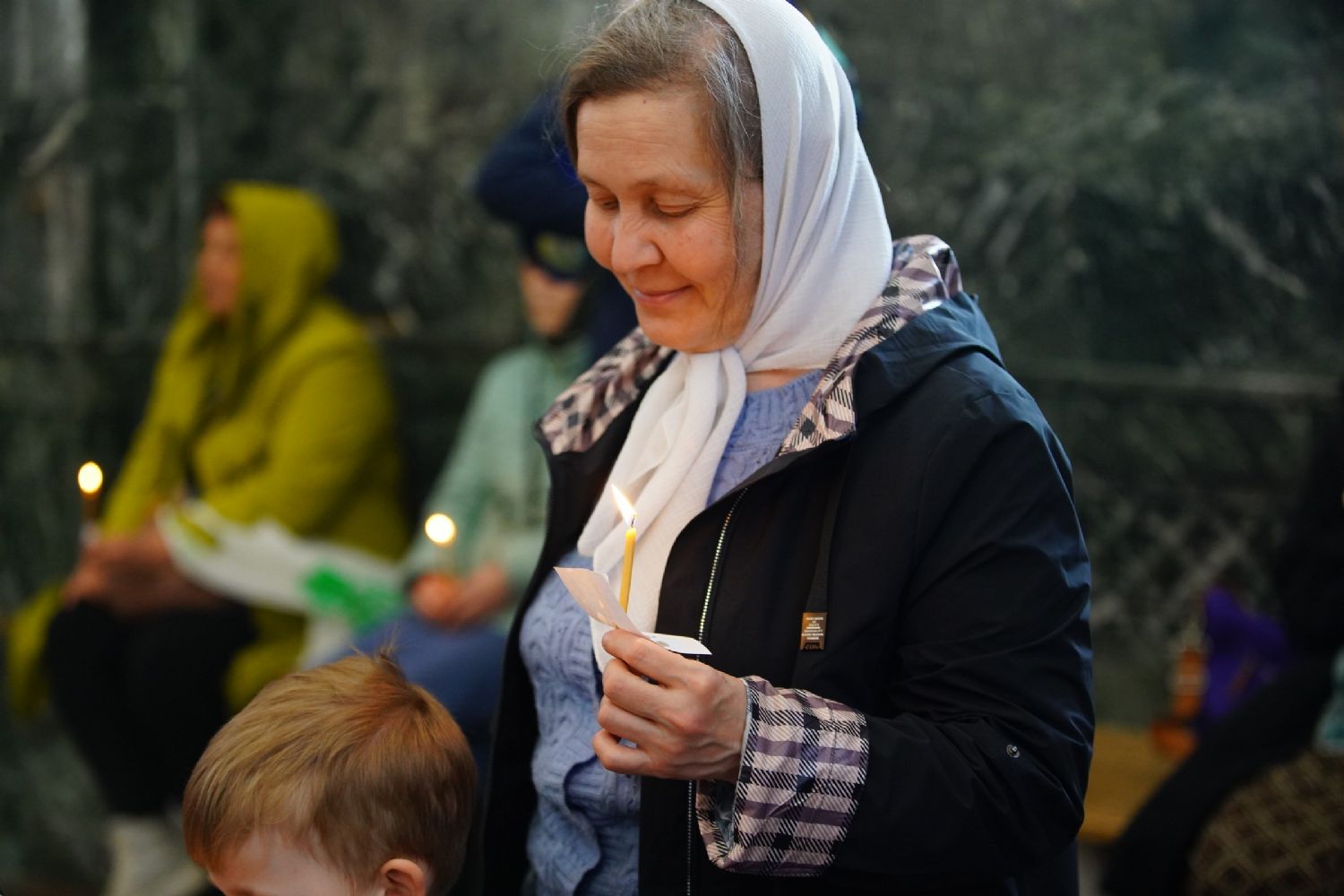 Перед началом богослужения духовенство и верующие встретили Благодатный огонь, который был привезен из Храма Воскресения Христова (Гроба Господня) г. Иерусалима в Москву, а затем доставлен в Йошкар-Олинскую епархию. Владыка Иоанн внес зажженую лампаду в алтарь, а иеромонах Серафим и отец Сергий раздали огонь прихожанам, которые молились, держа горящие свечи в руках.