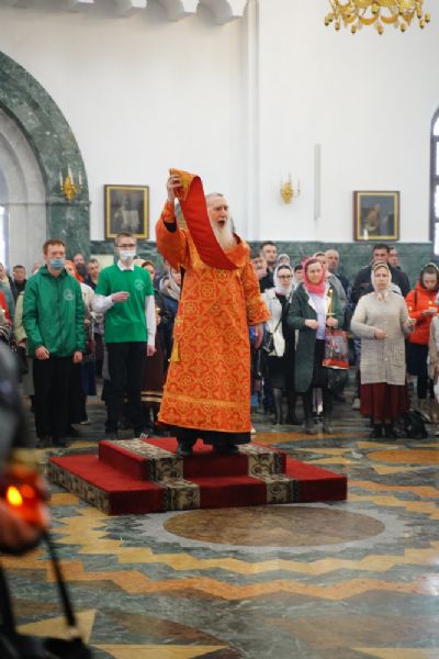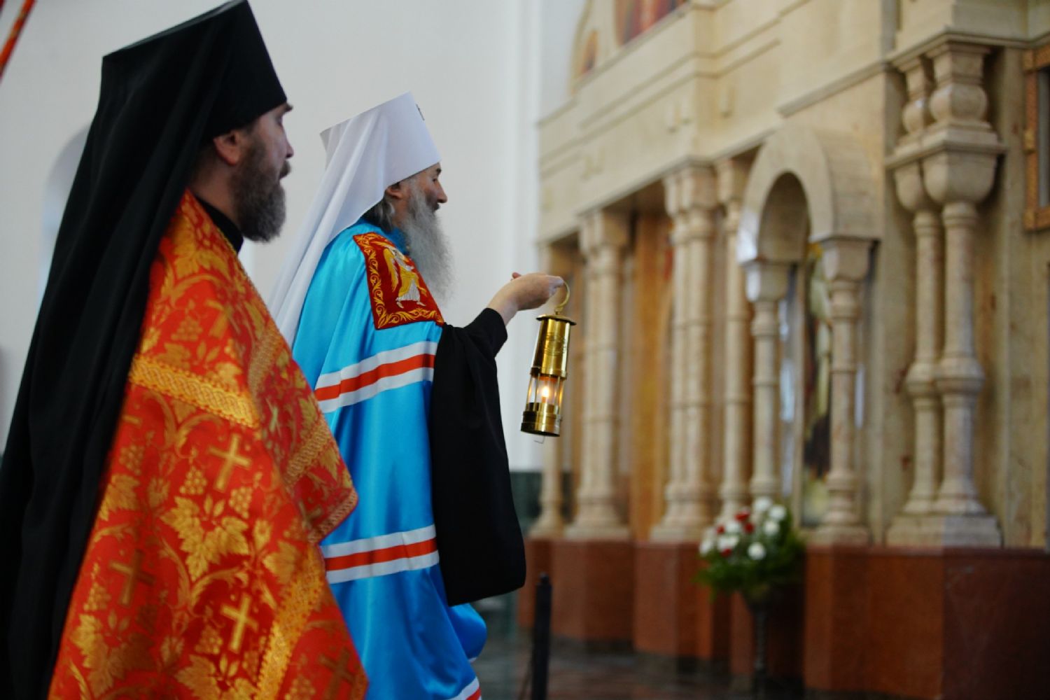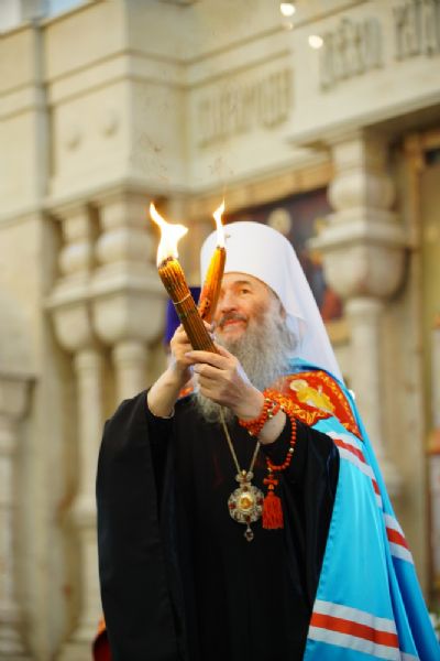 После богослужения митрополит Иоанн обратился к верующим с архипастырским словом, рассказав об обстоятельствах чудесного схождения Благодатного огня на Гробе Господнем в Иерусалиме. «Этот огонь – видимый знак Воскресшего Христа, который является нам, чтобы разрушить наше маловерие, заставить нас прислушаться к своей душе, которая радуется и трепещет, слыша ангельский возглас: Христос Воскресе! – отметил владыка. – Пусть же каждый из нас в эти святые пасхальные дни спешит в храмы Божии, чтобы ощутить ту радость, которую Сам Воскресший Христос дарует всякому человеку без различия».