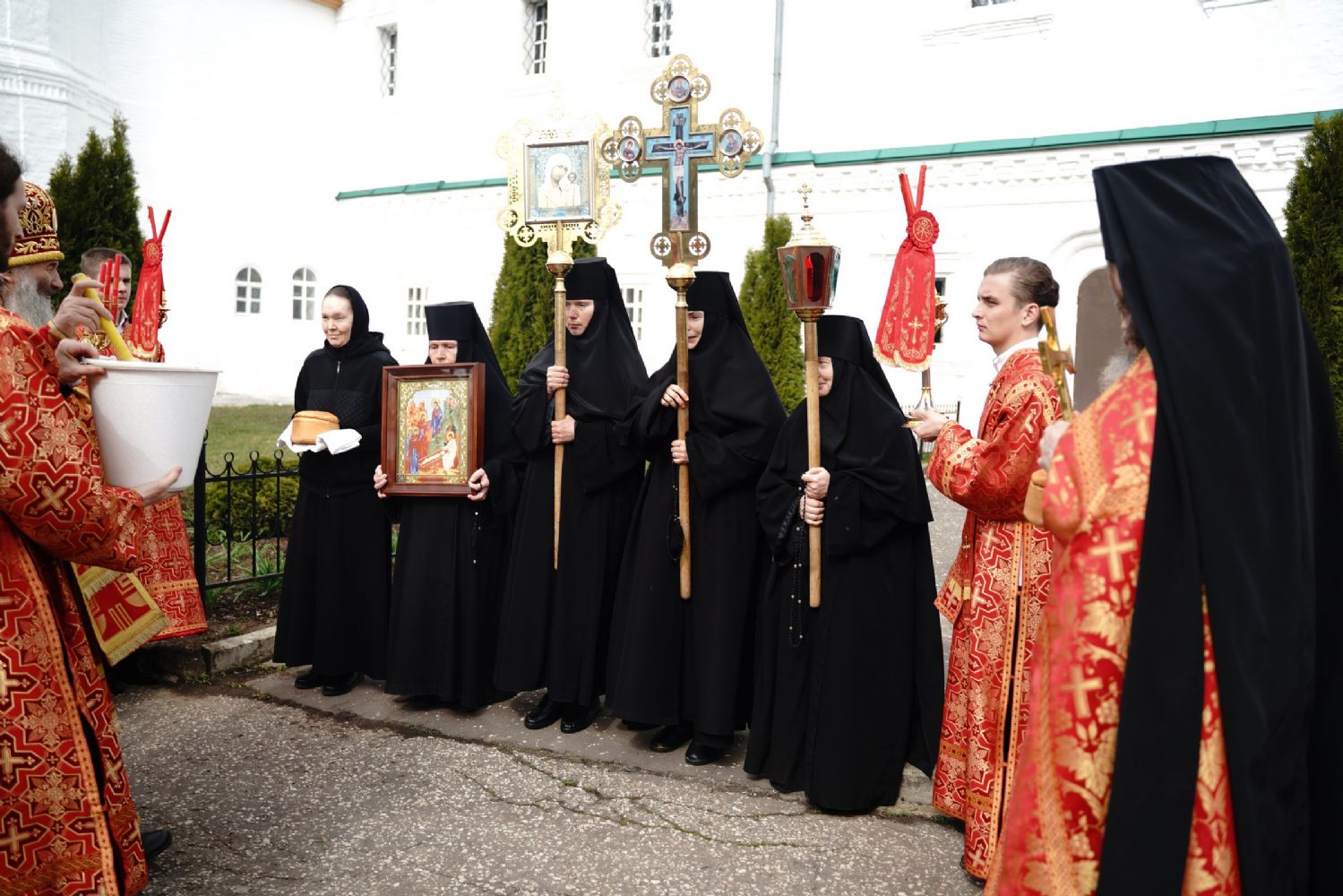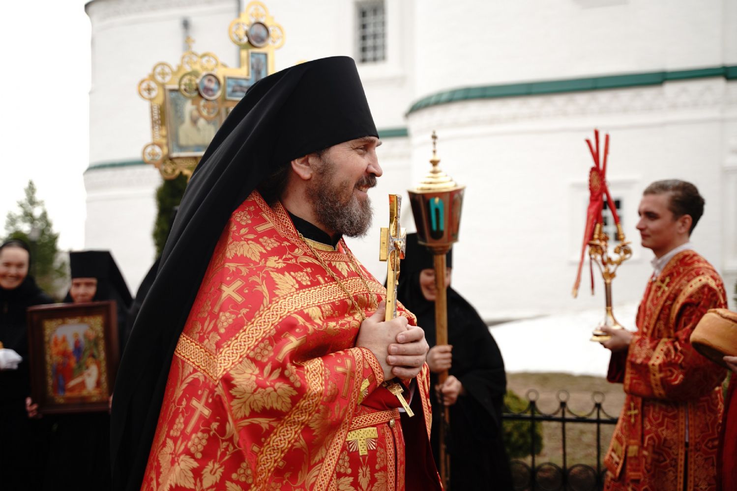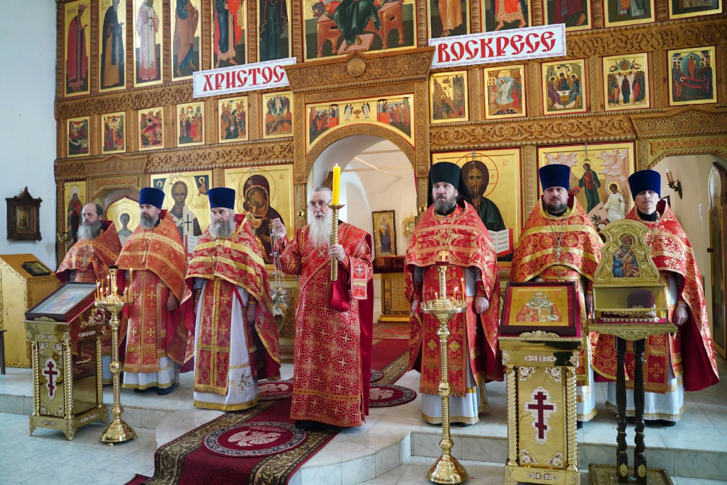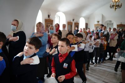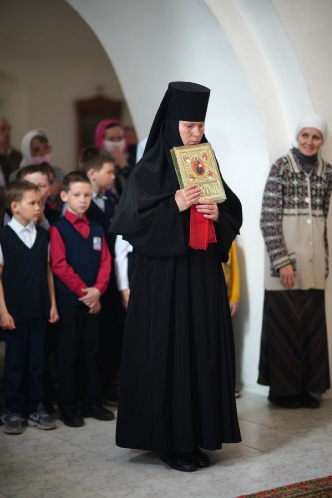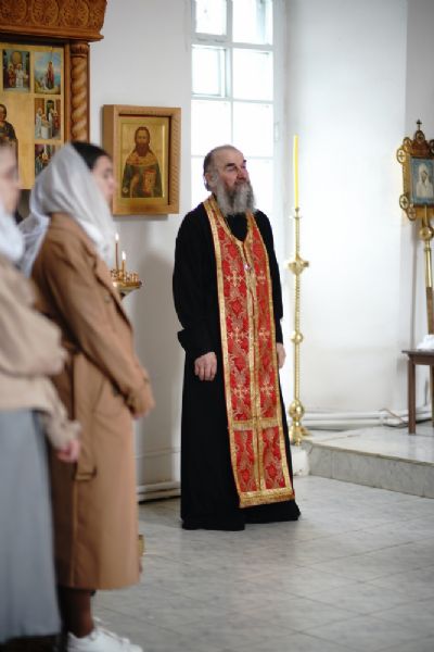 Владыке сослужили секретарь Йошкар-Олинского епархиального управления иеромонах Серафим (Пасанаев), клирик монастыря иерей Михаил Лежнин и духовенство Йошкар-Олинской епархии. Песнопения исполнял детско-юношеский хор «Благовест» под управлением регента Татьяны Черновой.