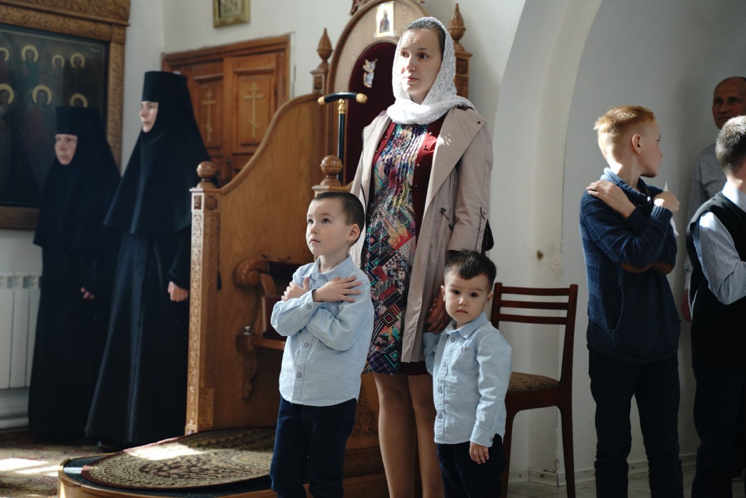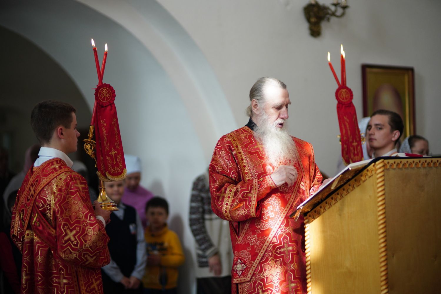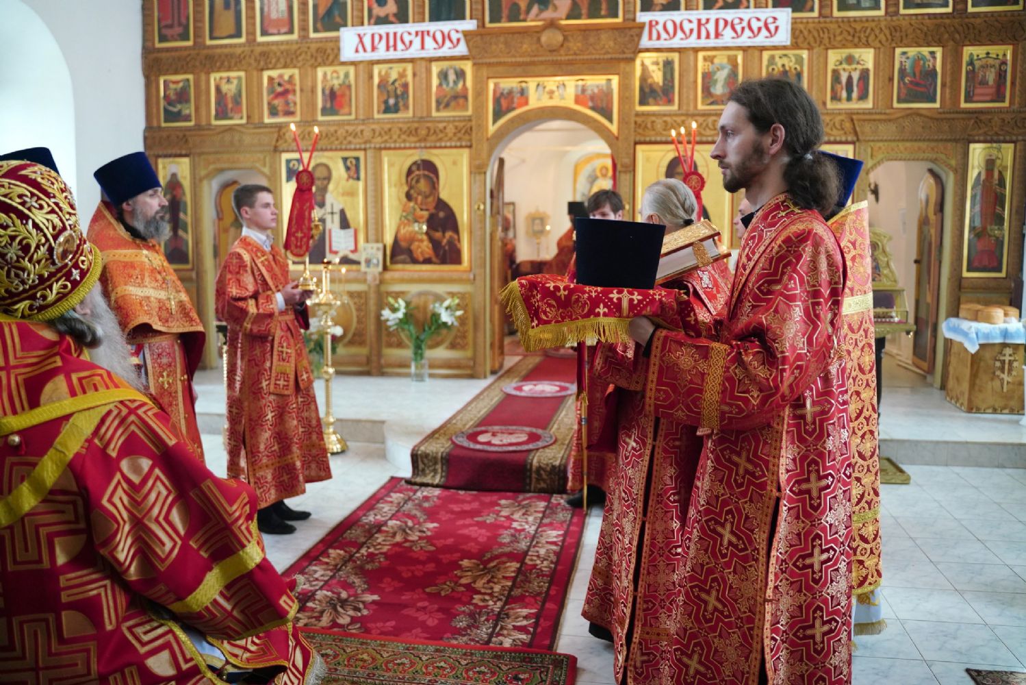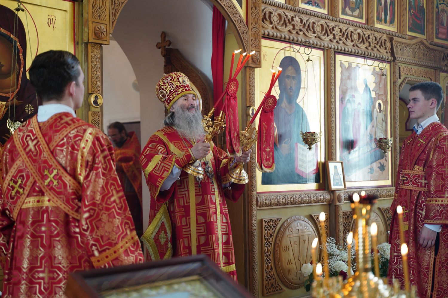 Владыке сослужили секретарь Йошкар-Олинского епархиального управления иеромонах Серафим (Пасанаев), клирик монастыря иерей Михаил Лежнин и духовенство Йошкар-Олинской епархии. Песнопения исполнял детско-юношеский хор «Благовест» под управлением регента Татьяны Черновой.