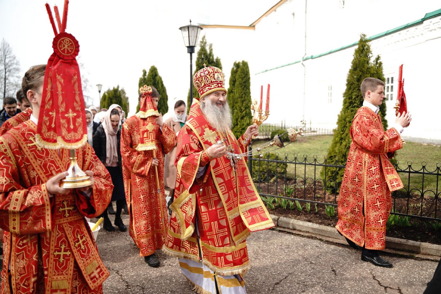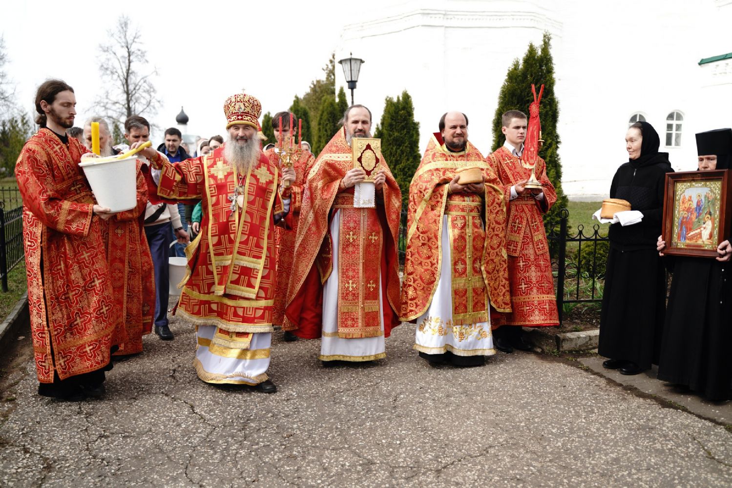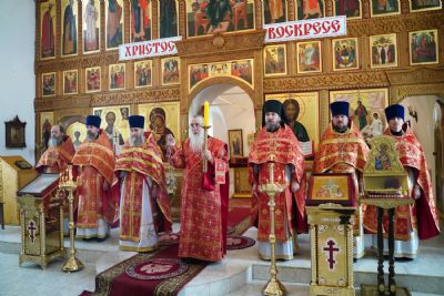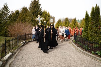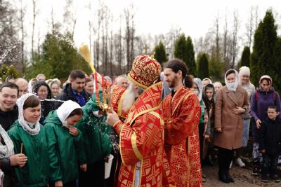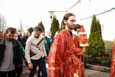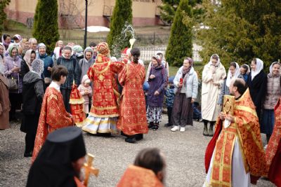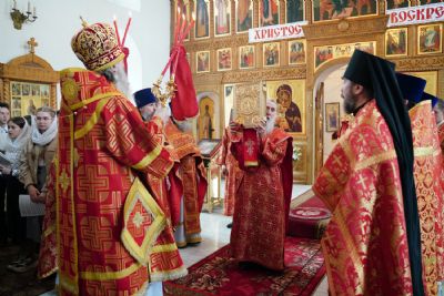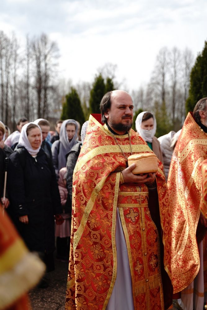 После Литургии прошел крестный ход пасхальным чином с чтением Евангелия и кроплением святой водой. Затем владыка обратился к собравшимся с проповедью, разъяснив духовный смысл прочитанного за богослужением евангельского зачала о явлении Воскресшего Христа Луке и Клеопе на пути из Иерусалима в Эммаус.