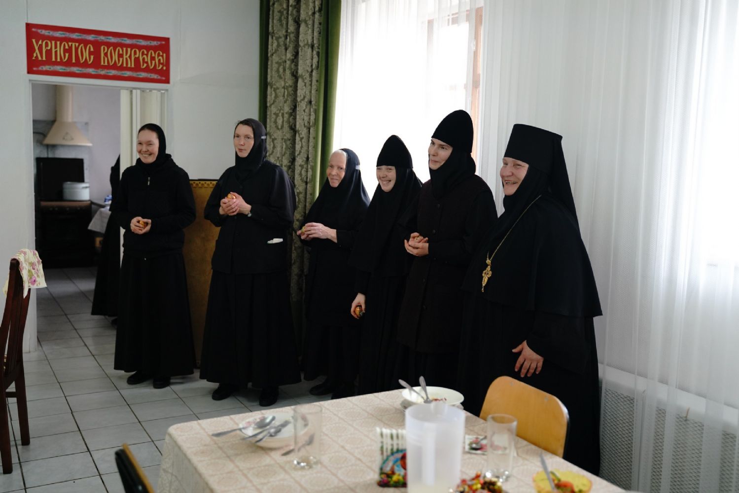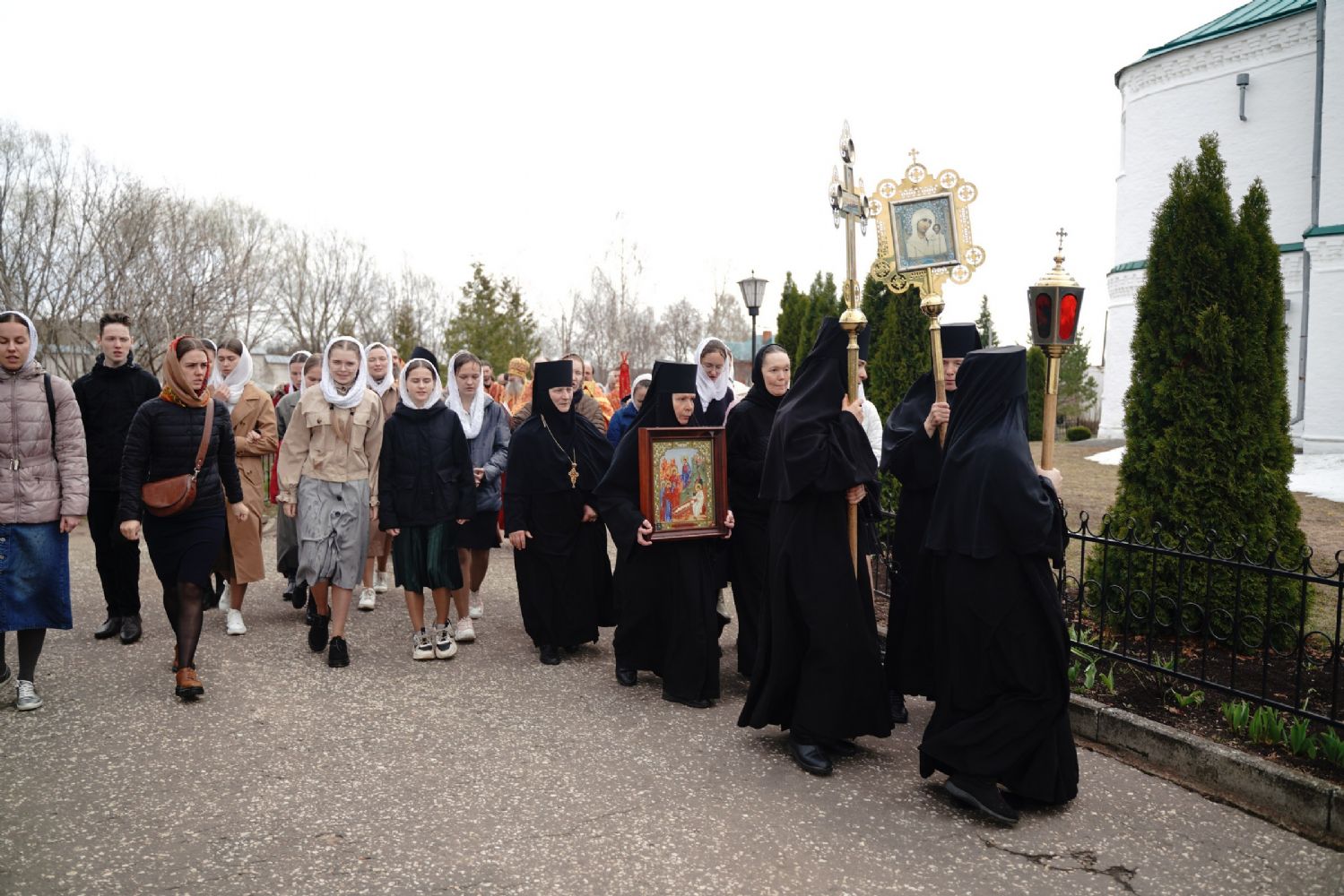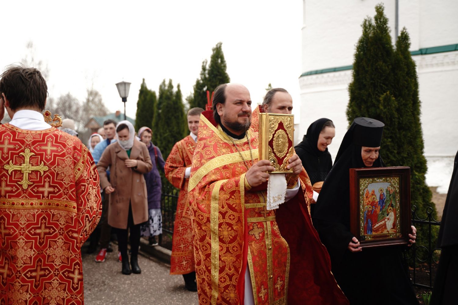 После Литургии прошел крестный ход пасхальным чином с чтением Евангелия и кроплением святой водой. Затем владыка обратился к собравшимся с проповедью, разъяснив духовный смысл прочитанного за богослужением евангельского зачала о явлении Воскресшего Христа Луке и Клеопе на пути из Иерусалима в Эммаус.