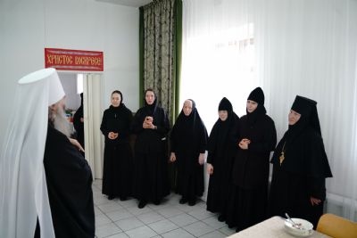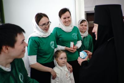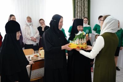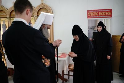 В завершение митрополит Иоанн поздравил игумению и насельниц обители с праздником Пасхи и вручил сладкие подарки.