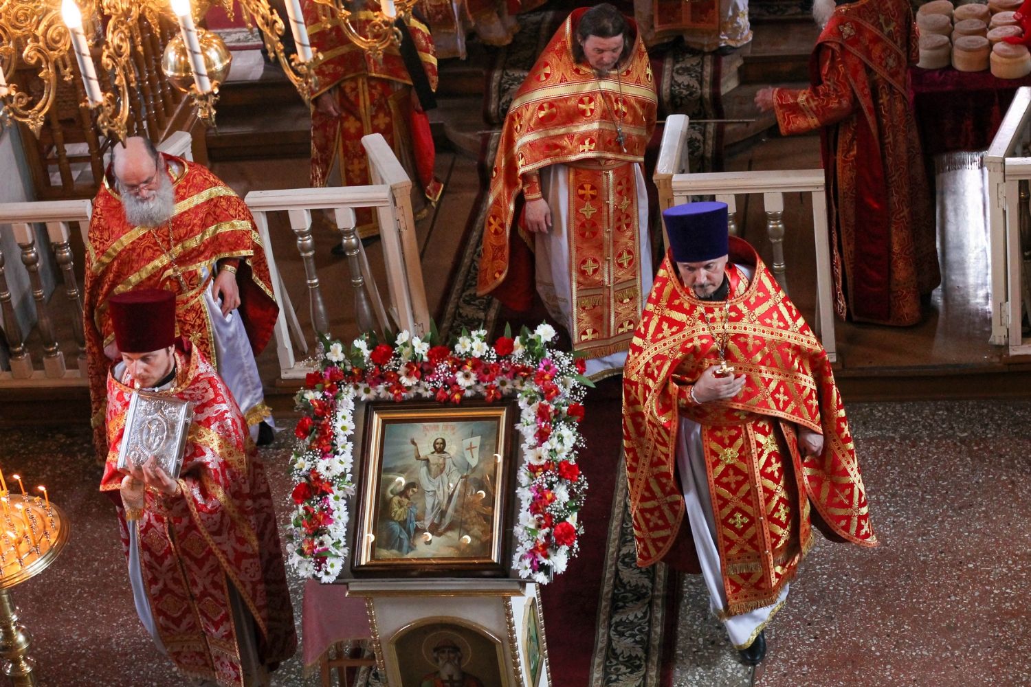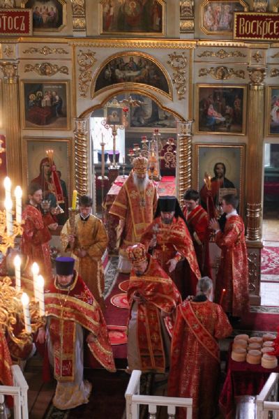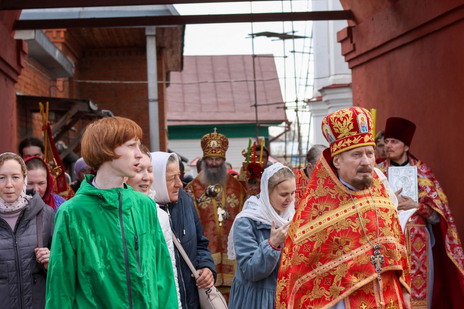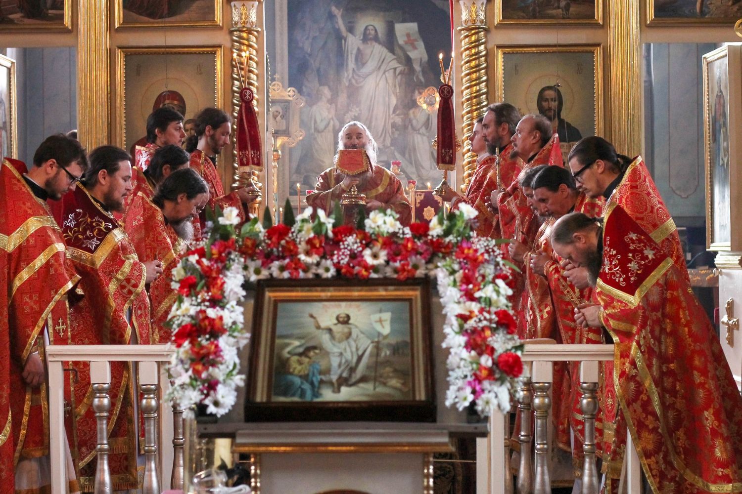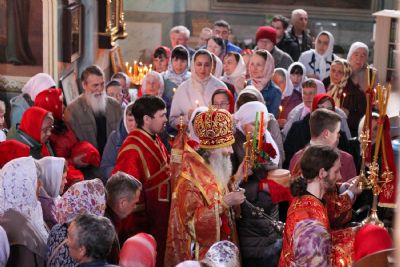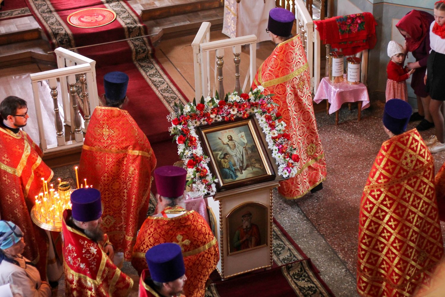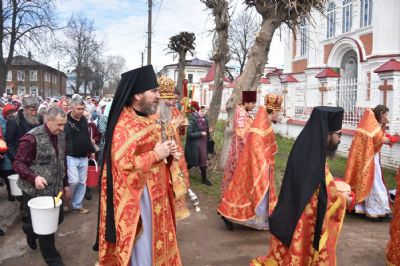 После Литургии прошел крестный ход вокруг храма с чтением Евангелия и кроплением святой водой. Затем владыка обратился к собравшимся с архипастырским словом: «Пасха! Мы именуем ее красной (т. е. прекрасной), мы именуем ее спасительной, избавляющей нас от смерти, дарующей нам жизнь вечную. Все это мы получаем от Бога даром, и каждый из нас должен в эти святые дни сохранить это духовное умиротворение и радость о Господе.