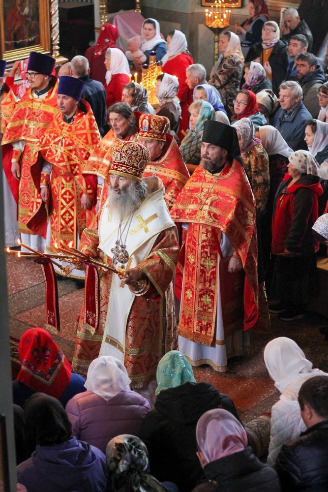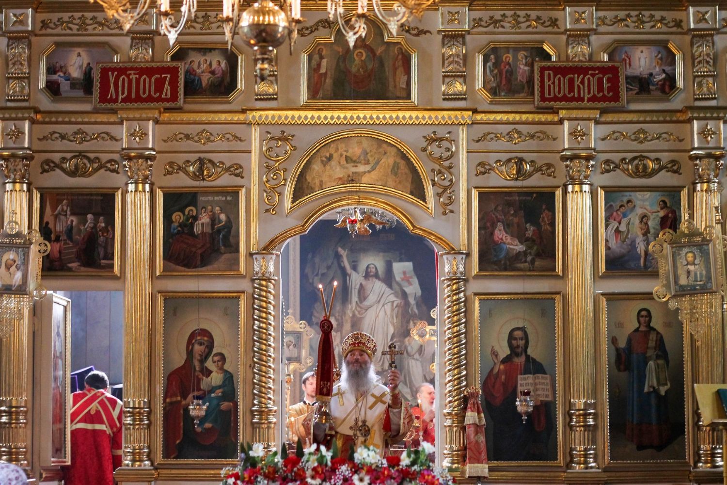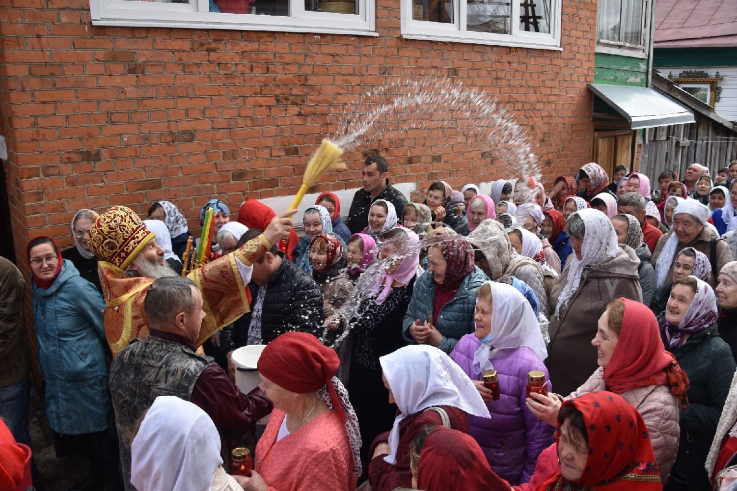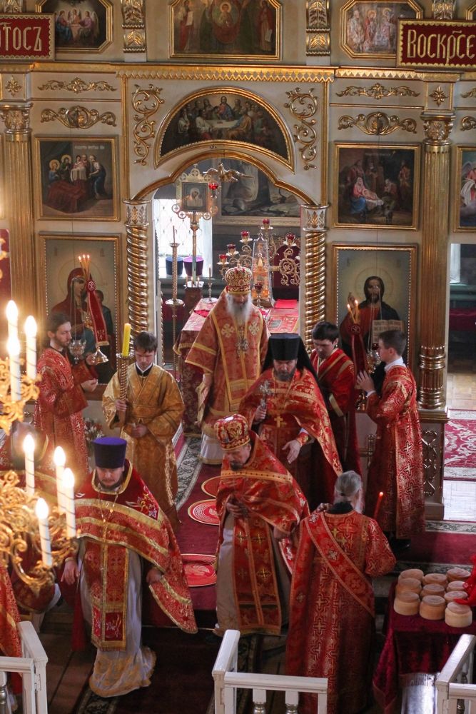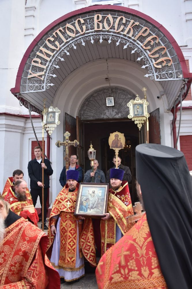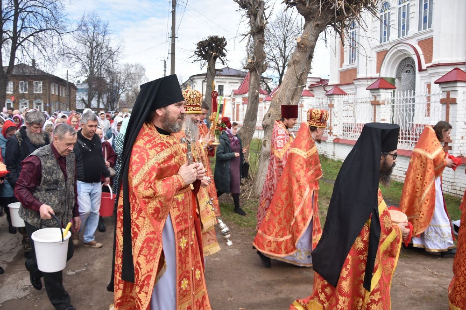 После Литургии прошел крестный ход вокруг храма с чтением Евангелия и кроплением святой водой. Затем владыка обратился к собравшимся с архипастырским словом: «Пасха! Мы именуем ее красной (т. е. прекрасной), мы именуем ее спасительной, избавляющей нас от смерти, дарующей нам жизнь вечную. Все это мы получаем от Бога даром, и каждый из нас должен в эти святые дни сохранить это духовное умиротворение и радость о Господе.