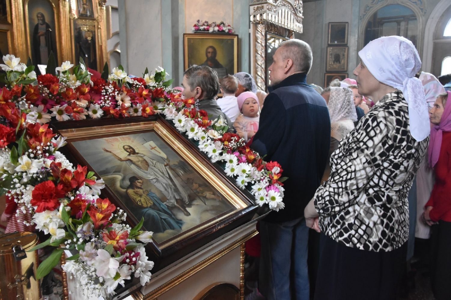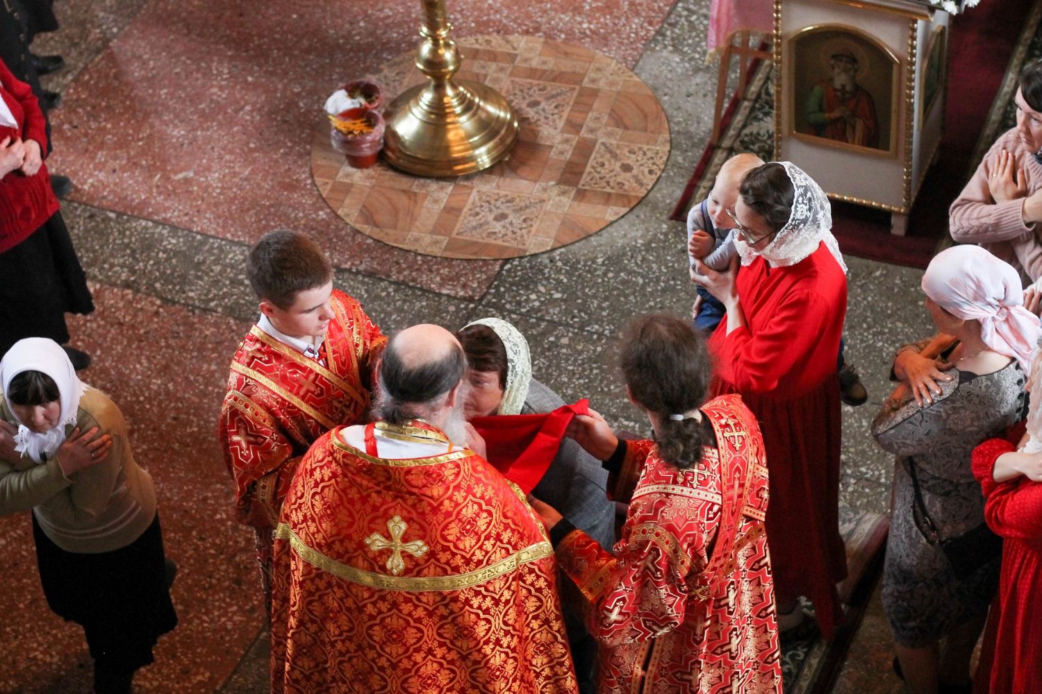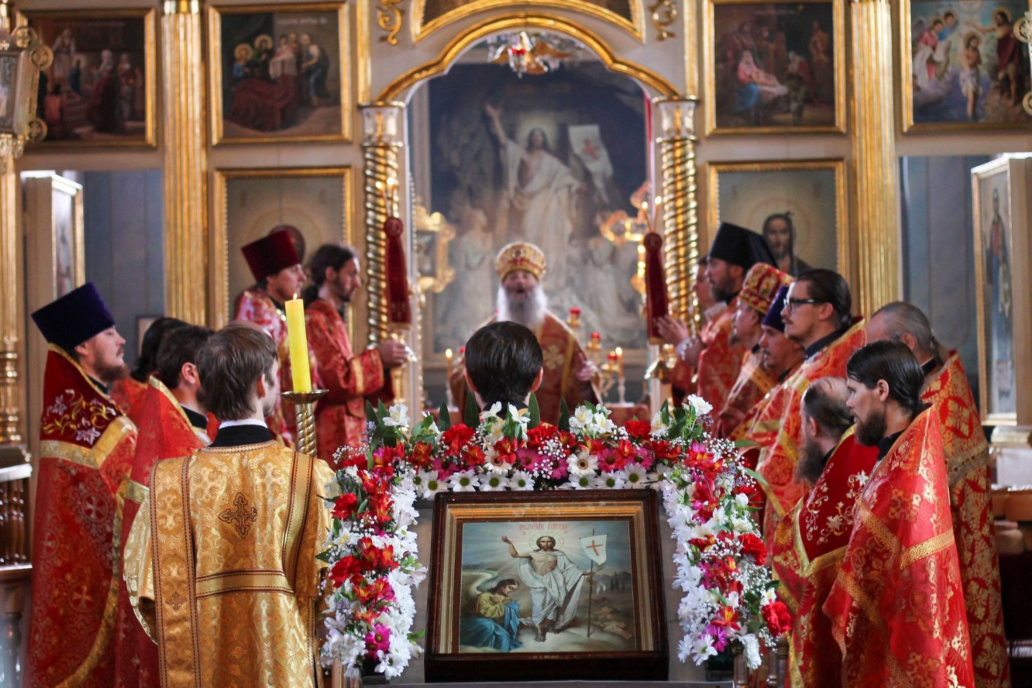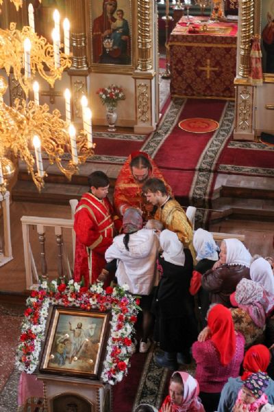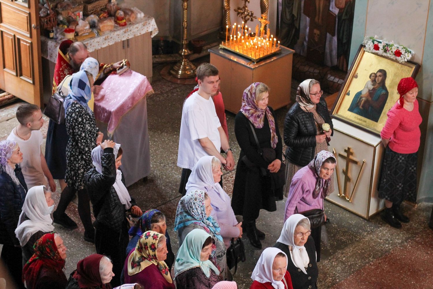 После Литургии прошел крестный ход вокруг храма с чтением Евангелия и кроплением святой водой. Затем владыка обратился к собравшимся с архипастырским словом: «Пасха! Мы именуем ее красной (т. е. прекрасной), мы именуем ее спасительной, избавляющей нас от смерти, дарующей нам жизнь вечную. Все это мы получаем от Бога даром, и каждый из нас должен в эти святые дни сохранить это духовное умиротворение и радость о Господе.