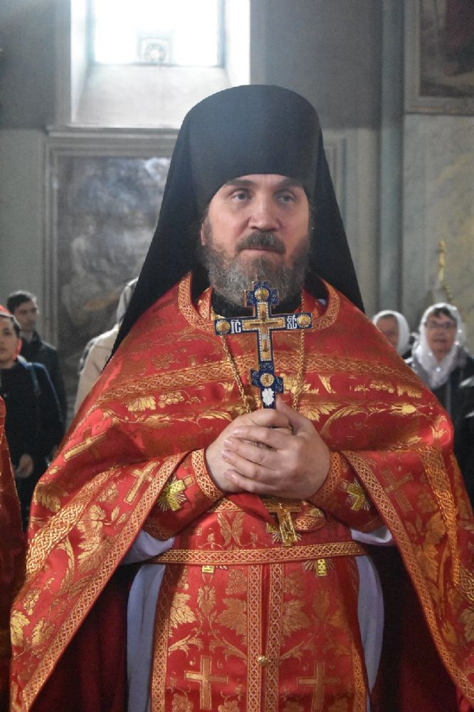 Архипастырю сослужили: секретарь Йошкар-Олинского епархиального управления иеромонах Серафим (Пасанаев), настоятель Смоленского собора иерей Алексий Евсеев и духовенство Йошкар-Олинской епархии.