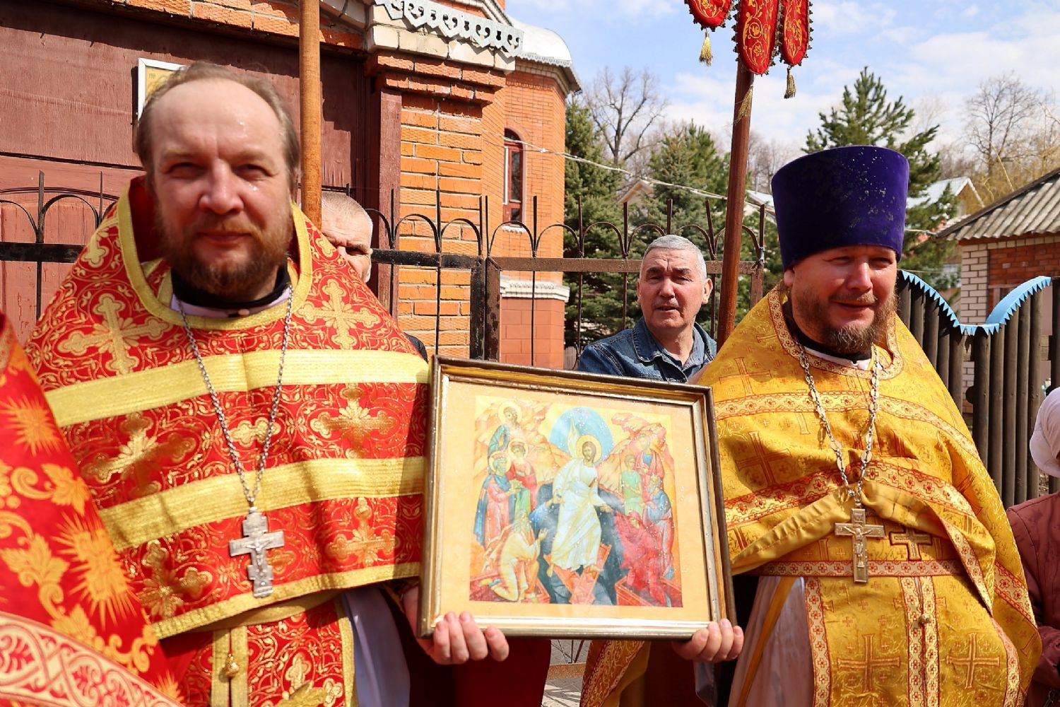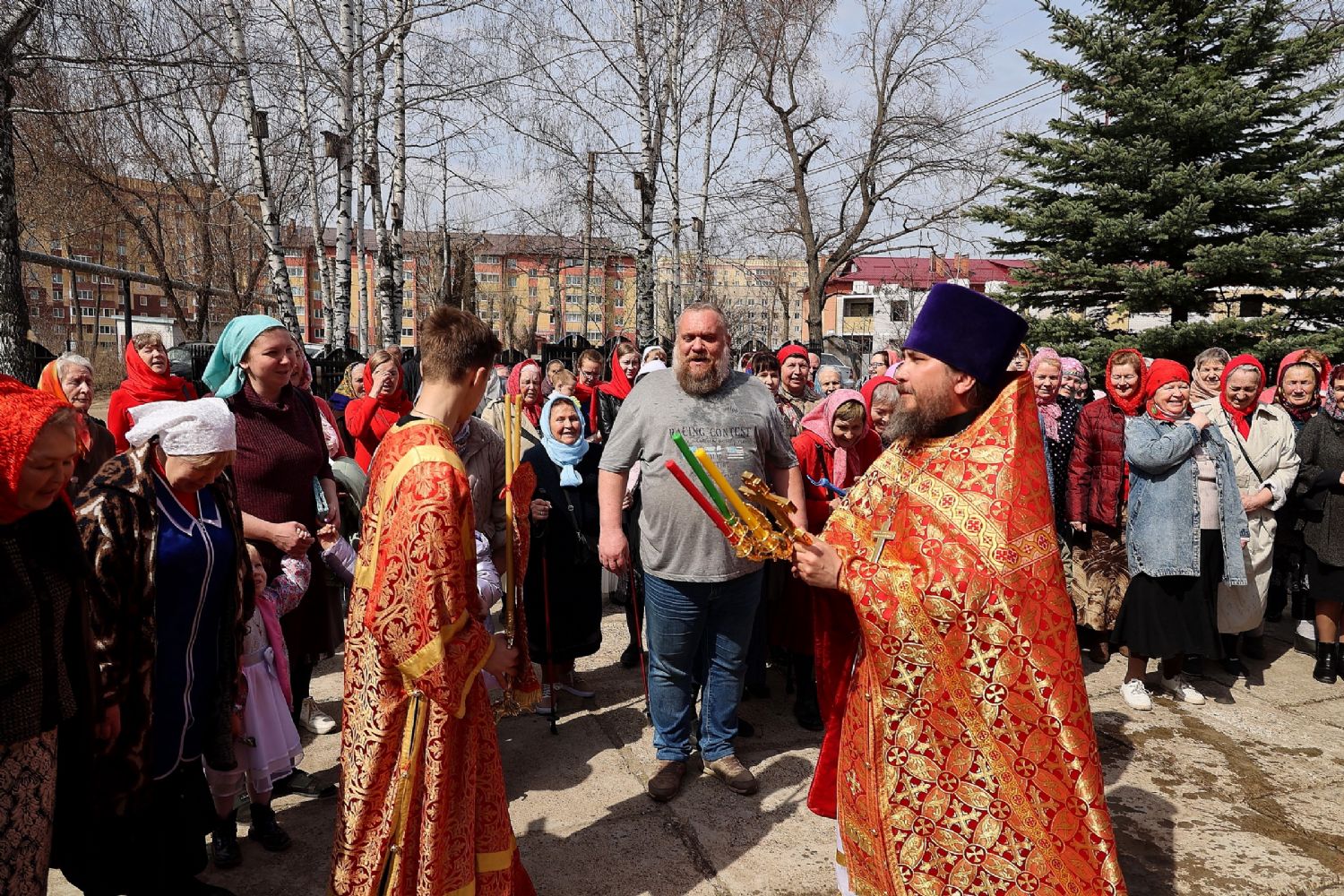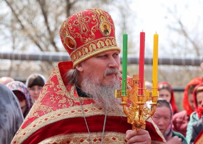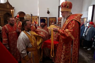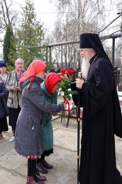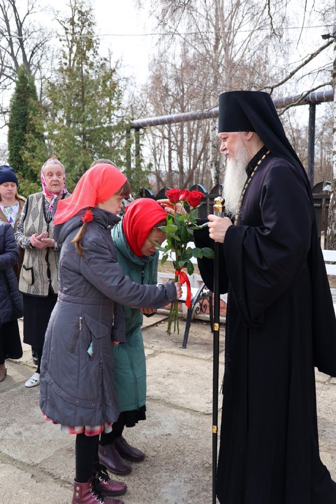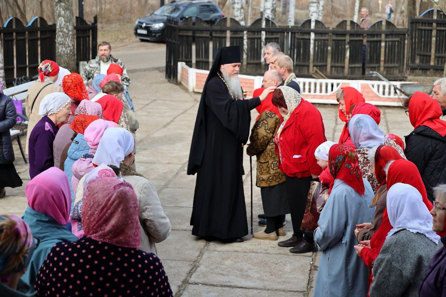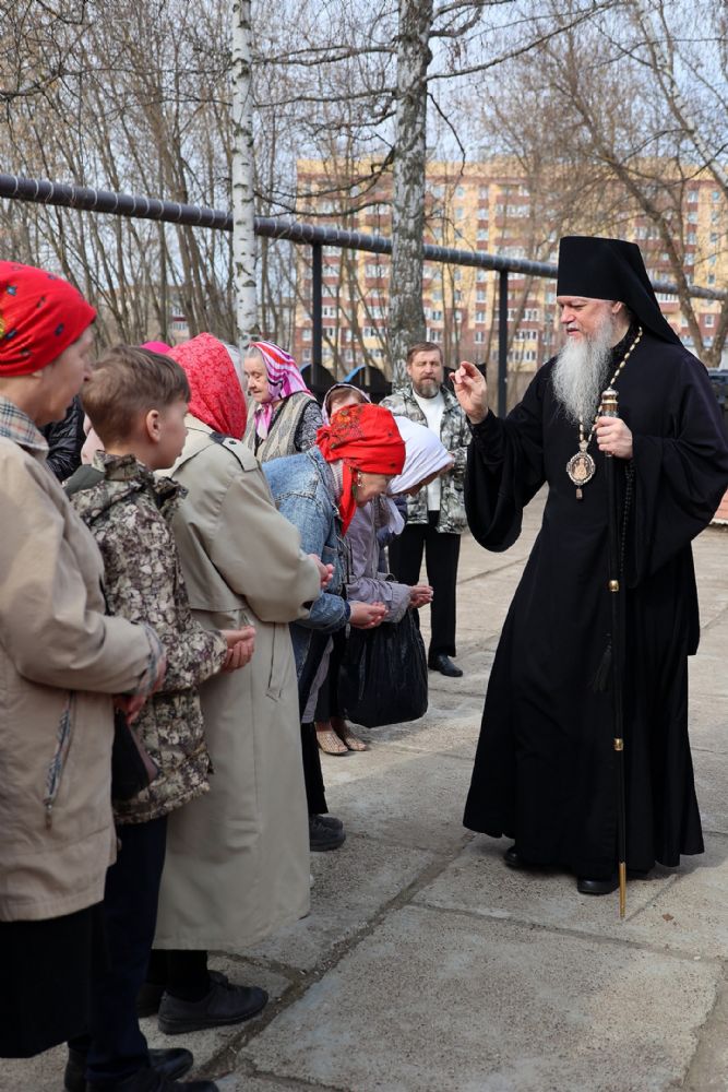 После богослужения владыка обратился к прихожанам со словом назидания, рассказав об истории чудотворного образа Божией Матери «Иверская», переходящее празднование которой совершается во вторник Светлой седмицы.
