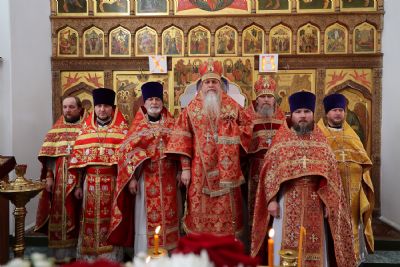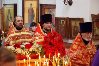Архипастырю сослужили настоятель храма протоиерей Александр Михайлов, секретарь Волжского епархиального управления протоиерей Иоанн Лапшинский, настоятель храма преподобномученика Андрея Критского с. Елембаево Новоторъяльского района протоиерей Сергий Бажанов, настоятель Покровского храма с. Илеть Параньгинского района иерей Виталий Ульянов, настоятель храма святых апостолов Петра и Павла с. Юледур Куженерского района иерей Матфей Сапаев, клирик из Казанской епархии иерей Александр Тимофеев, клирики Никольского собора г. Волжска диакон Иоанн Захаров и диакон Димитрий Карпетченко. Пел хор под управлением Ирины Канашиной.