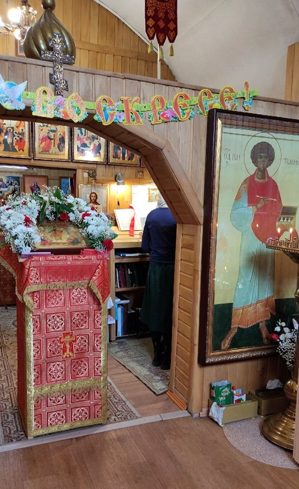 Божественную литургию в расположенной рядом храме-часовне во имя святого великомученика и целителя Пантелеимона и пасхальное вечернее богослужение накануне совершил настоятель храма иерей Михаил Горицкий. Помолиться Царице Небесной собрались не только постоянные прихожане, но и верующие из других храмов города. Многие причастились Святых Христовых Таин.