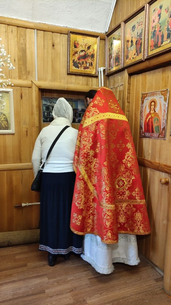 После Литургии прошли по храмовой территории крестным ходом, во время которого зашли в строящийся храм, внутри которого ведутся отделочные работы. Все вместе вознесли молитву Пресвятой Богородице, попросили Ее помощи в скорейшем завершении строительства.