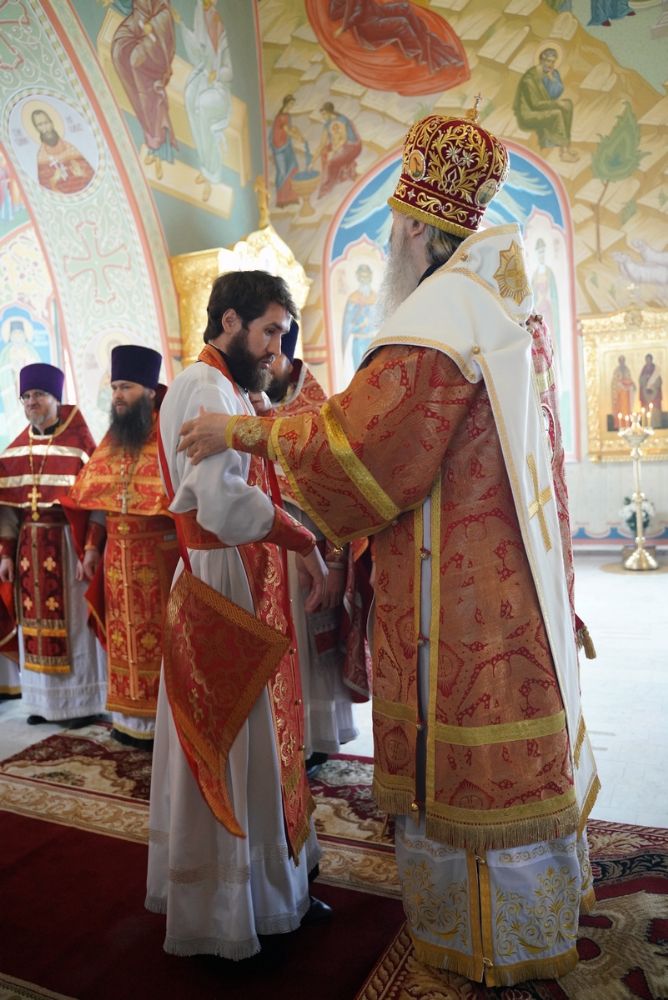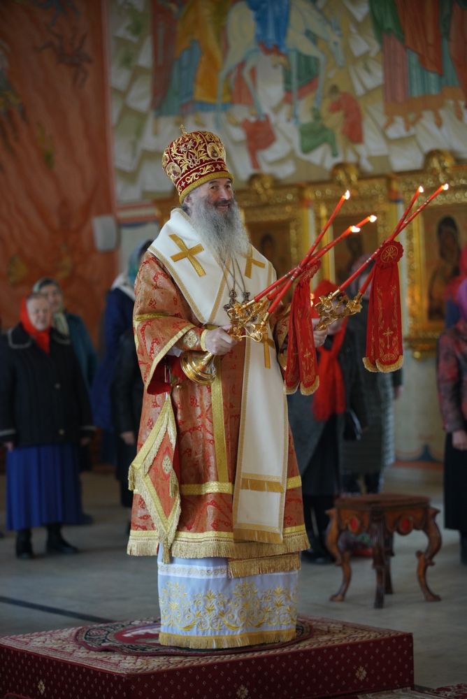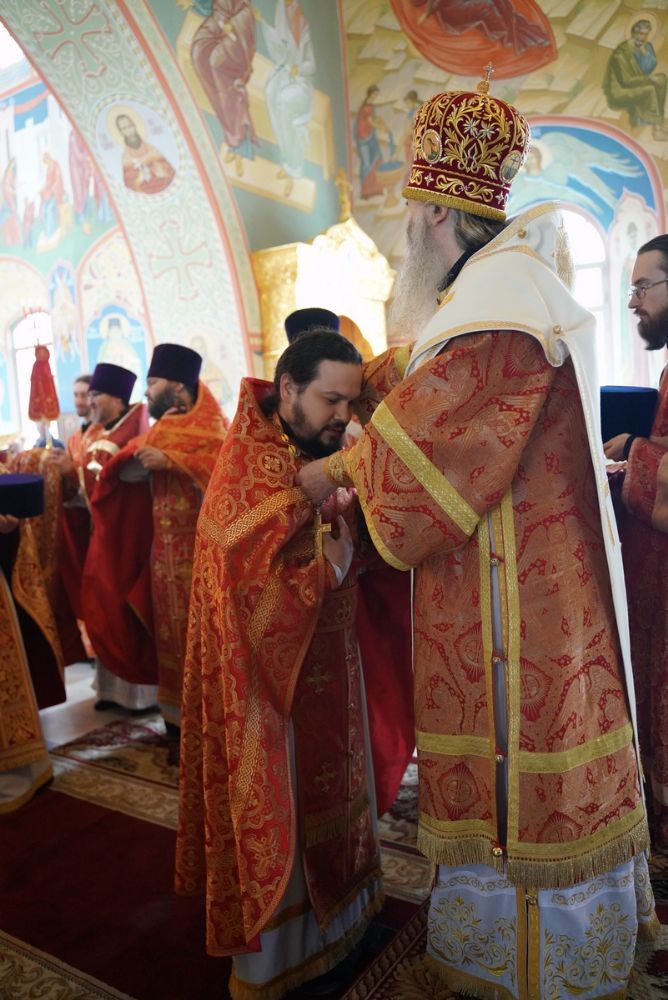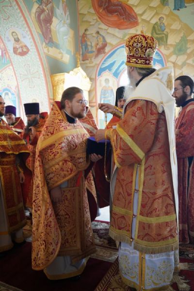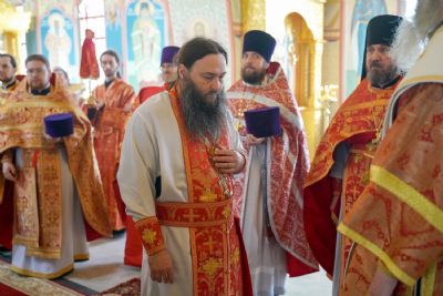 На малом входе митрополит Иоанн вручил богослужебно-иерархические награды: права ношения палицы удостоены настоятель Сретенского храма с. Кучка протоиерей Алексий Вязов и настоятель Никольского храма с. Сурок иерей Николай Киселев; права ношения наперсного креста золотого цвета – клирик Благовещенского кафедрального собора иерей Никифор Захаров и настоятель Сретенского храма с. Азаново иерей Артемий Промович; права ношения камилавки – клирик Илиинского храма с. Килемары иерей Димитрий Васенев; набедренника – клирик храма Державной иконы Божией Матери п. Медведево иерей Сергий Пуртов и клирик Благовещенского кафедрального собора иерей Иоанн Милютин.