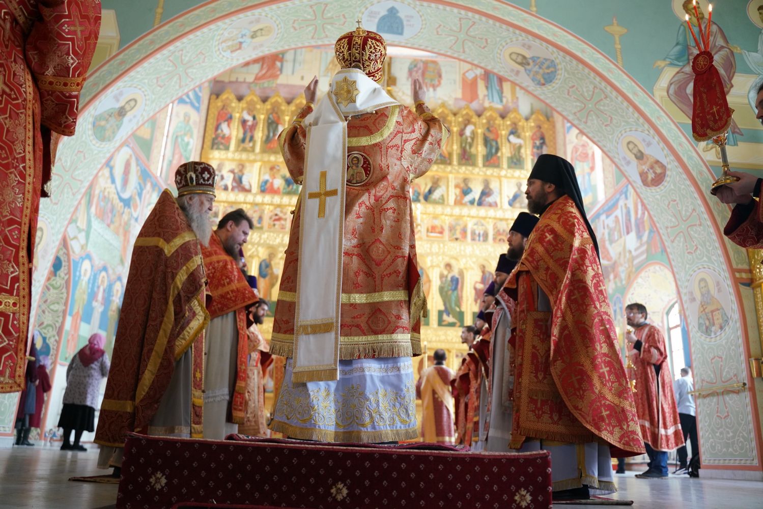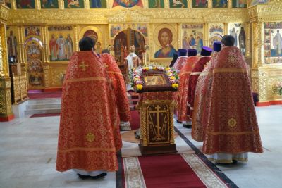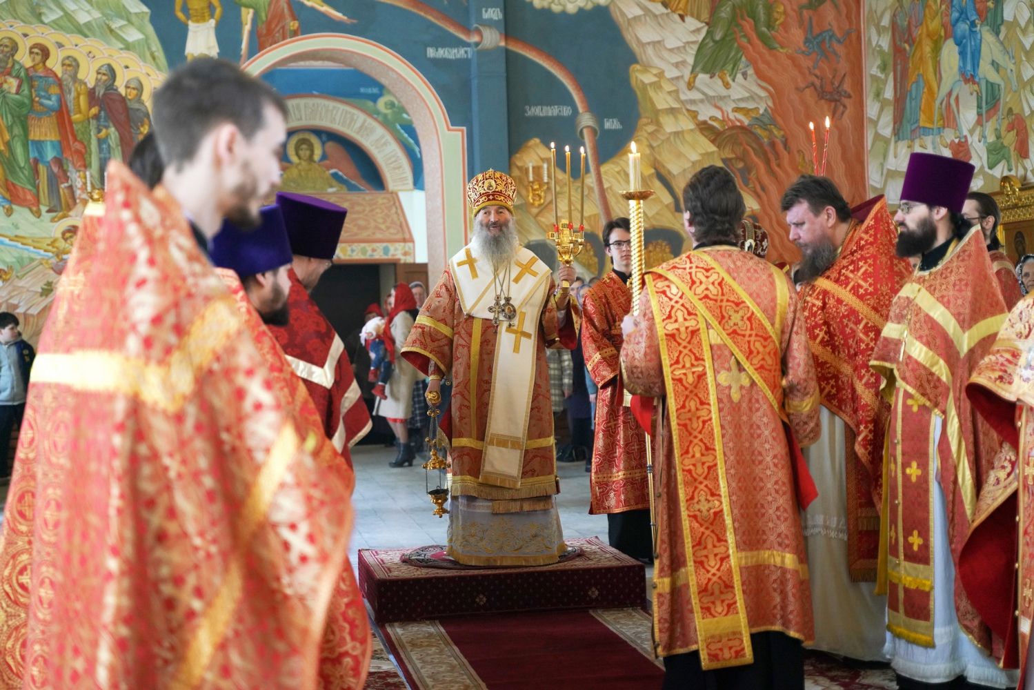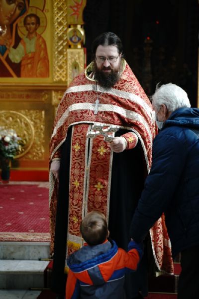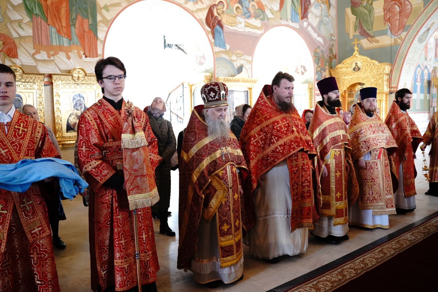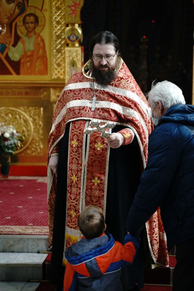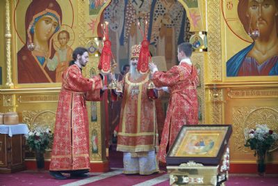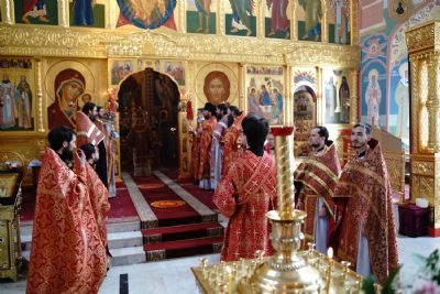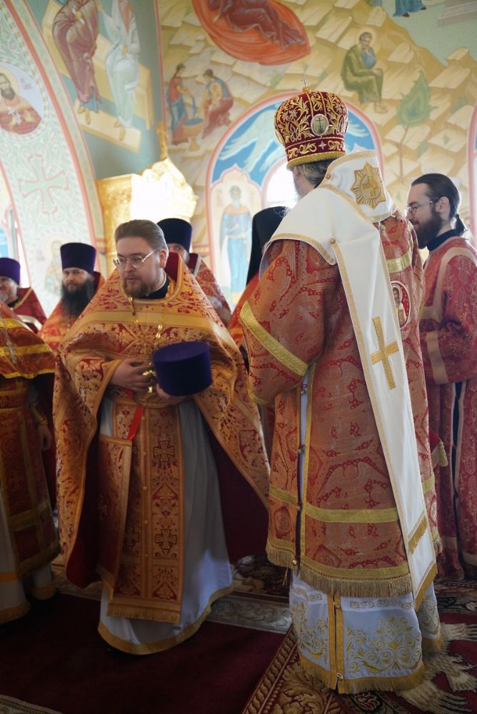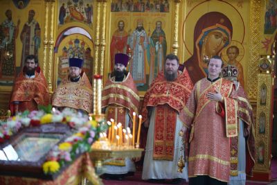 Его Высокопреосвященству сослужили секретарь Епархиального управления иеромонах Серафим (Пасанаев), настоятель храма митрофорный протоиерей Евгений Кутырев, благочинный Йошкар-Олинского церковного округа протоиерей Андрей Норкин, и духовенство Йошкар-Олинской епархии. Песнопения исполнял хор храма под управлением регента Анны Ярошевич.