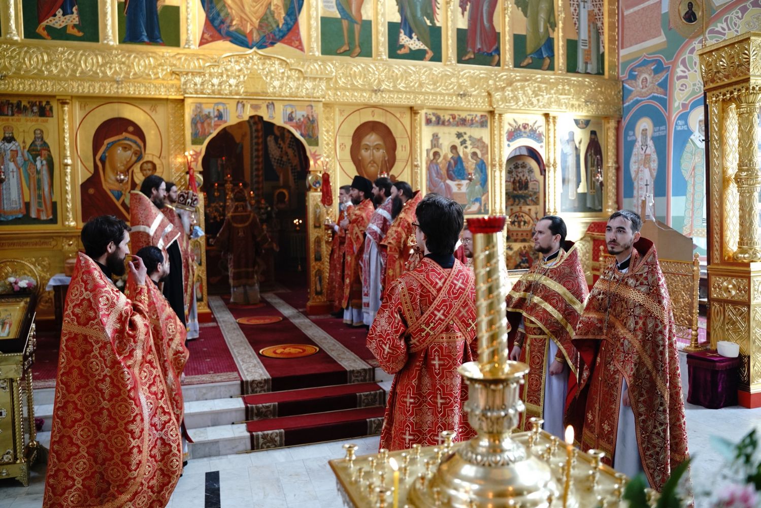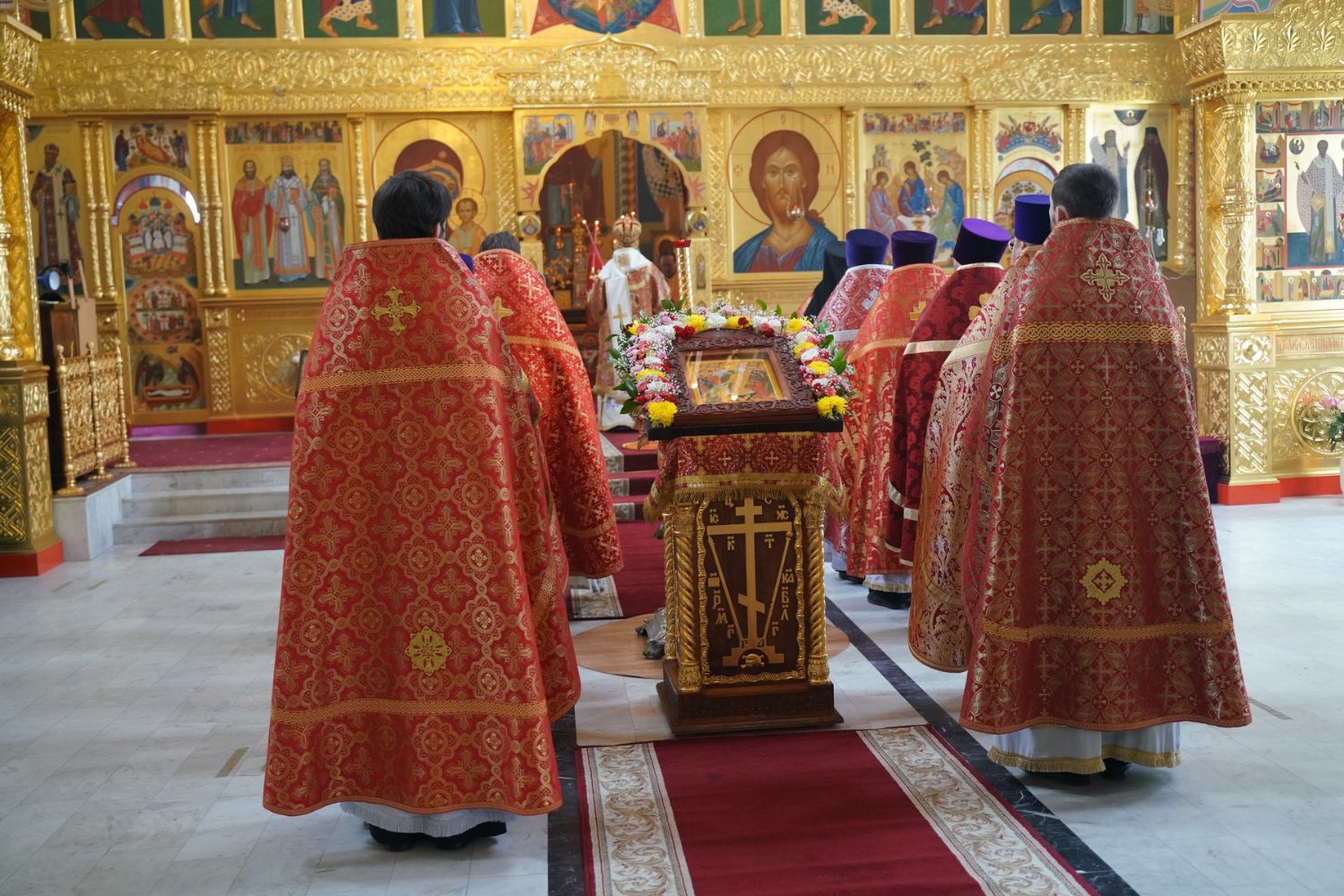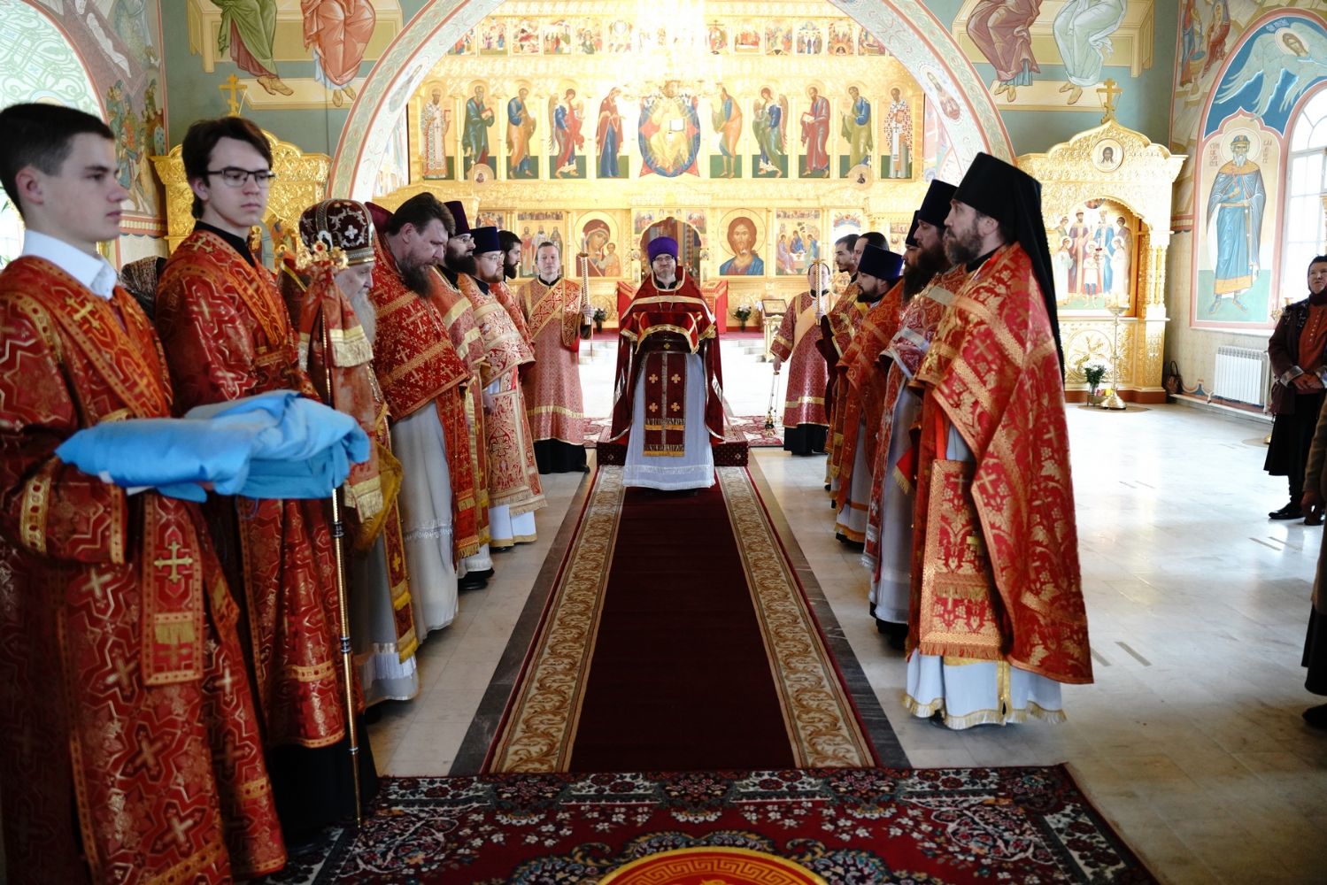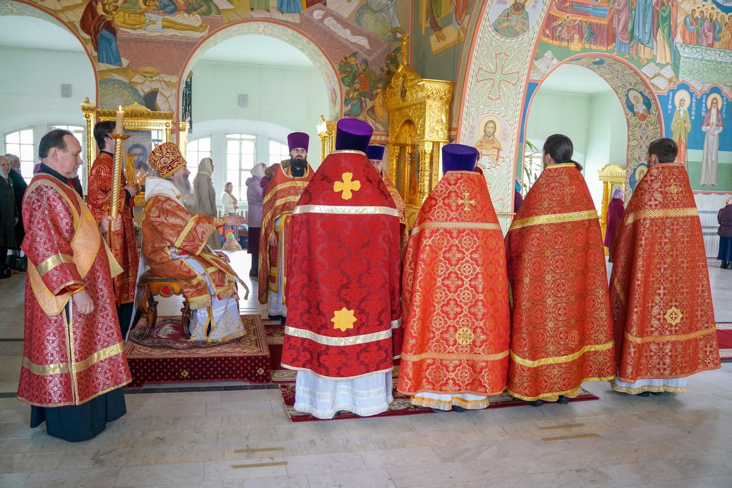 Его Высокопреосвященству сослужили секретарь Епархиального управления иеромонах Серафим (Пасанаев), настоятель храма митрофорный протоиерей Евгений Кутырев, благочинный Йошкар-Олинского церковного округа протоиерей Андрей Норкин, и духовенство Йошкар-Олинской епархии. Песнопения исполнял хор храма под управлением регента Анны Ярошевич.