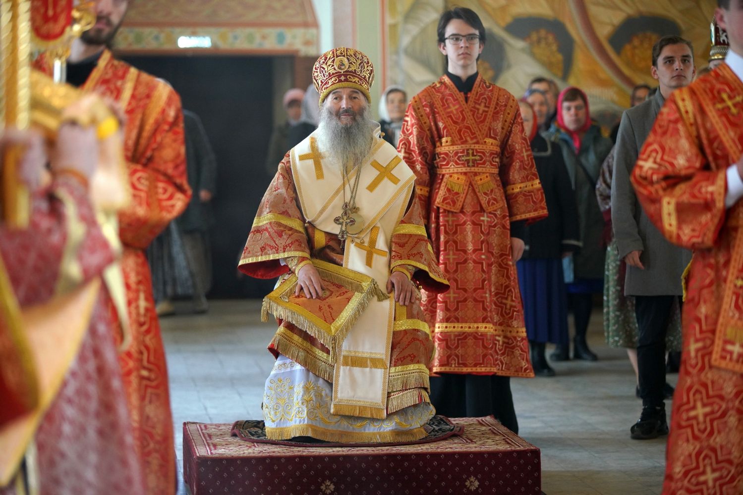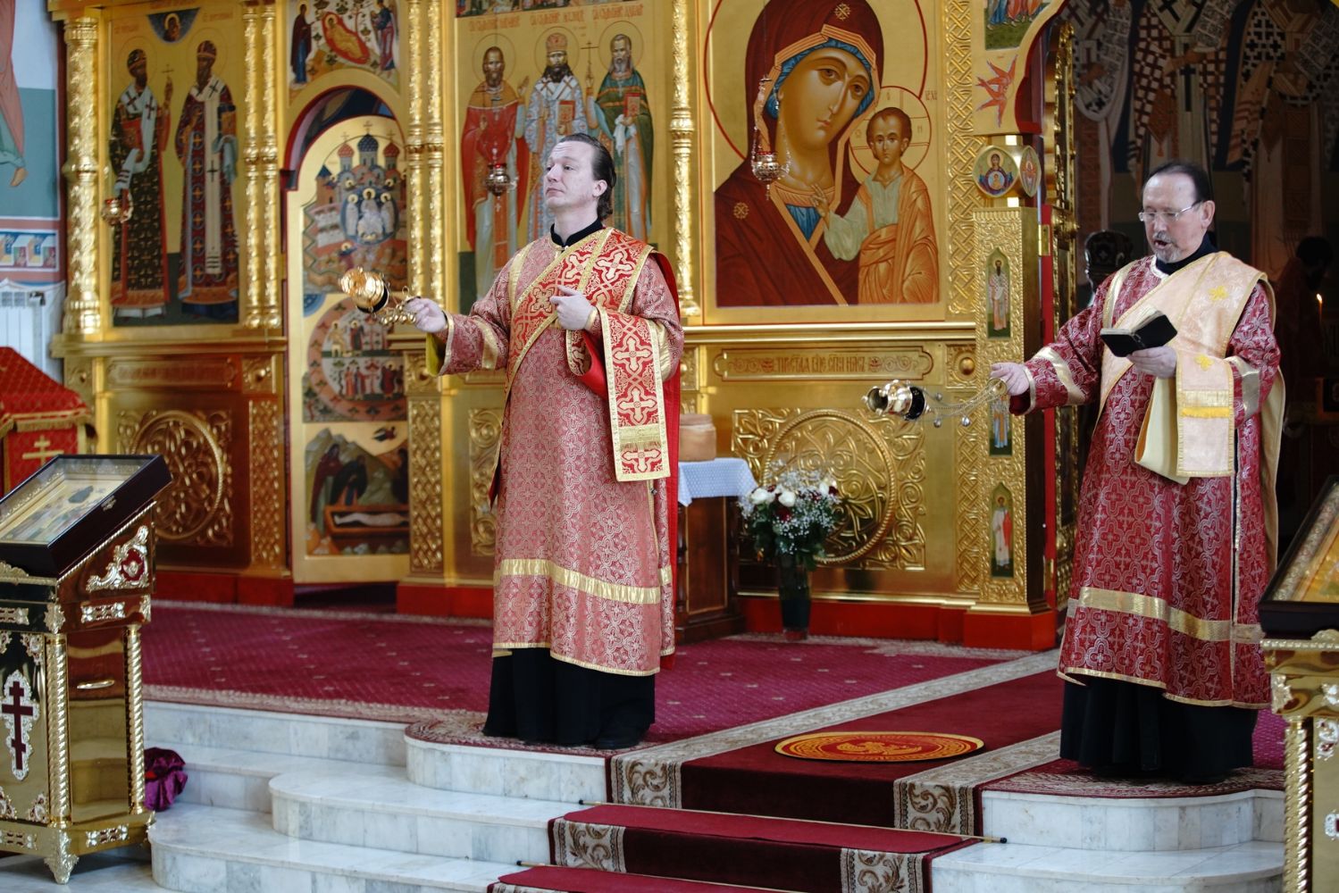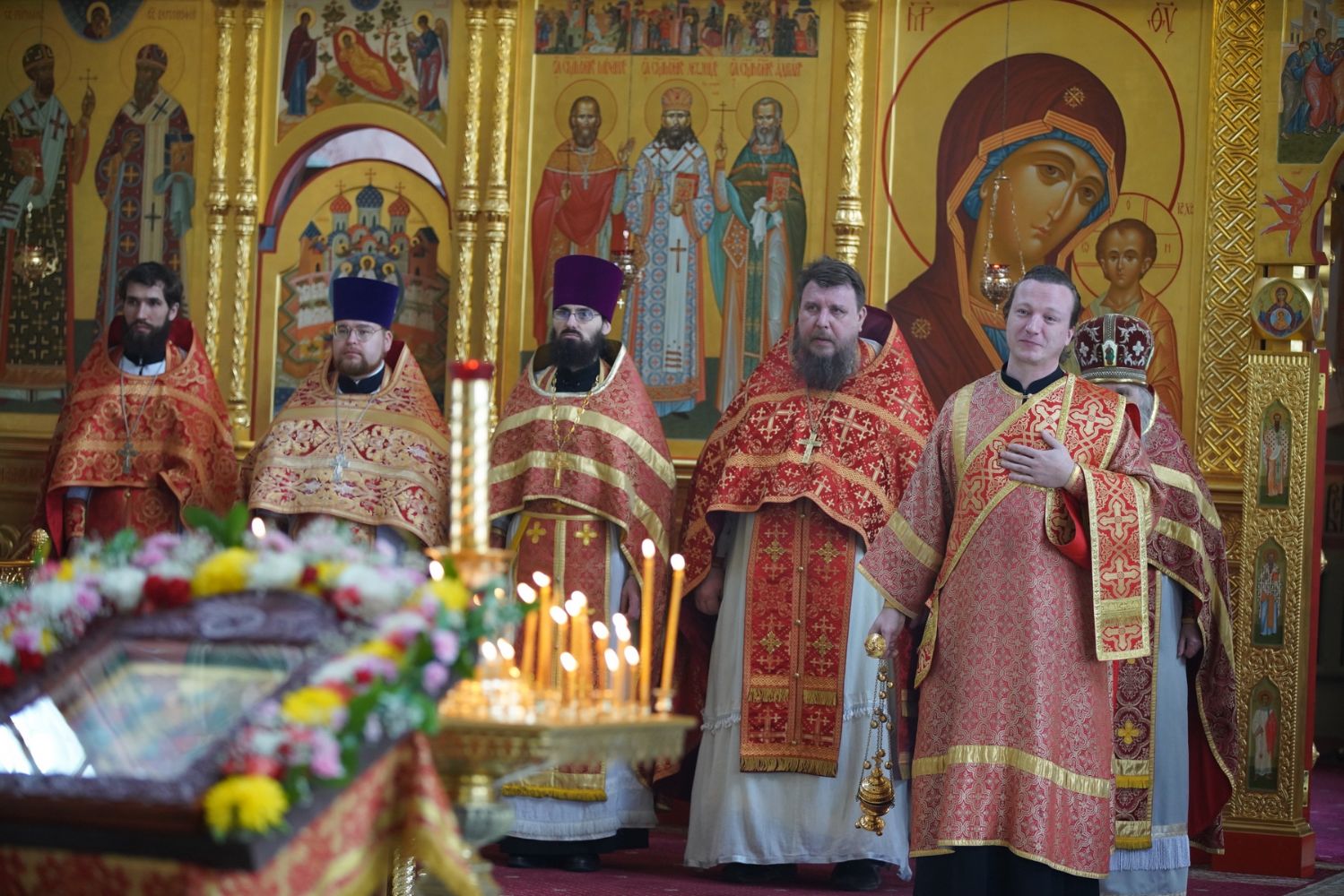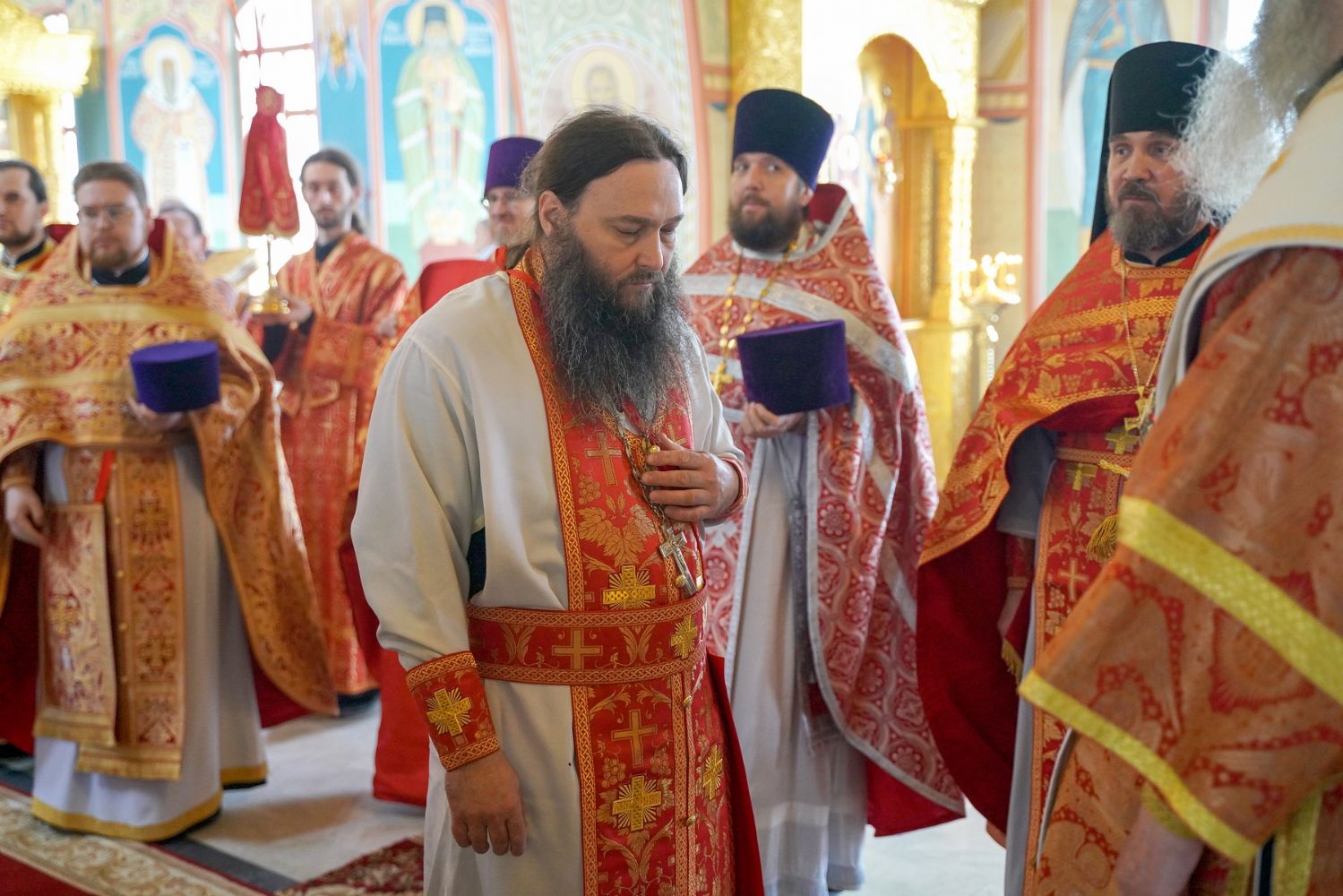 Его Высокопреосвященству сослужили секретарь Епархиального управления иеромонах Серафим (Пасанаев), настоятель храма митрофорный протоиерей Евгений Кутырев, благочинный Йошкар-Олинского церковного округа протоиерей Андрей Норкин, и духовенство Йошкар-Олинской епархии. Песнопения исполнял хор храма под управлением регента Анны Ярошевич.