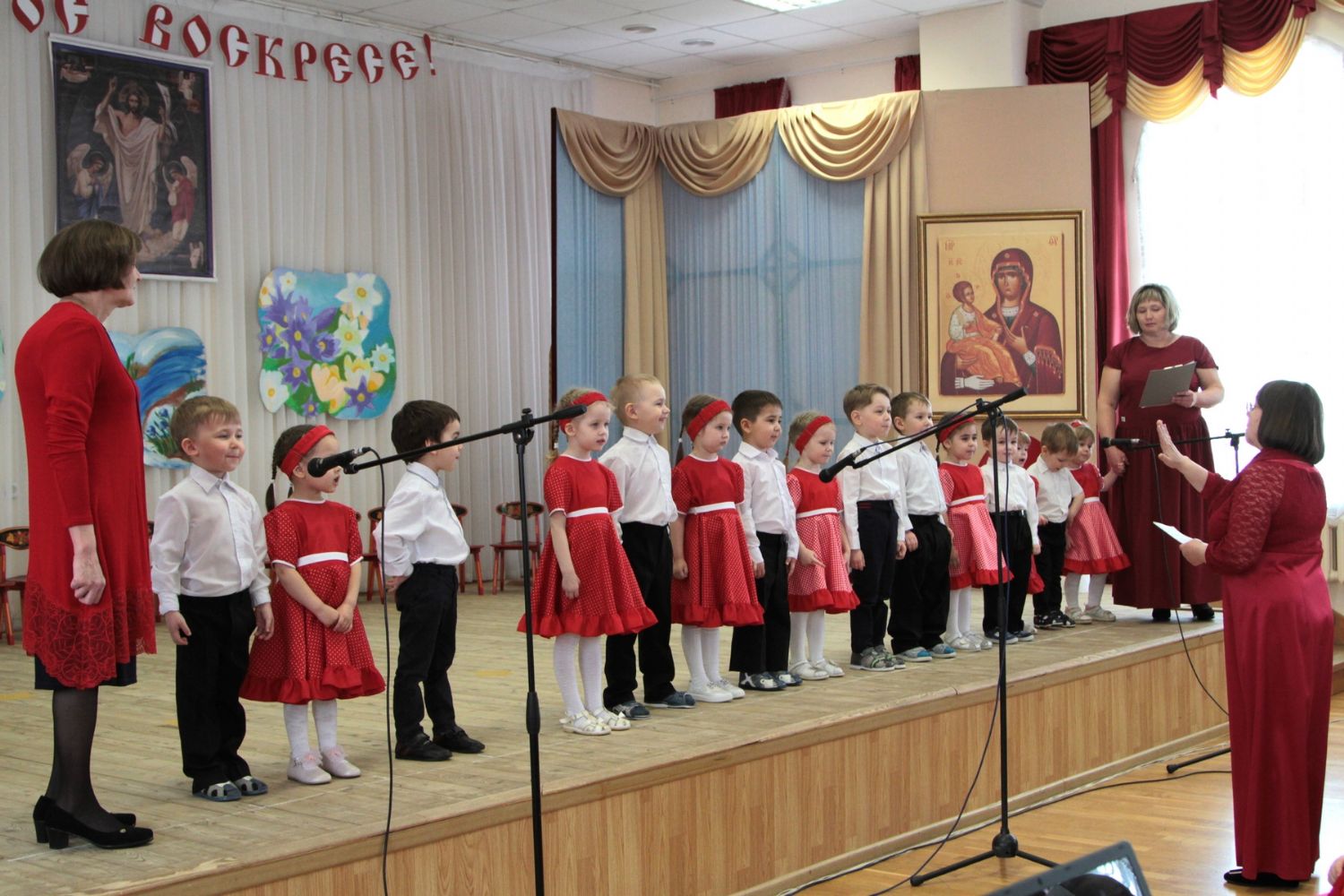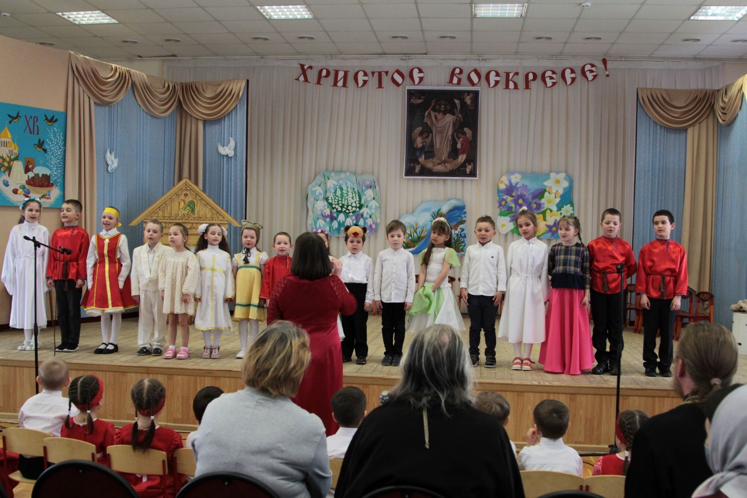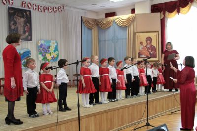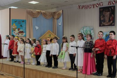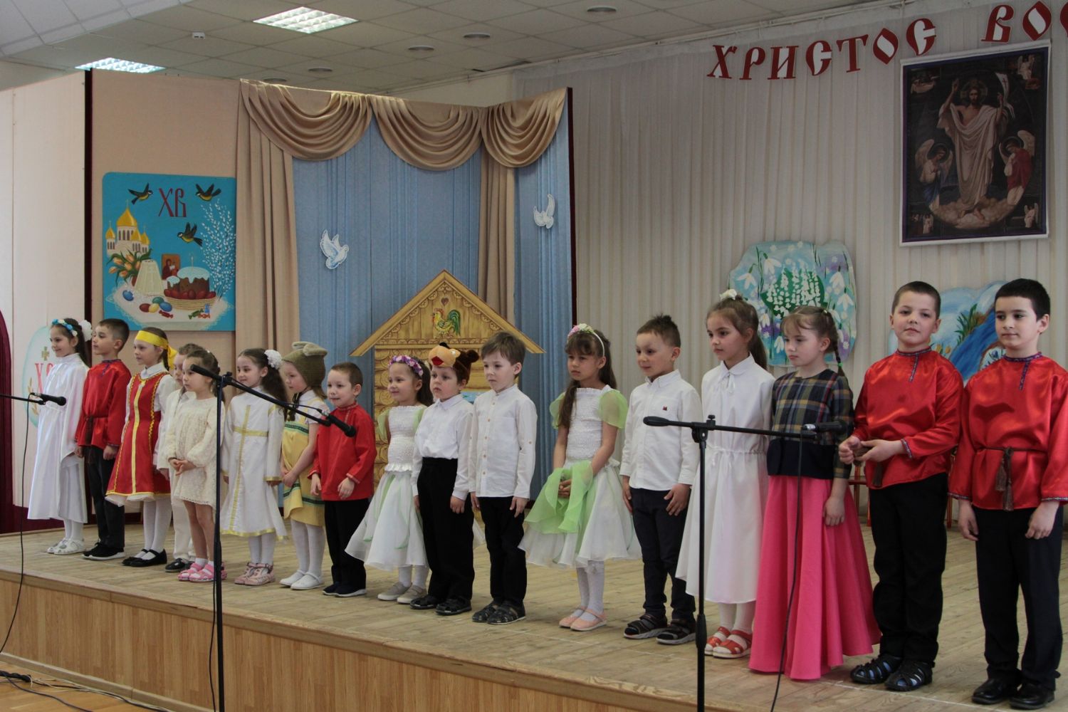 Концерт открылся выступлением младшей группы – дети подготовили пасхальные песни и стихи. Ребята постарше показали праздничную сценку, выступили с танцами и песнями, прославляя Воскресшего Христа. В зале царила теплая семейная атмосфера, через свои искренние выступления дети смогли передать радостное настроение и взрослым.