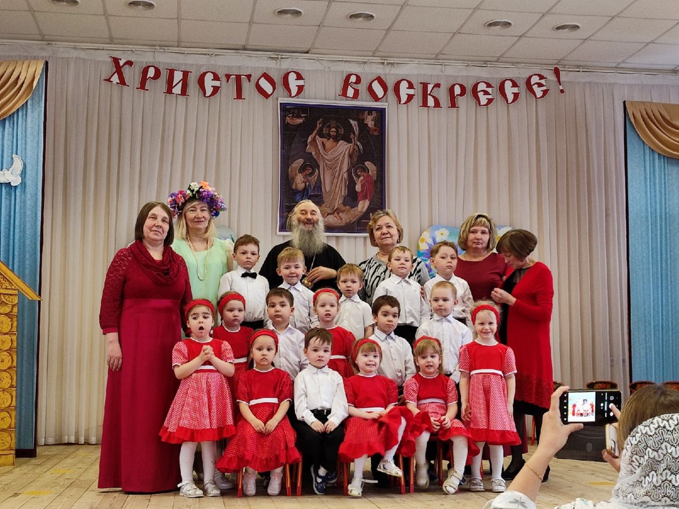 Разделить радость пасхального торжества в этот день пришли родители и родственники детей. Почетными гостями праздника стали митрополит Йошкар-Олинский и Марийский Иоанн и духовник детского сада протоиерей Сергий Поглазов.
