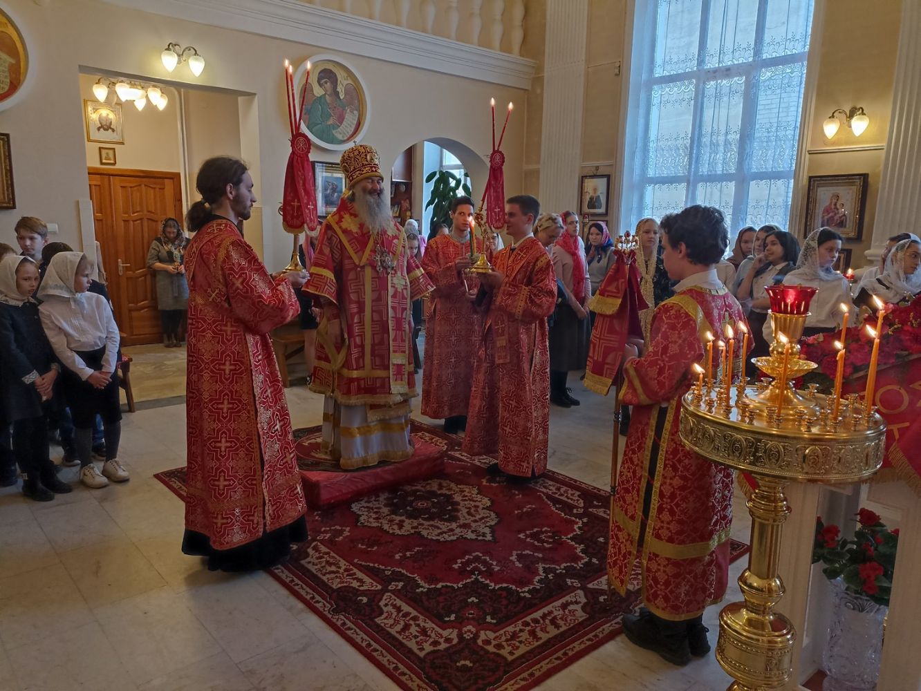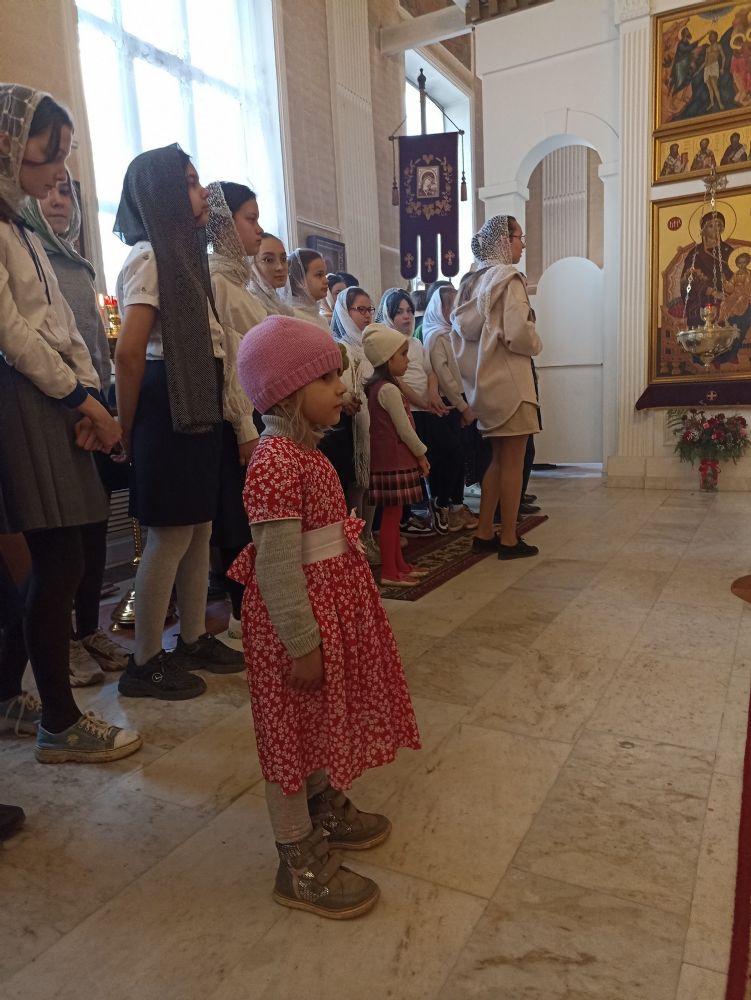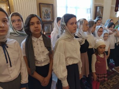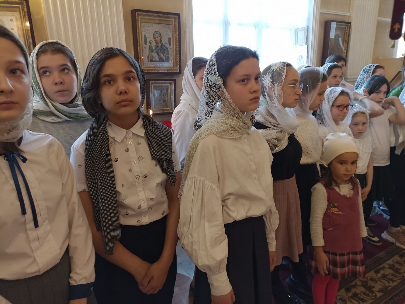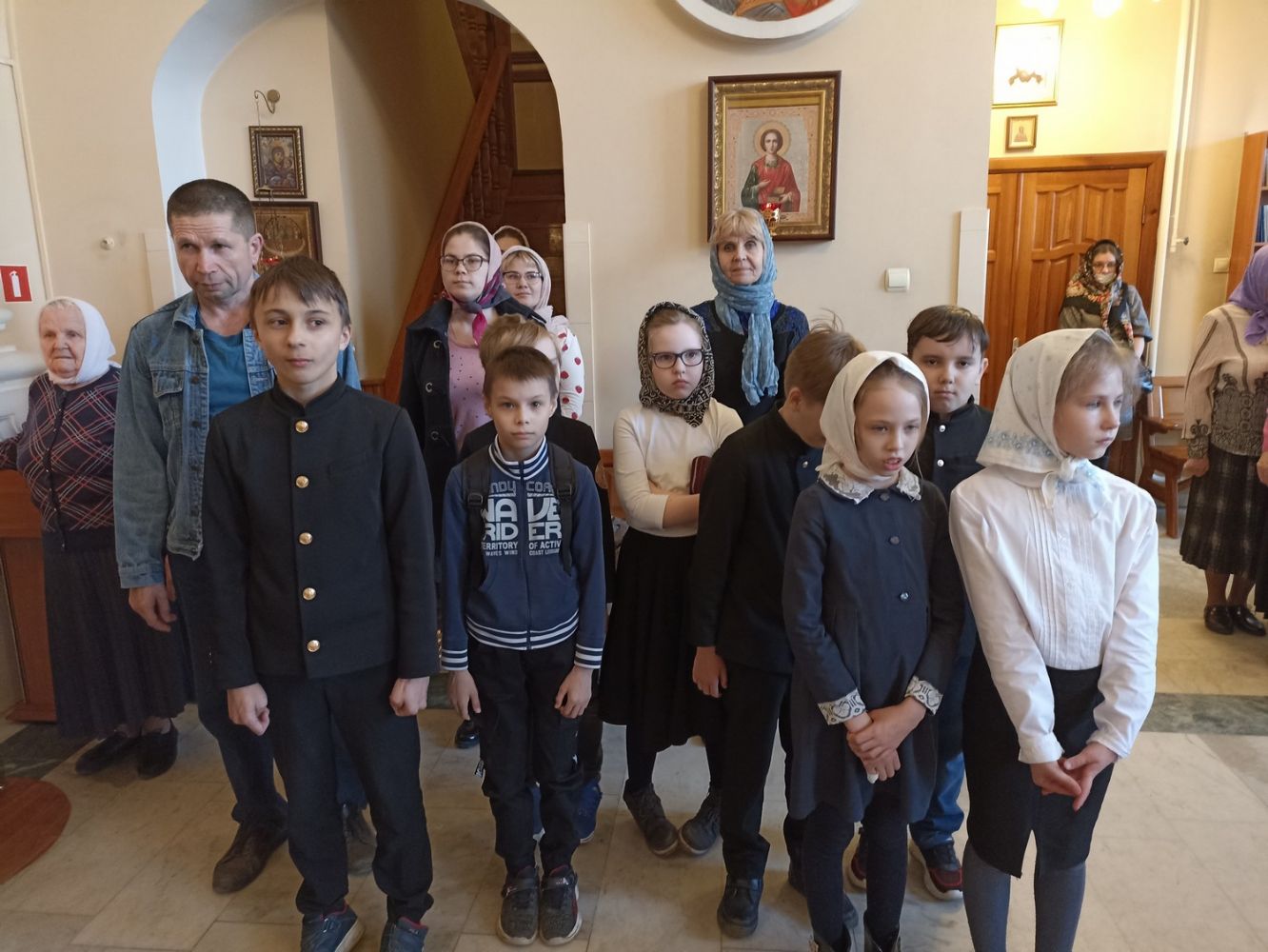 За богослужением, помимо постоянных прихожан, молились учащиеся и педагоги православной гимназии им. Сергия Радонежского.