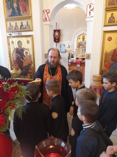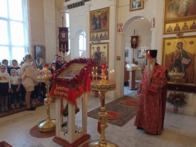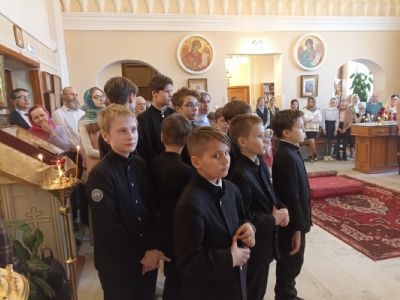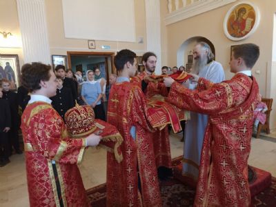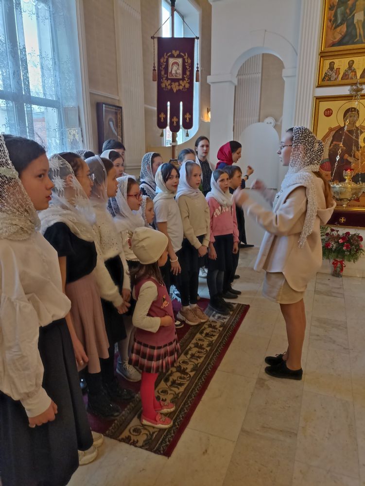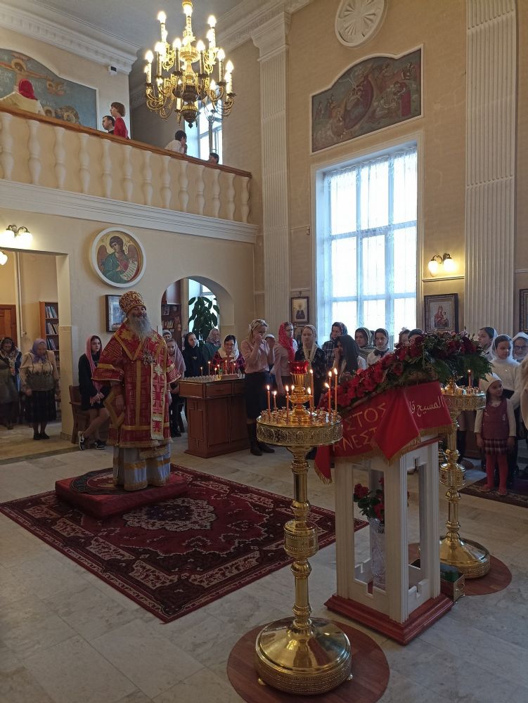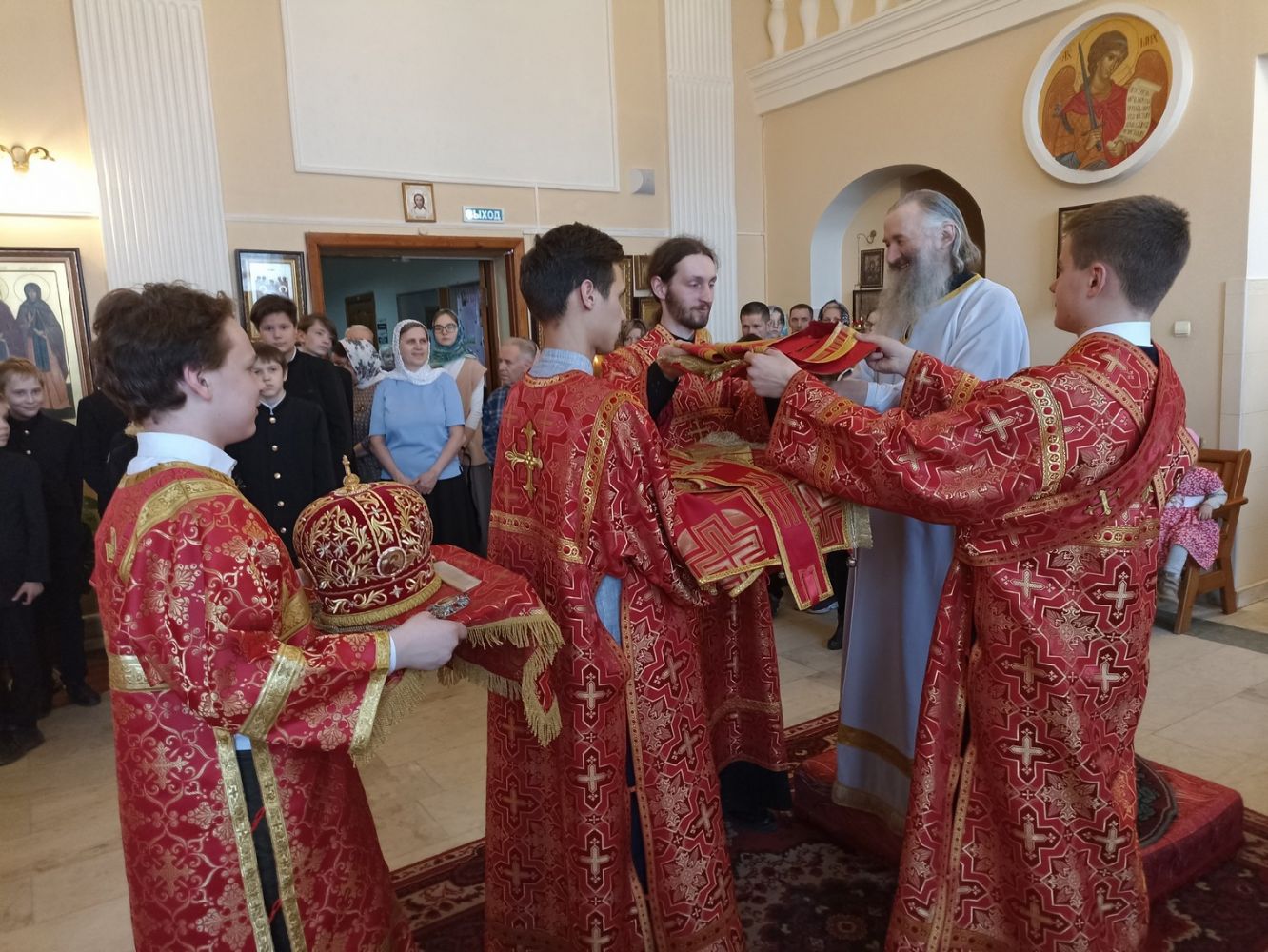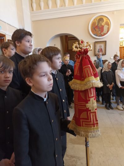 За богослужением, помимо постоянных прихожан, молились учащиеся и педагоги православной гимназии им. Сергия Радонежского.