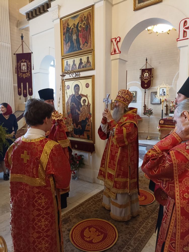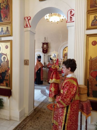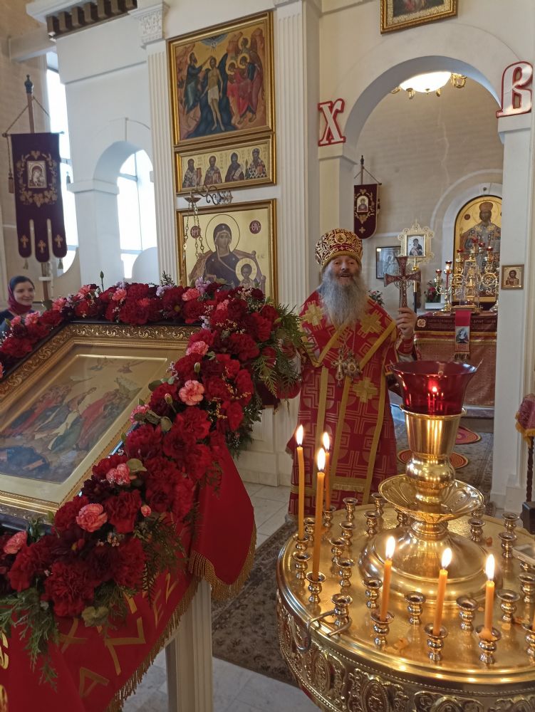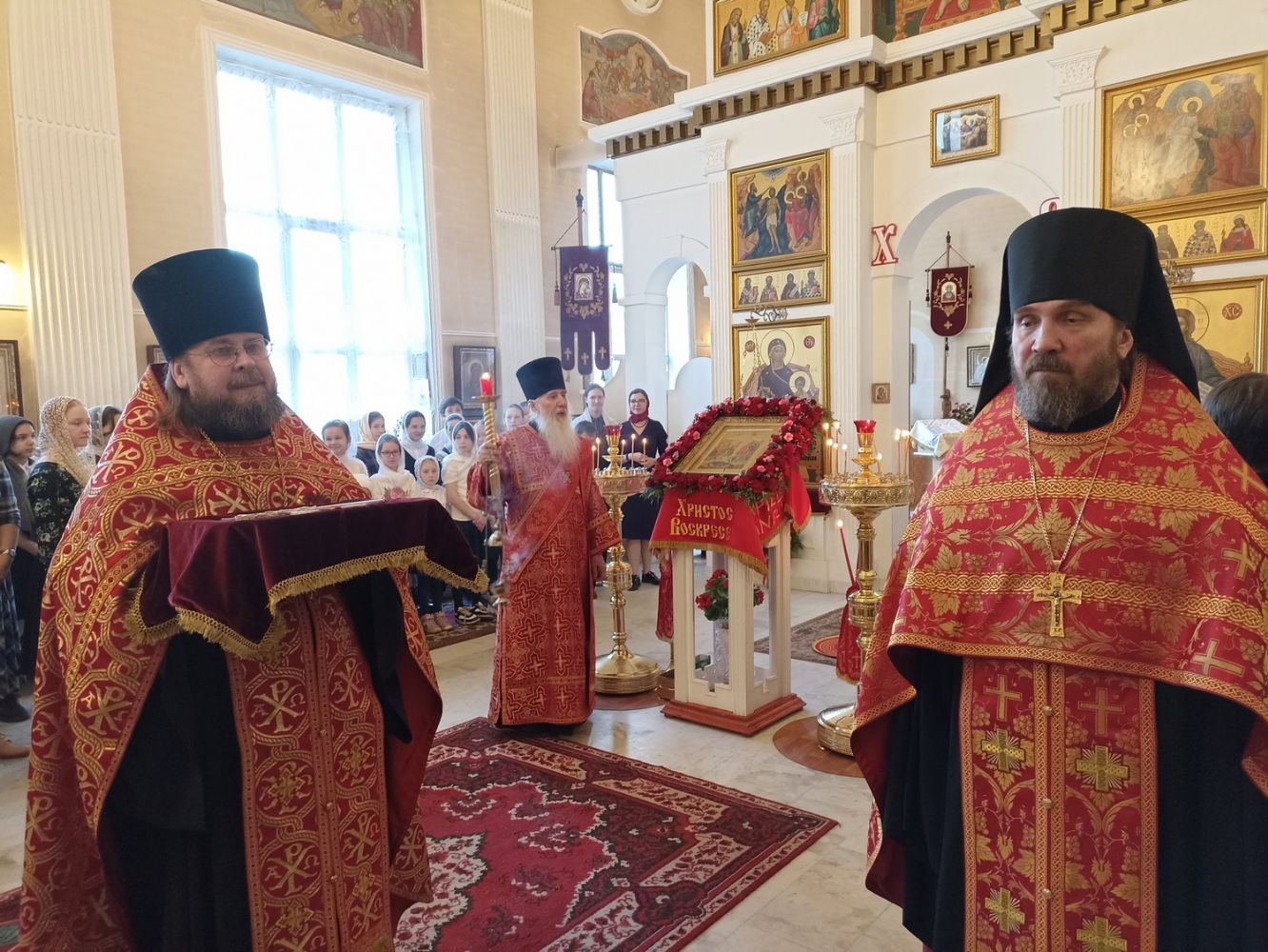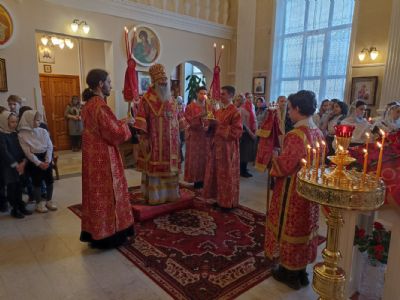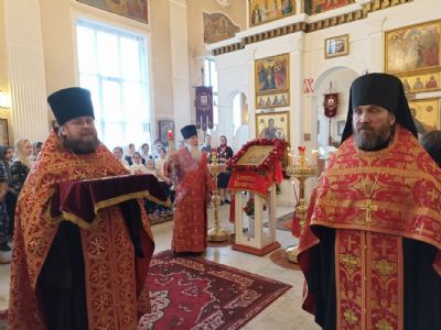Архипастырю сослужили секретарь Йошкар-Олинского епархиального управления иеромонах Серафим (Пасанаев), настоятель храма протоиерей Евгений Сурков и протодиакон Михаил Козловский. Песнопения исполняли старший и младший составы храмового хора под управлением регентов Аллы Симаковой и Ольги Шевчук.