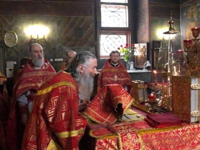 Его Высокопреосвященству сослужили настоятель храма протоиерей Сергий Филонов, клирики храма и протодиакон Михаил Козловский. Песнопения исполнял хор храма под руководством регента Анастасии Филоновой.