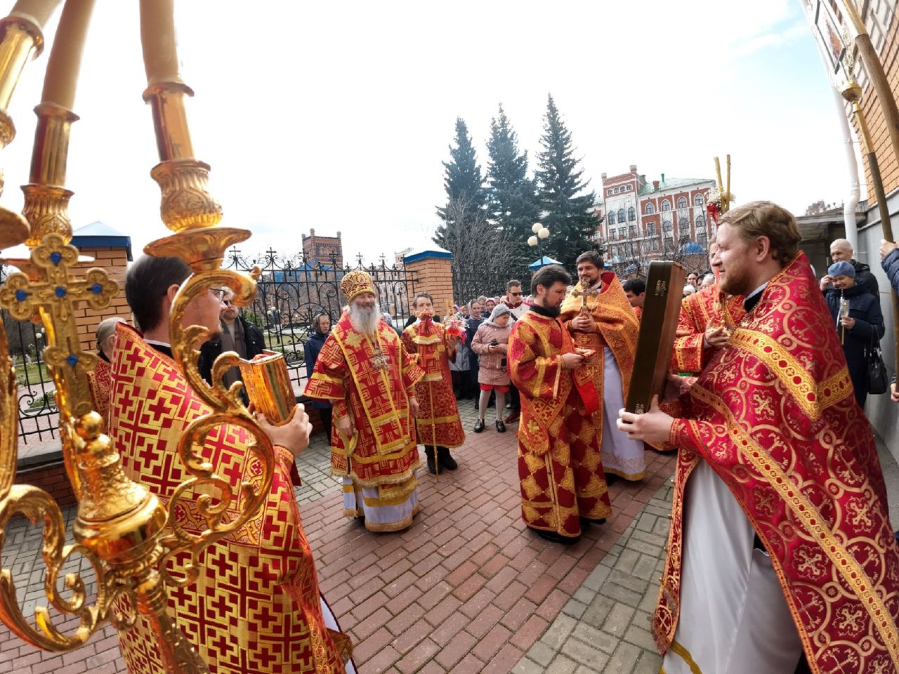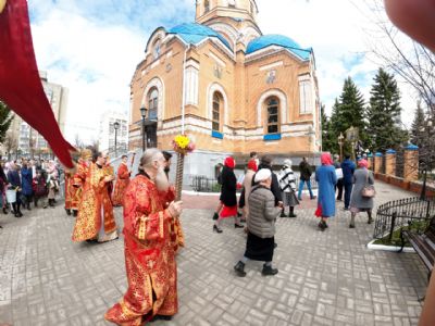 После Литургии был совершен крестный ход вокруг храма со чтением Евангелия и кроплением святой водой. Затем владыка прочитал молитву на раздробление артоса и обратился к верующим с архипастырским словом: «Христос Воскресе! Неумолкаемо вся седмица исполнялась этим великим благовестом, наполняющим каждого радостью и ликованием о Воскресшем Христе. И мы, приходя в храмы Божии, не только ощущаем Его присутствие, но и соединяемся с Ним в таинстве Святого Причащения.