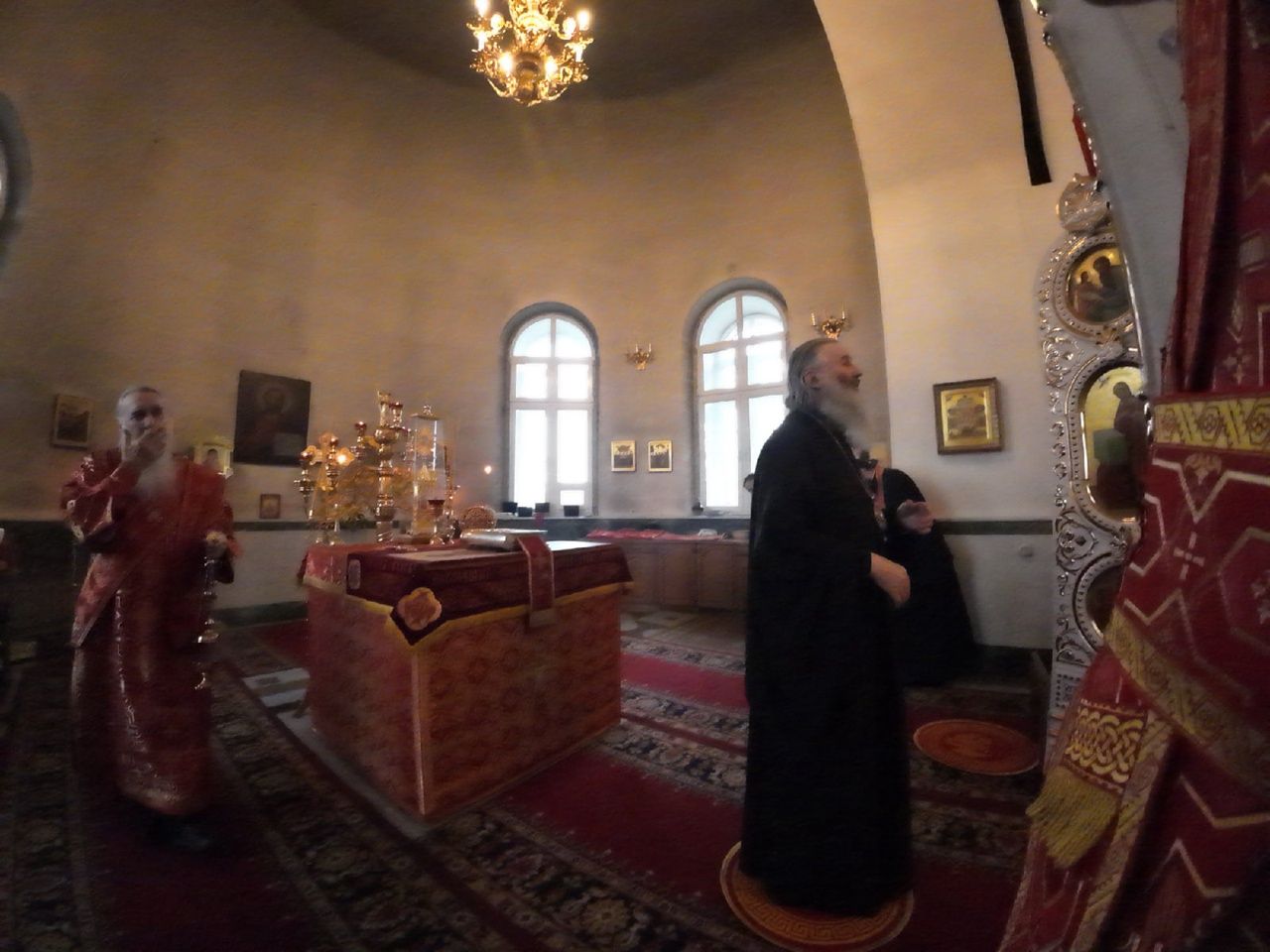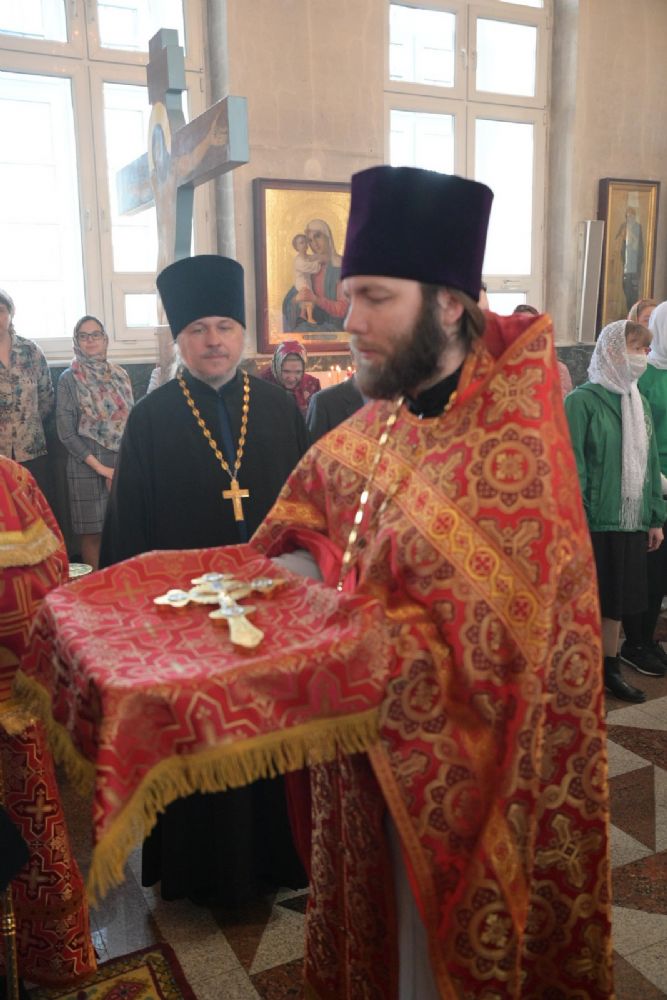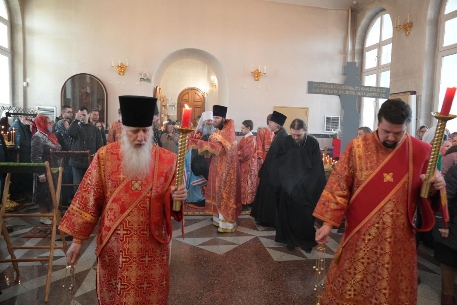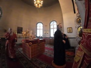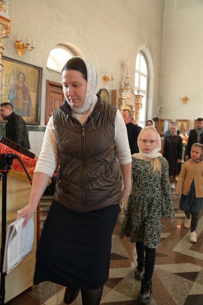 Его Высокопреосвященству сослужили секретарь Йошкар-Олинского епархиального управления иеромонах Серафим (Пасанаев), настоятель собора иерей Алексий Кирюшкин, клирики собора и протодиакон Михаил Козловский. Песнопения исполнял хор собора под руководством регента Алисы Вылегжаниной.