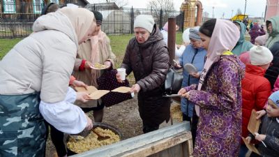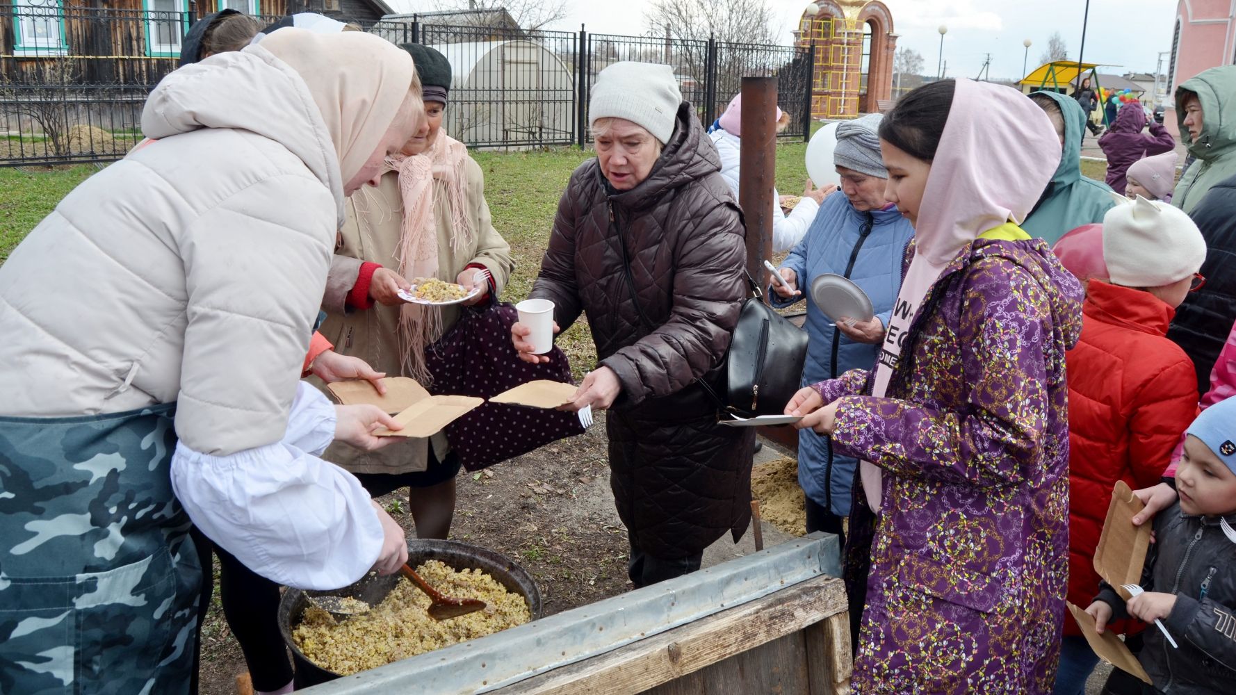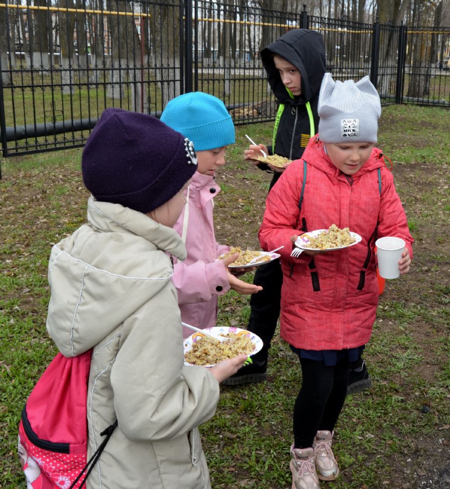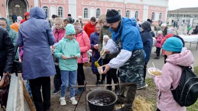 После концертной части на территории храма по традиции всех ждала общая трапеза. В меню – каша, сваренная на костре, чай со сладостями. Желающие смогли поучаствовать в играх и конкурсах, организованных работниками клубной системы района.