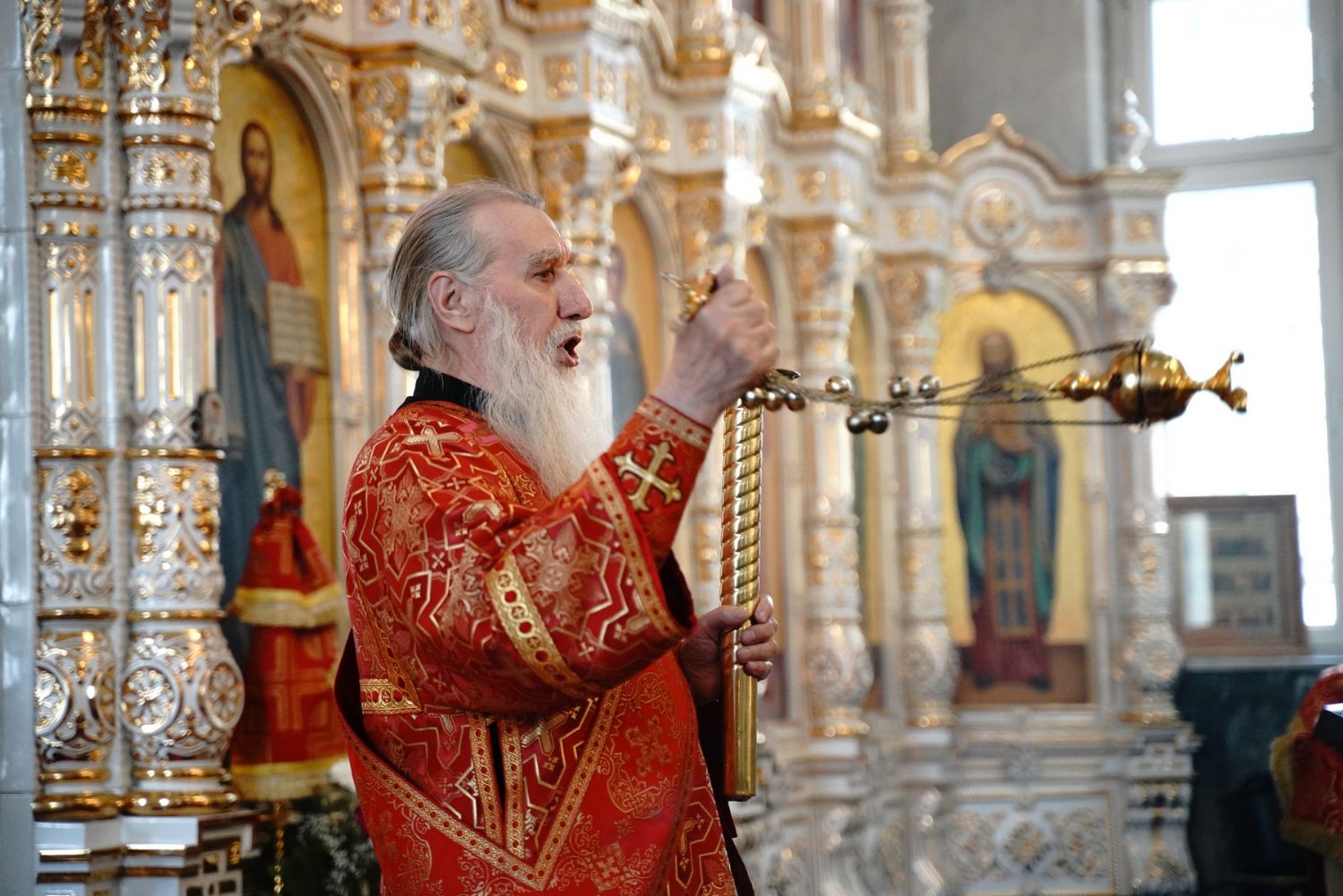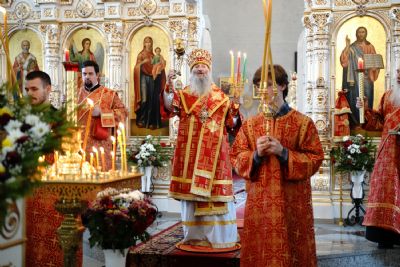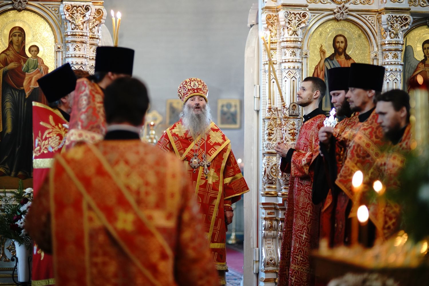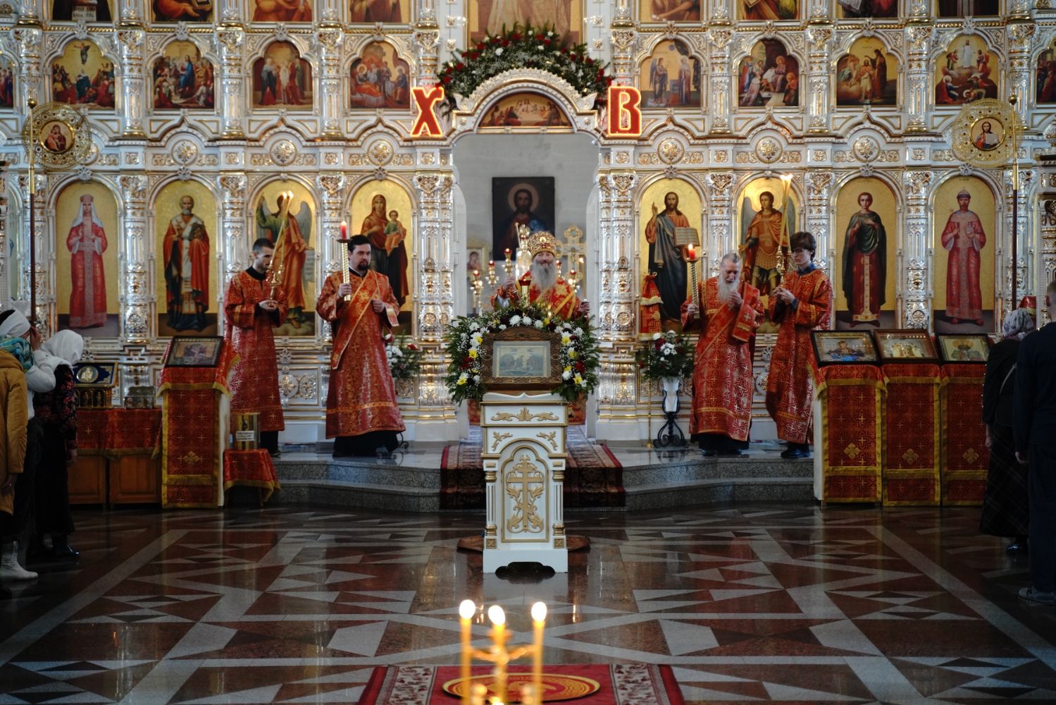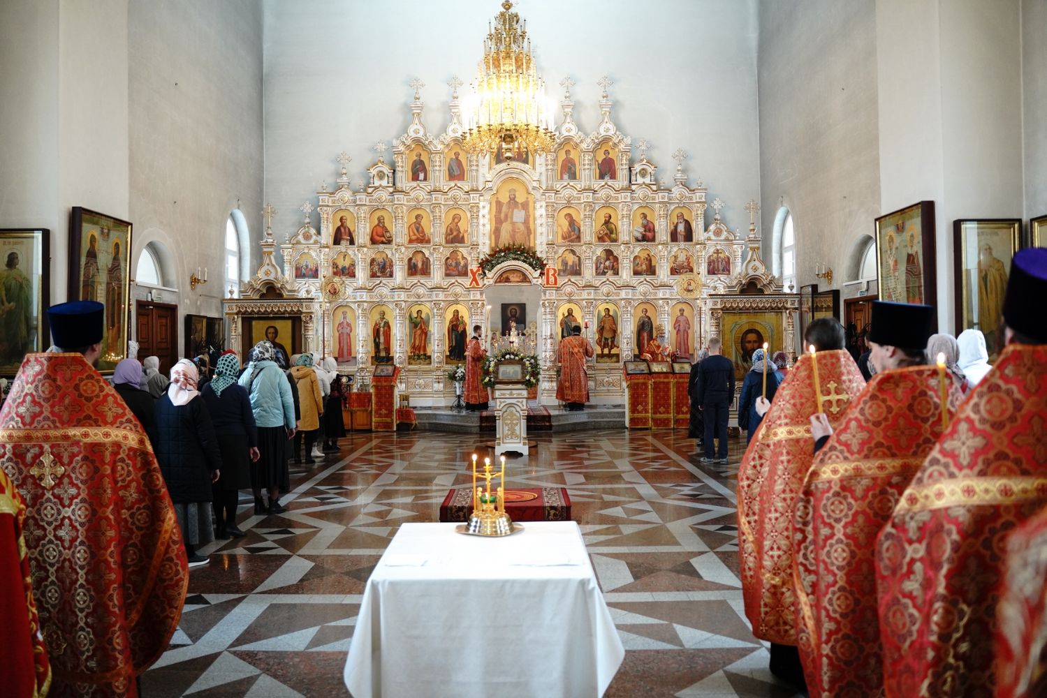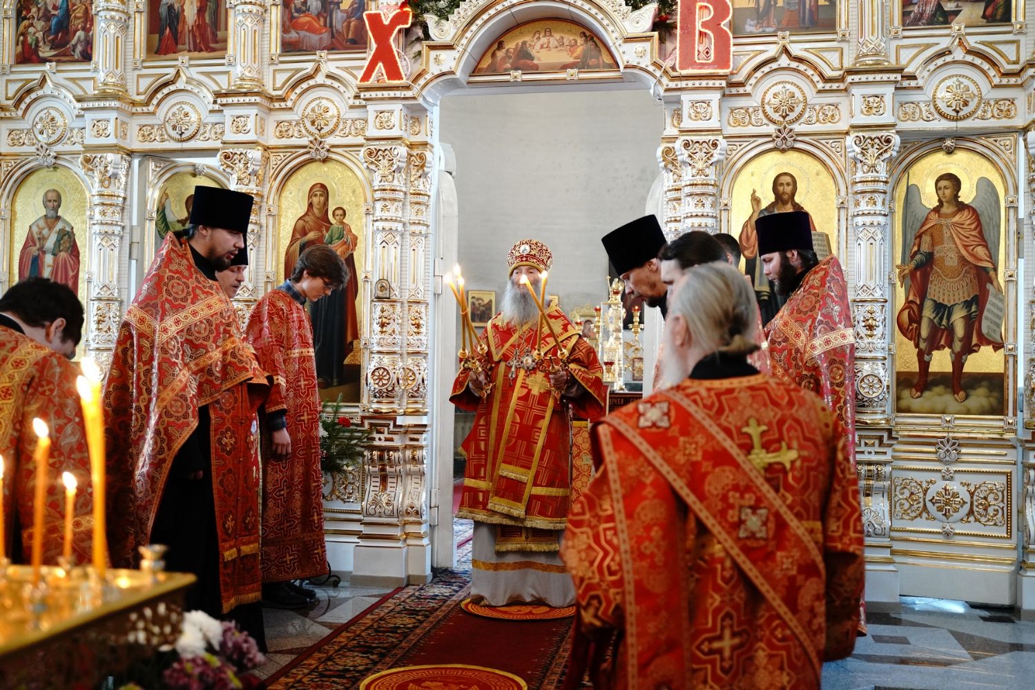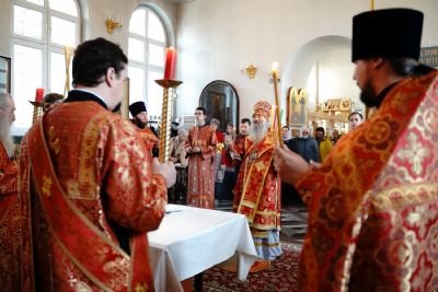 Архипастырю сослужили настоятель собора иерей Алексий Кирюшкин, клирики собора и протодиакон Михаил Козловский. Песнопения исполнял хор собора под управлением Алисы Вылегжаниной. За богослужением звучали в том числе пасхальные песнопения.