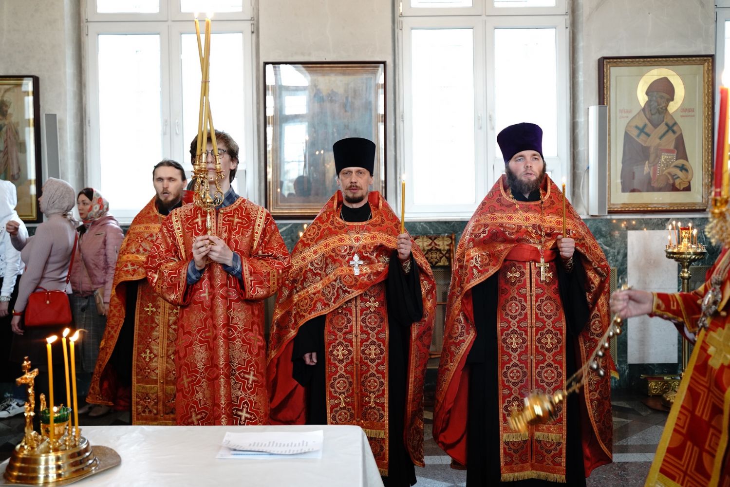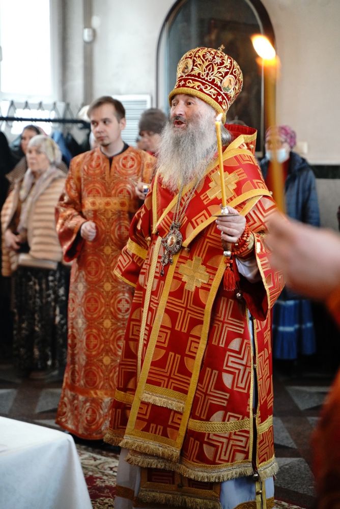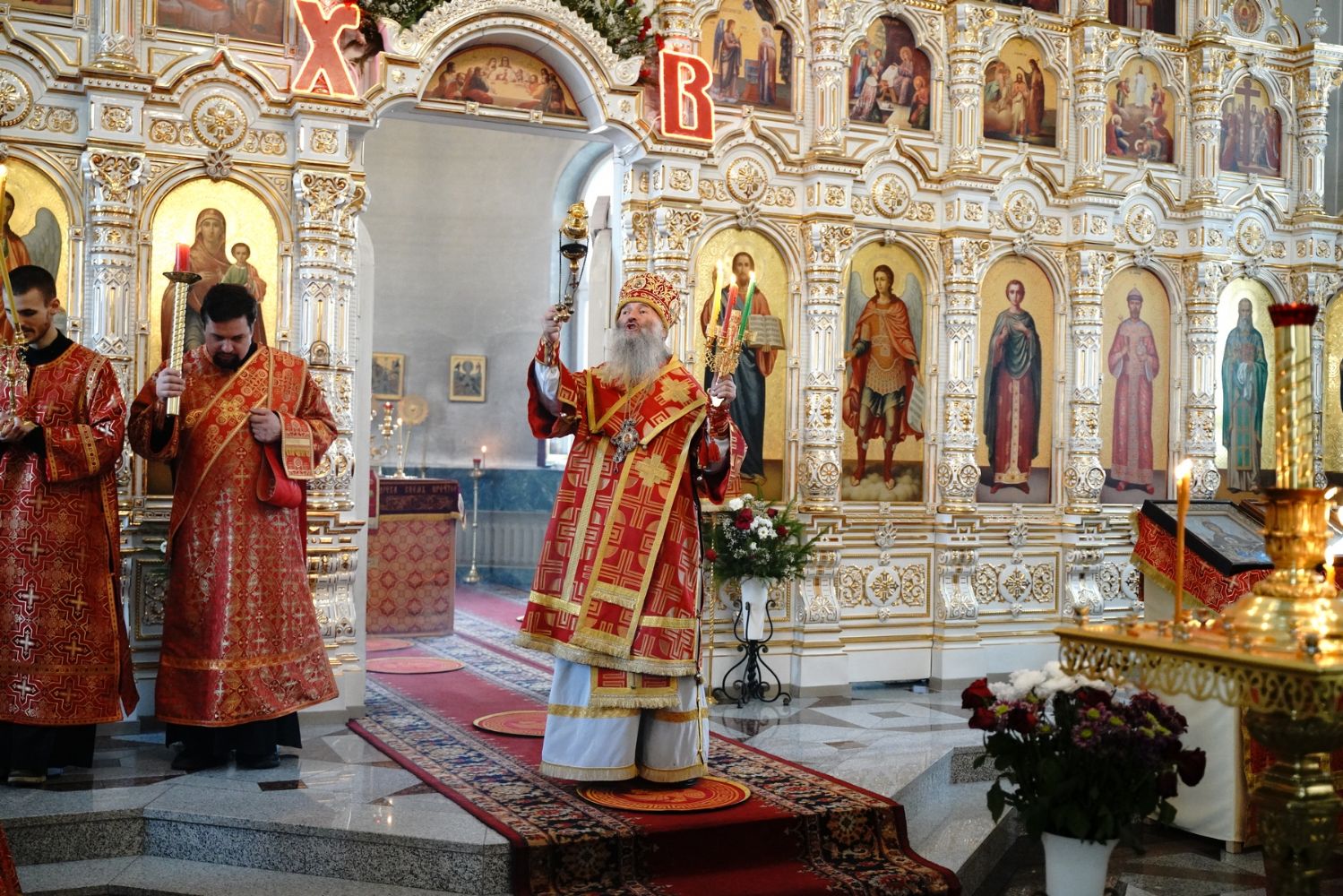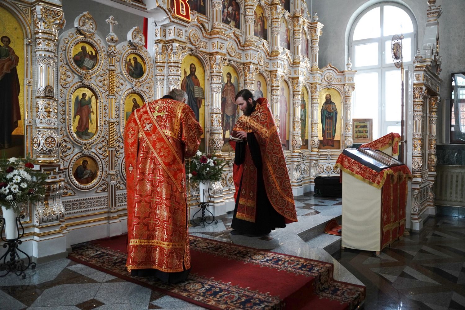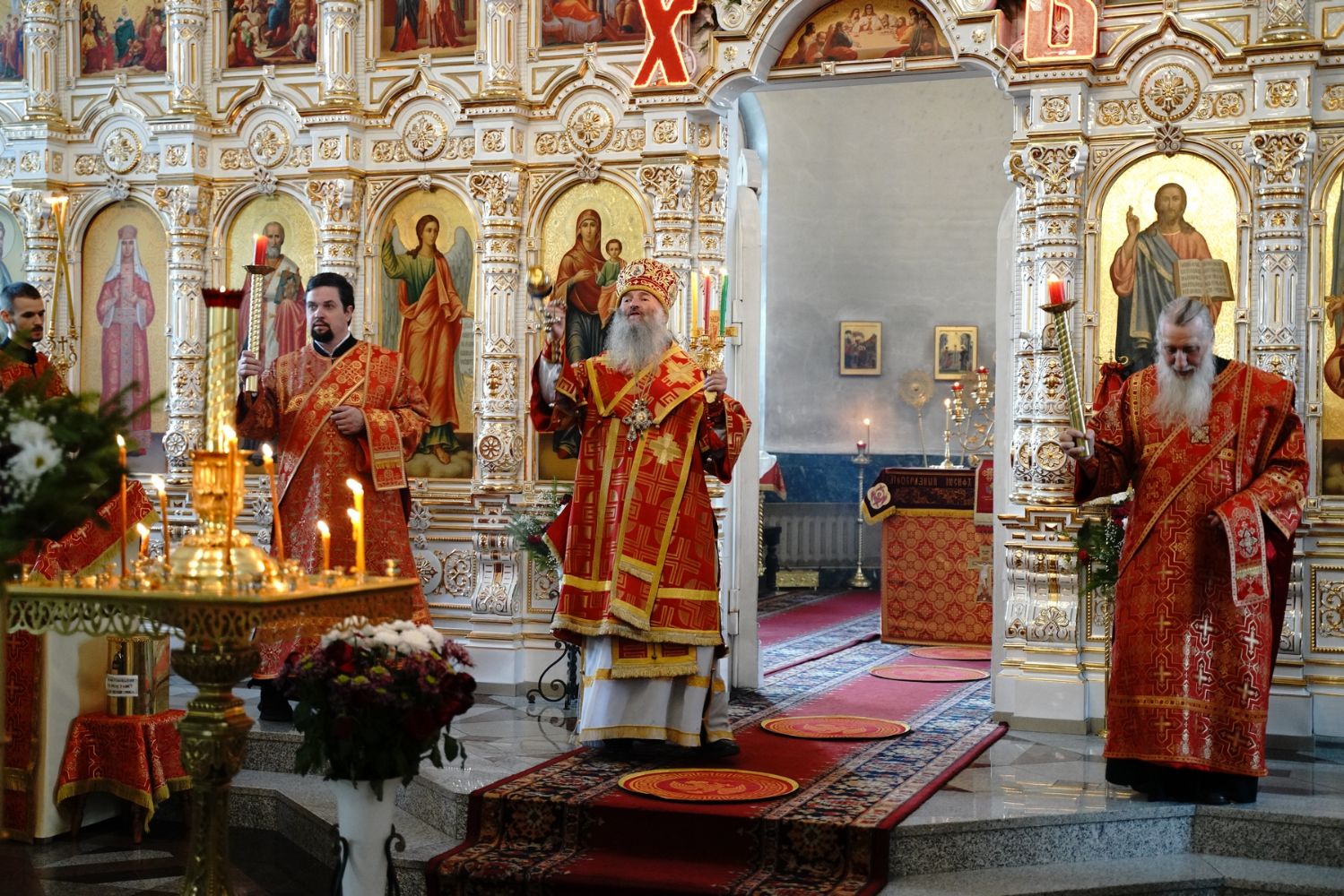 Архипастырю сослужили настоятель собора иерей Алексий Кирюшкин, клирики собора и протодиакон Михаил Козловский. Песнопения исполнял хор собора под управлением Алисы Вылегжаниной. За богослужением звучали в том числе пасхальные песнопения.