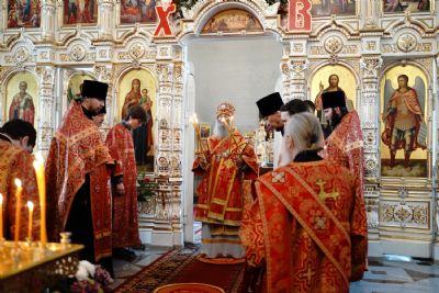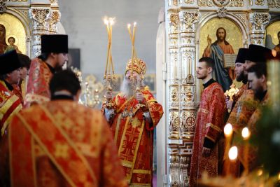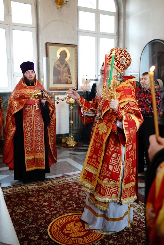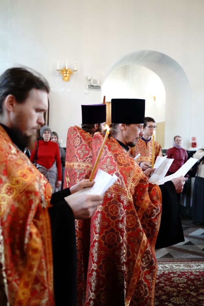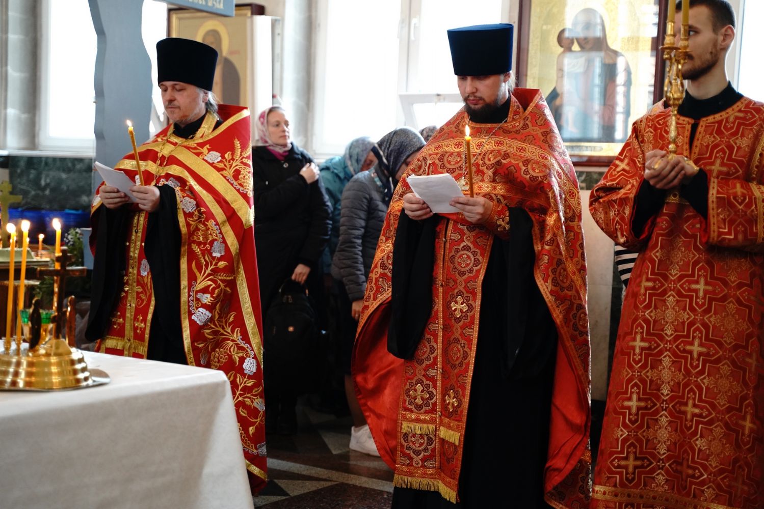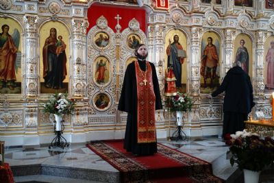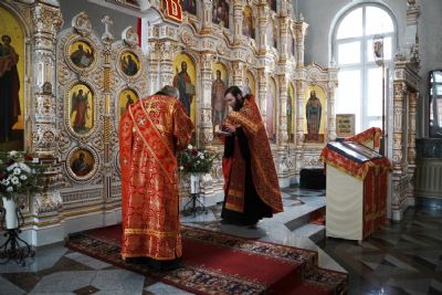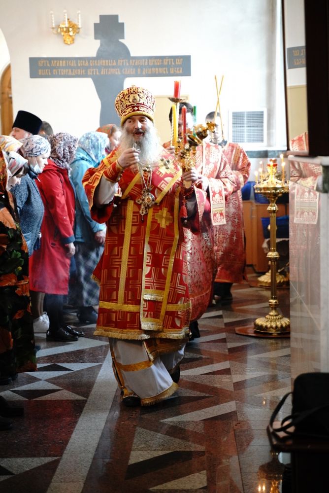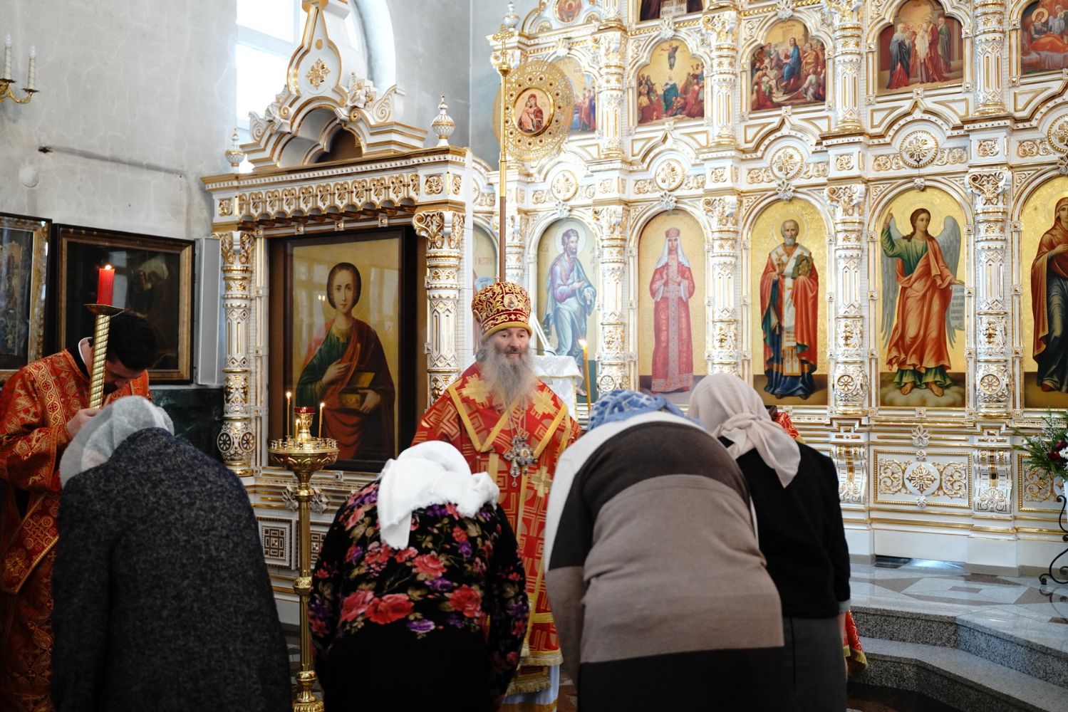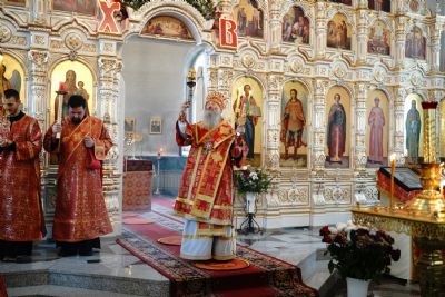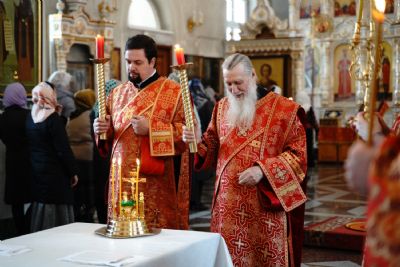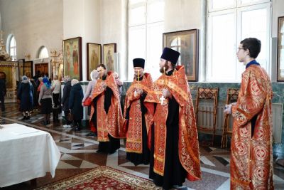 Архипастырю сослужили настоятель собора иерей Алексий Кирюшкин, клирики собора и протодиакон Михаил Козловский. Песнопения исполнял хор собора под управлением Алисы Вылегжаниной. За богослужением звучали в том числе пасхальные песнопения.