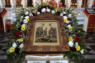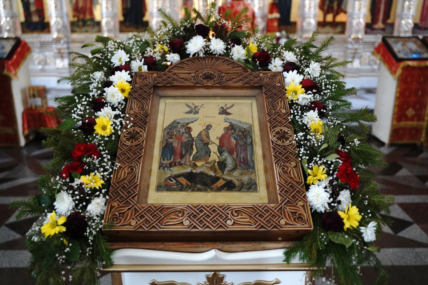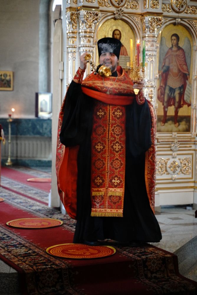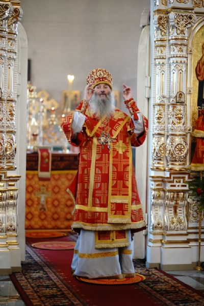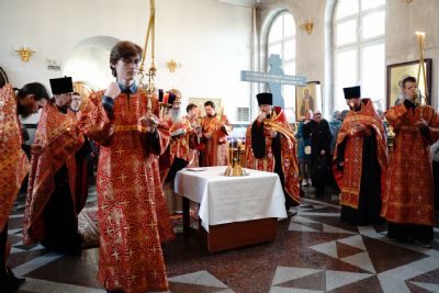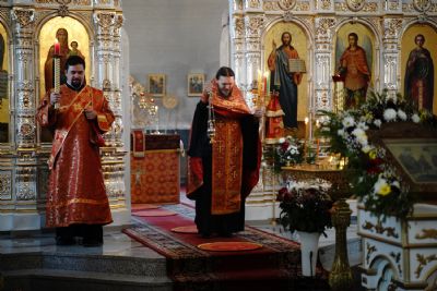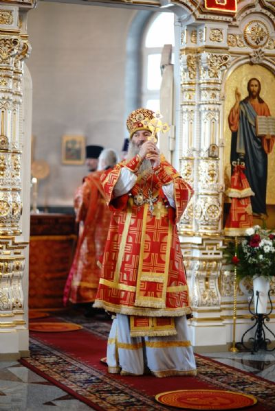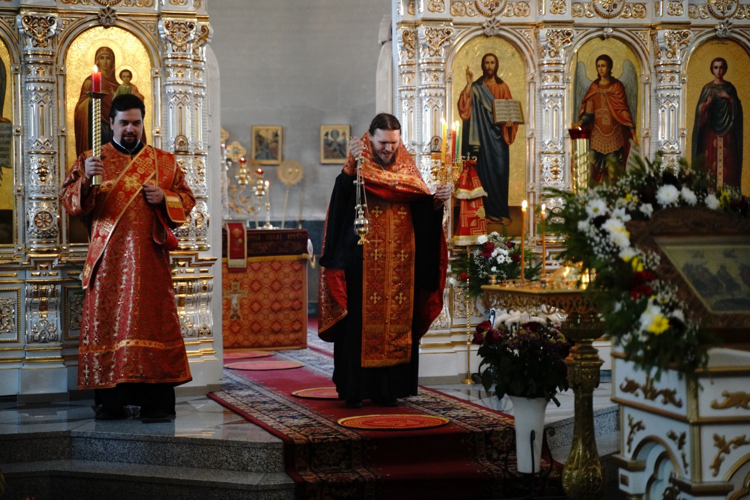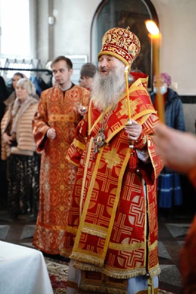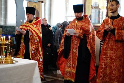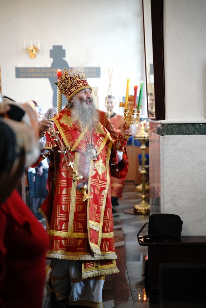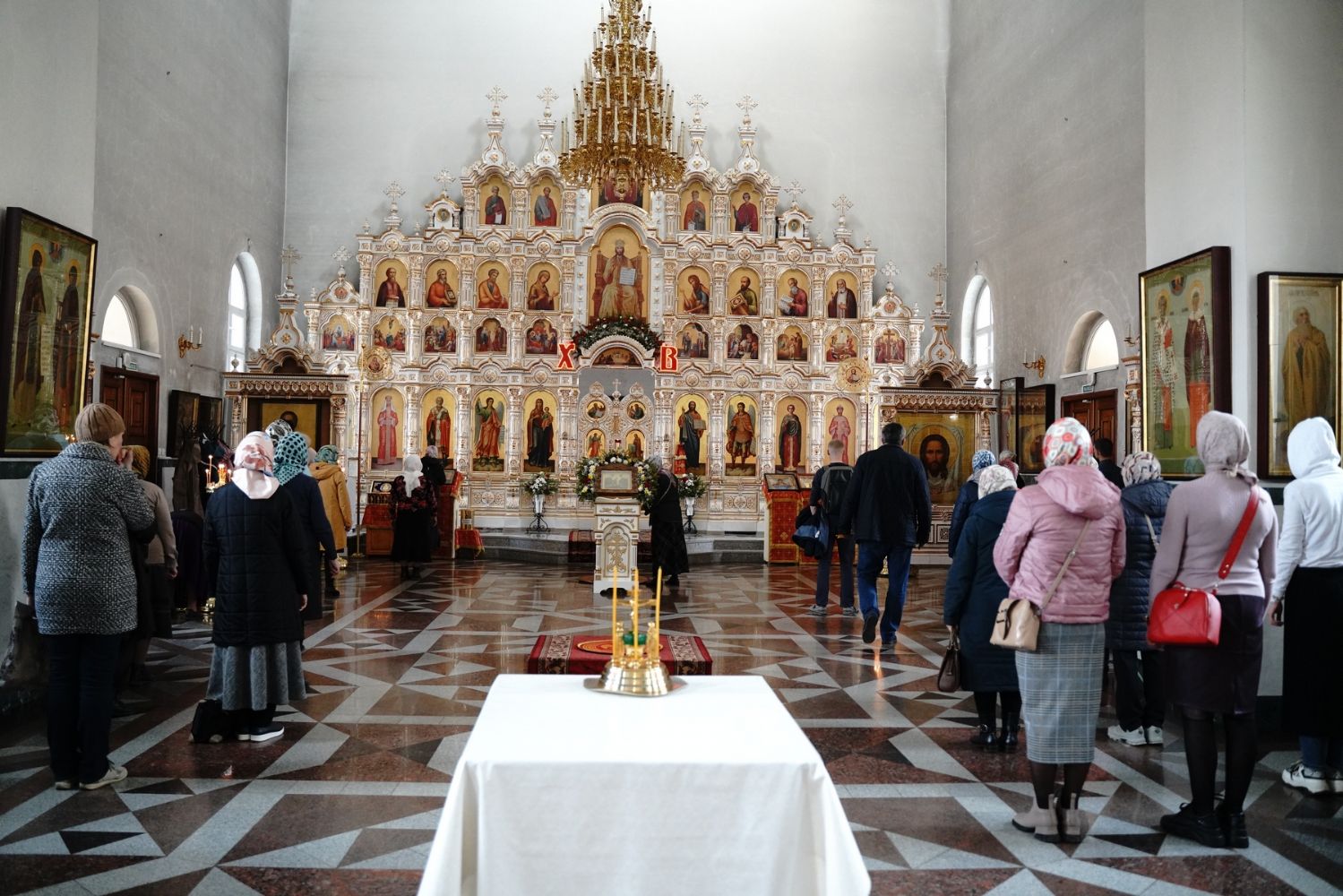 Архипастырю сослужили настоятель собора иерей Алексий Кирюшкин, клирики собора и протодиакон Михаил Козловский. Песнопения исполнял хор собора под управлением Алисы Вылегжаниной. За богослужением звучали в том числе пасхальные песнопения.