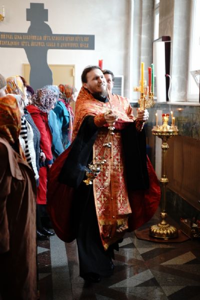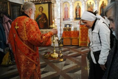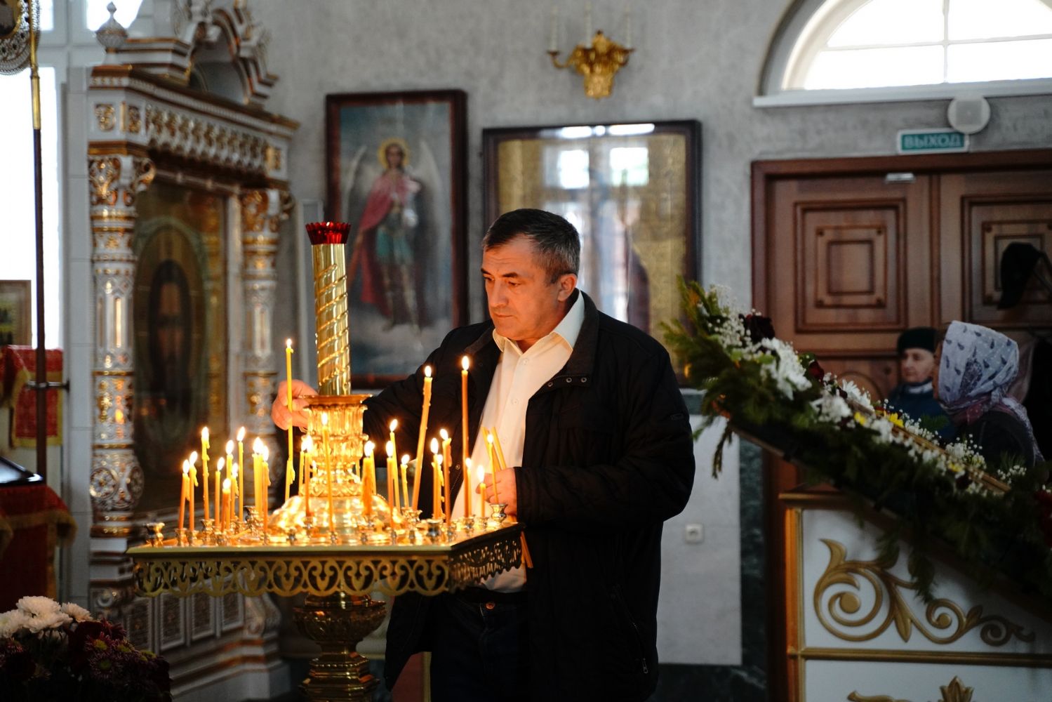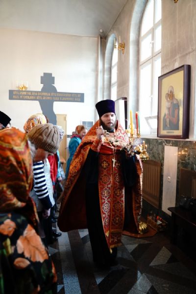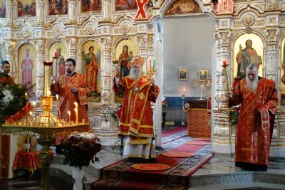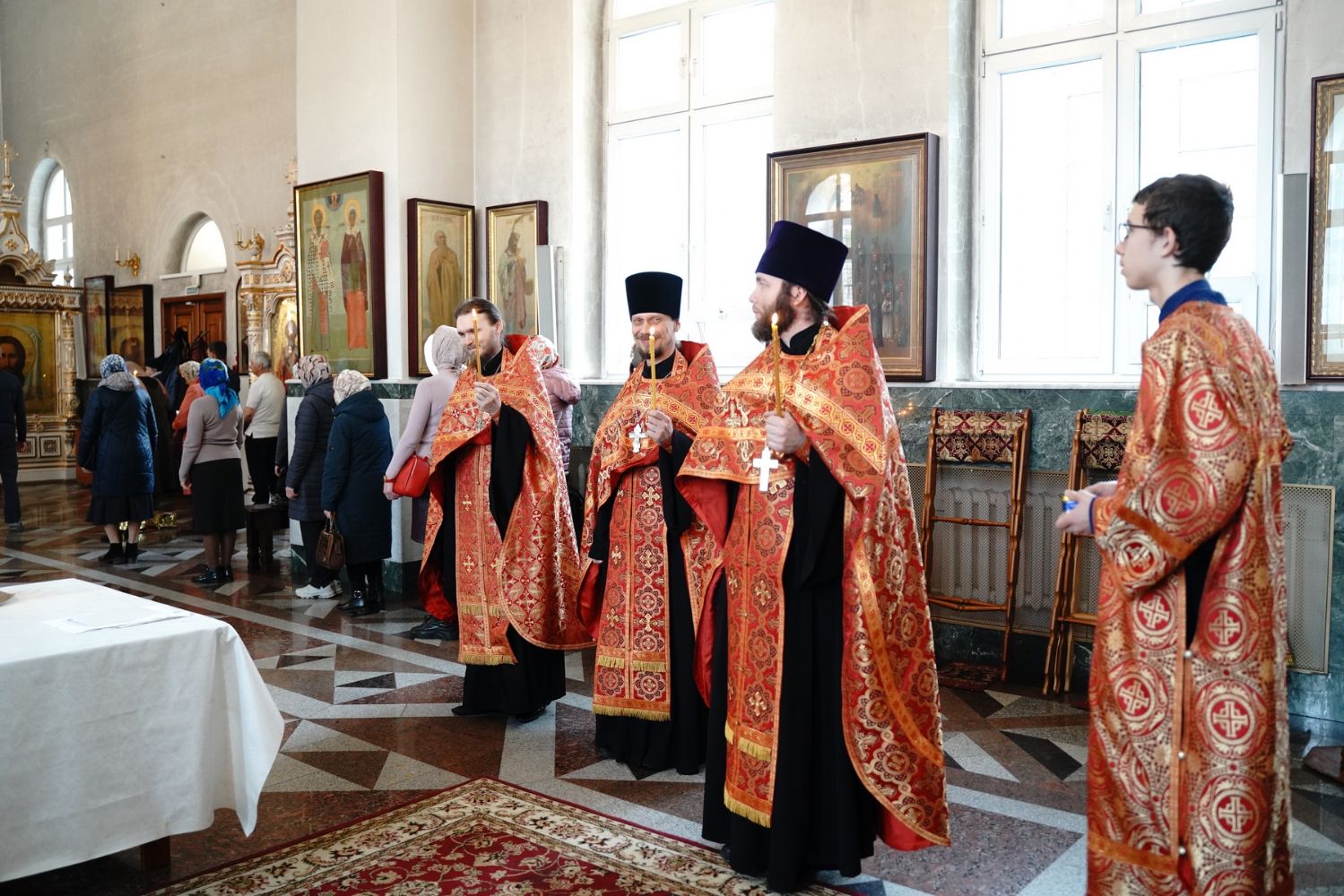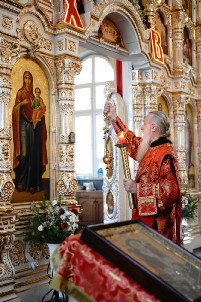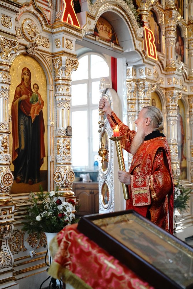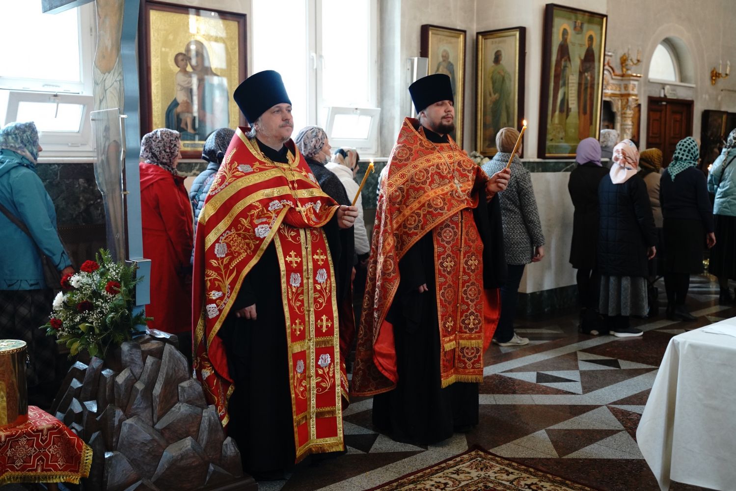 Владыке сослужили секретарь Йошкар-Олинского епархиального управления иеромонах Серафим (Пасанаев), клирики храма Рождества Пресвятой Богородицы с. Семеновка иерей Димитрий Иванов и протодиакон Михаил Козловский. Песнопения исполнял хор сестер милосердия.