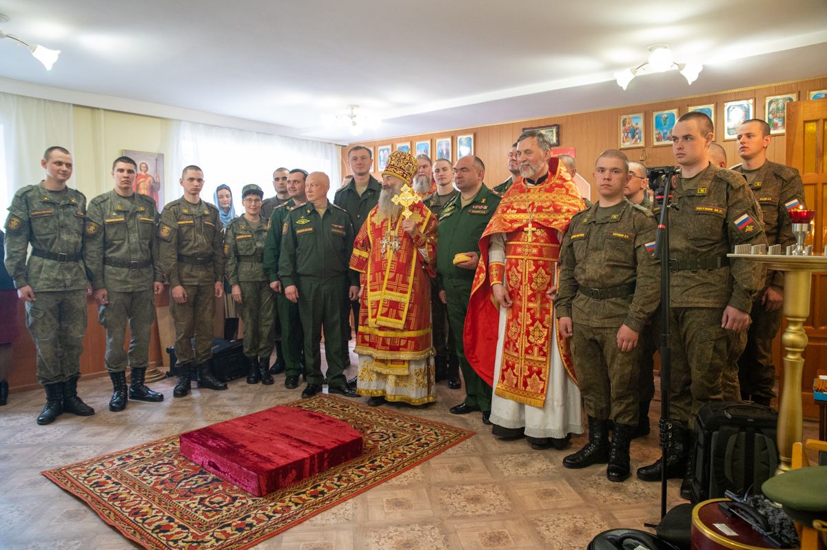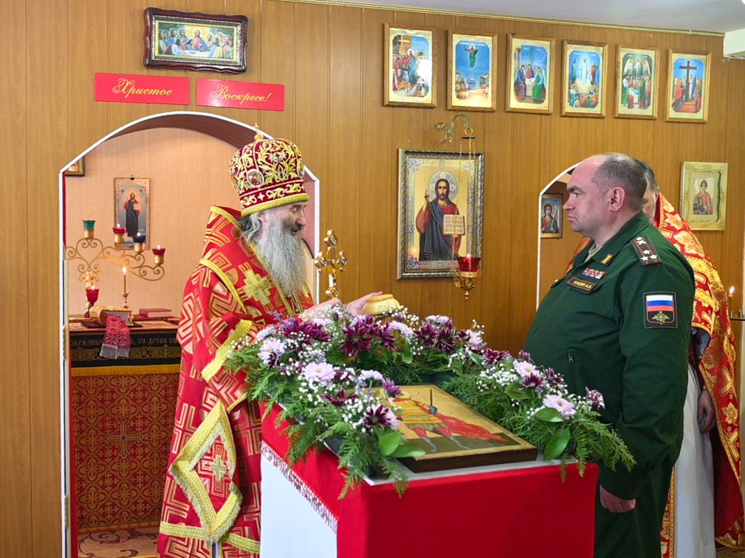 Командиру части митрополит Иоанн также вручил просфору, призвав благословение Господа и Царицы Небесной на всех солдат и офицеров.